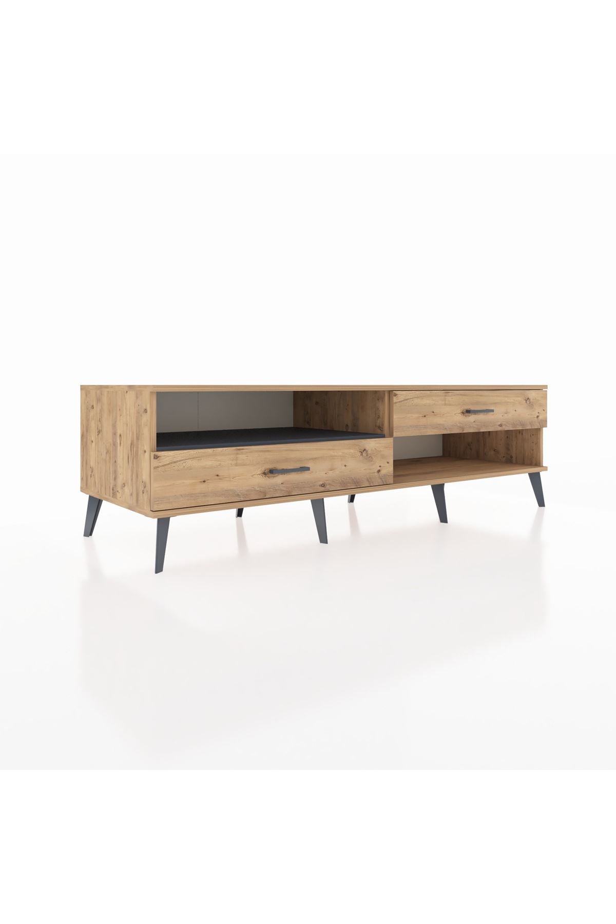 Kronos TV Ünitesi Tek Raflı 2 Çekmeceli 176x59x51 Çam-Antrasit/Çam