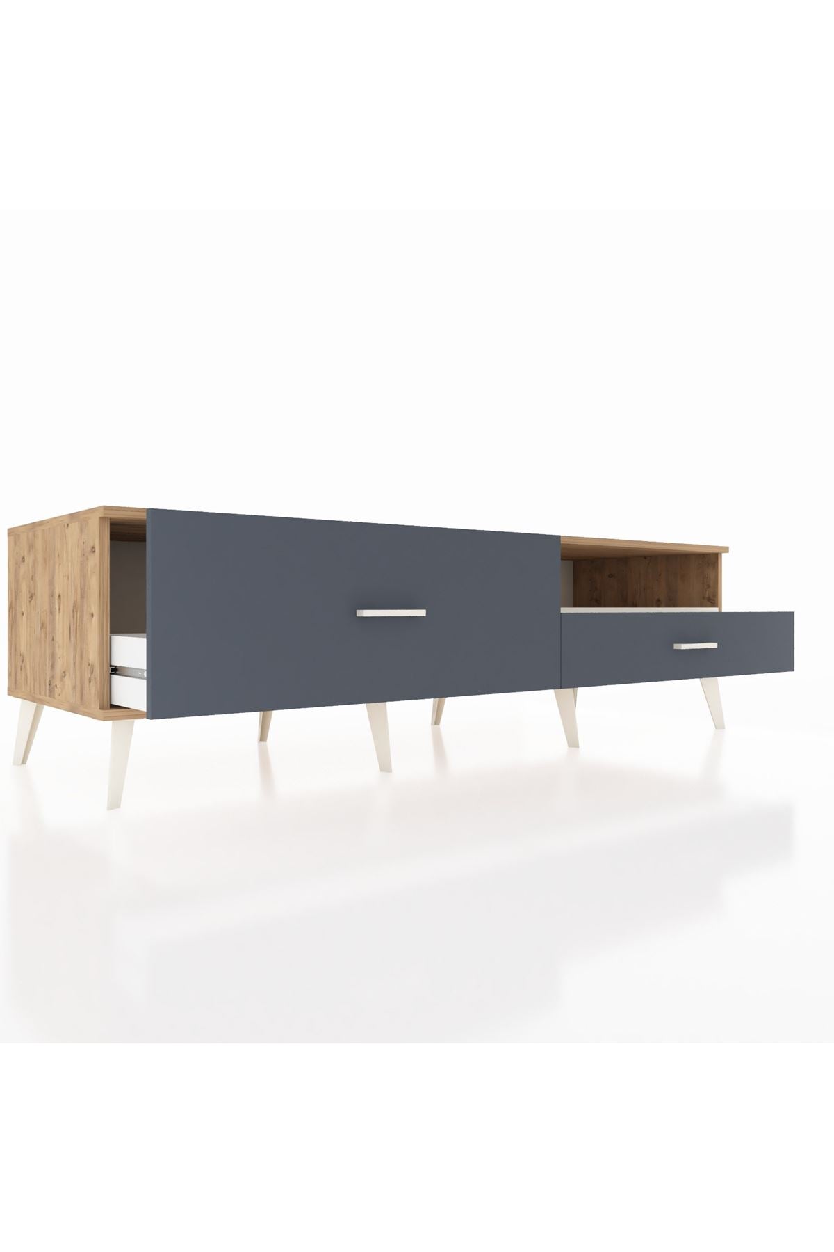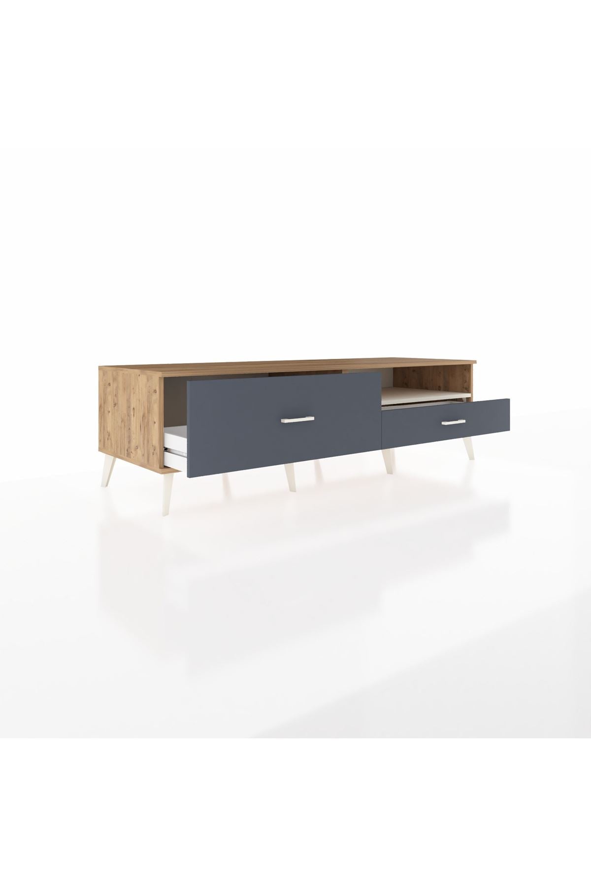 Kronos TV Ünitesi Tek Raflı 2 Çekmeceli 176x59x51 Çam-Aytaşı/Antrasit