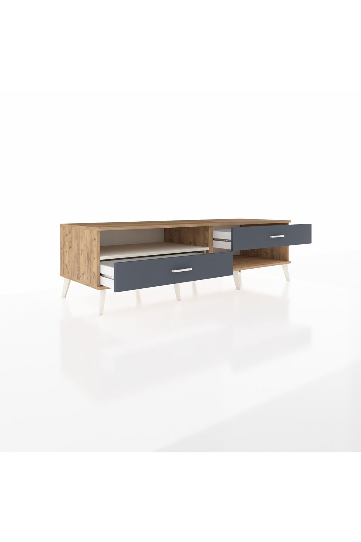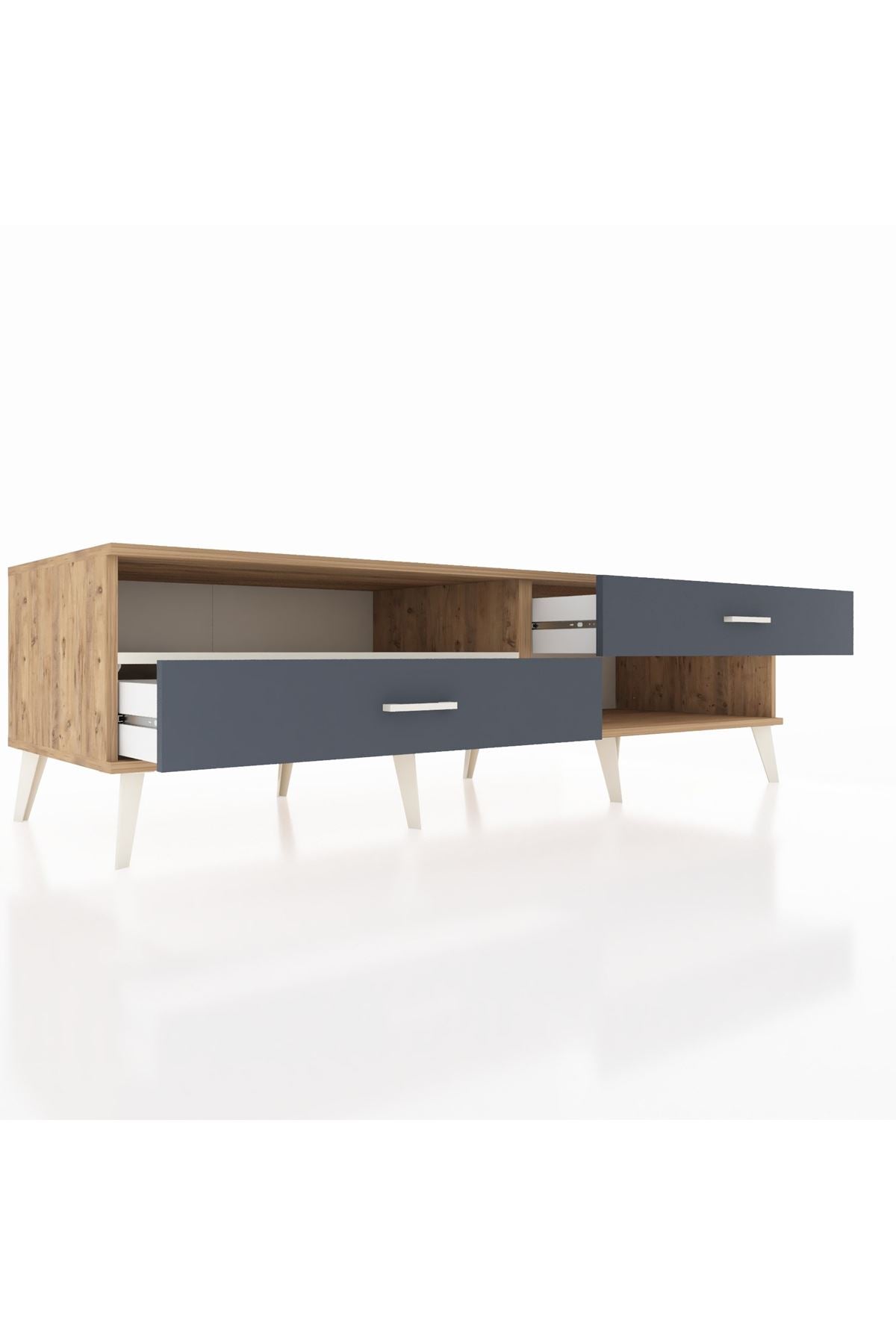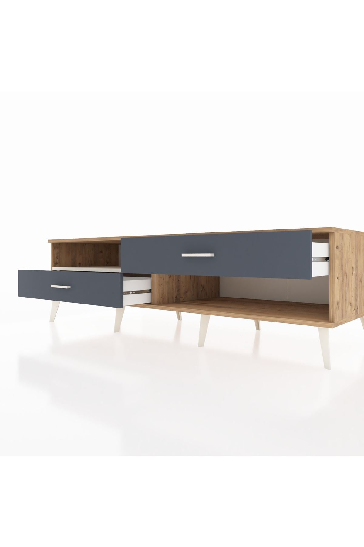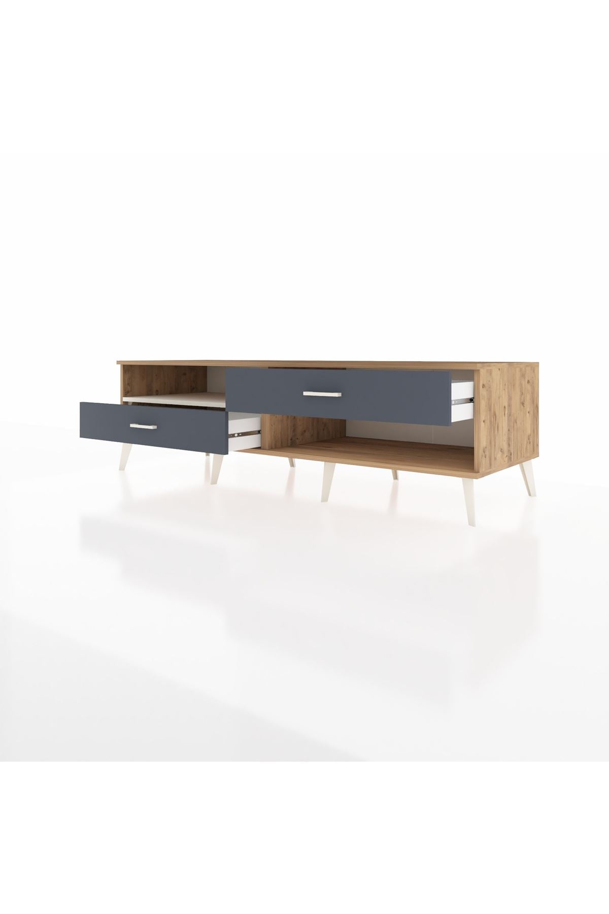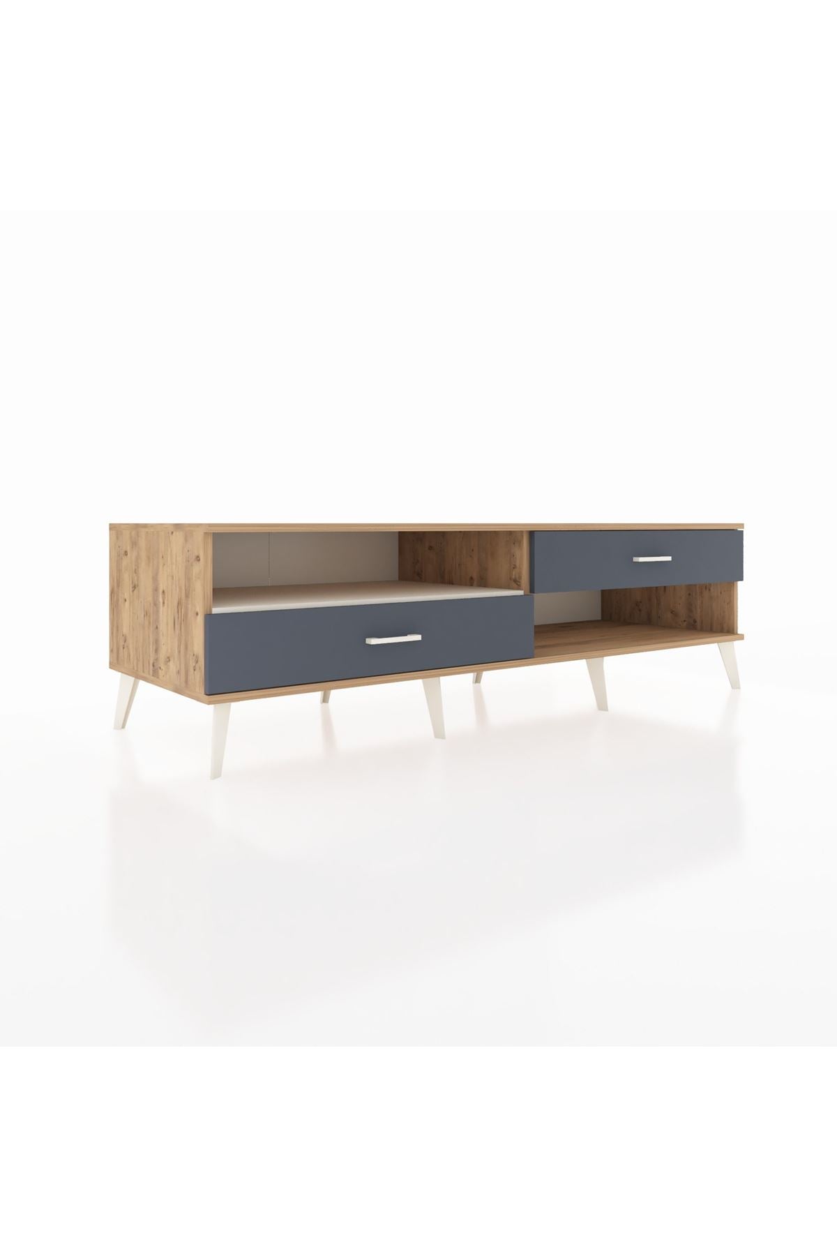 Kronos TV Ünitesi Tek Raflı 2 Çekmeceli 176x59x51 Çam-Aytaşı/Antrasit