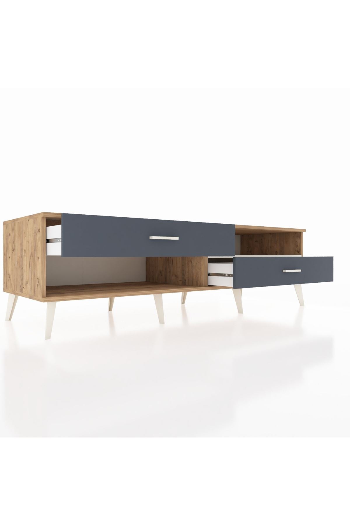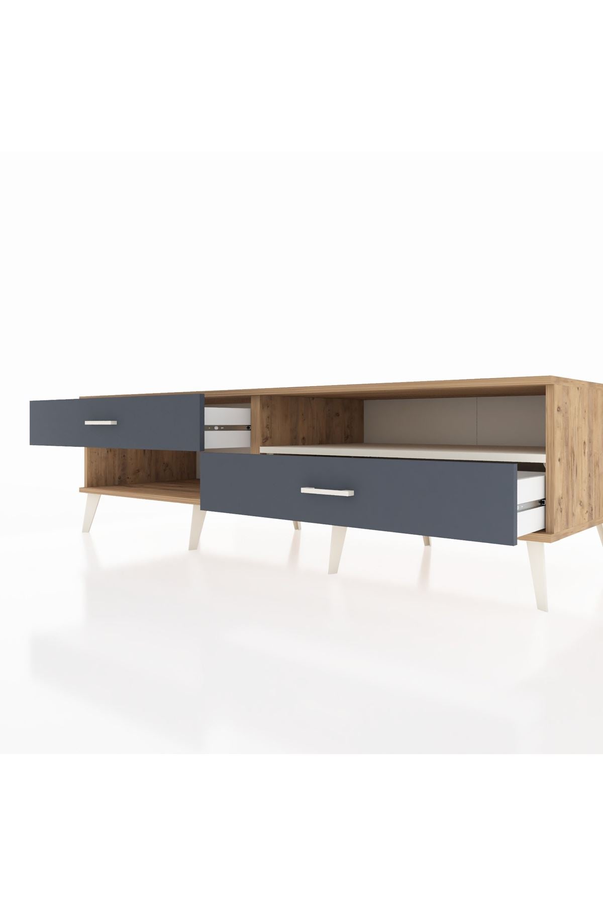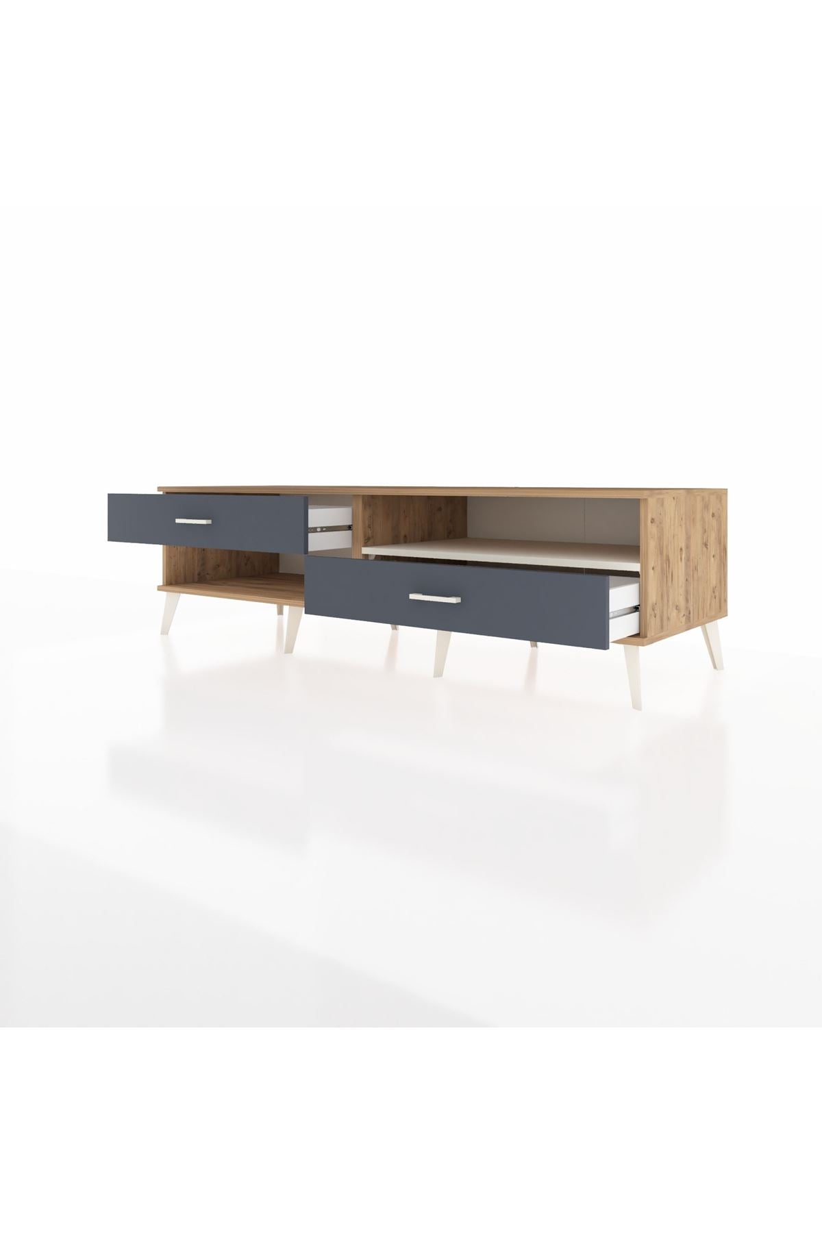 Kronos TV Ünitesi Tek Raflı 2 Çekmeceli 176x59x51 Çam-Aytaşı/Antrasit