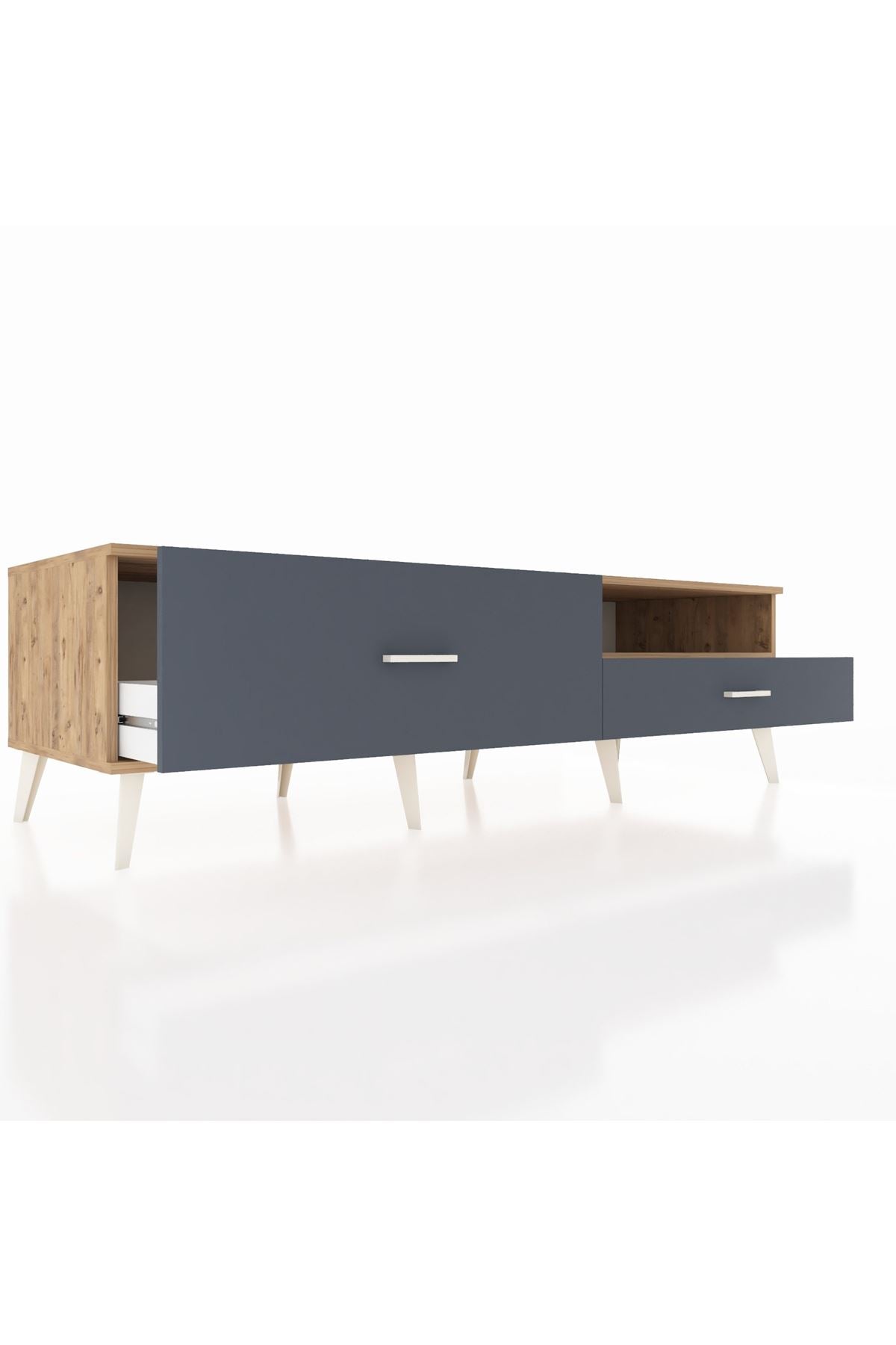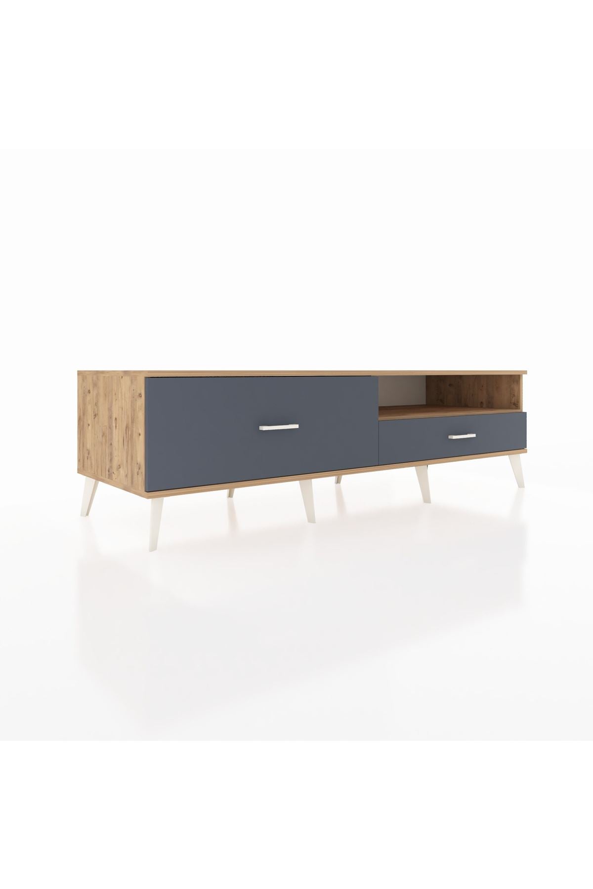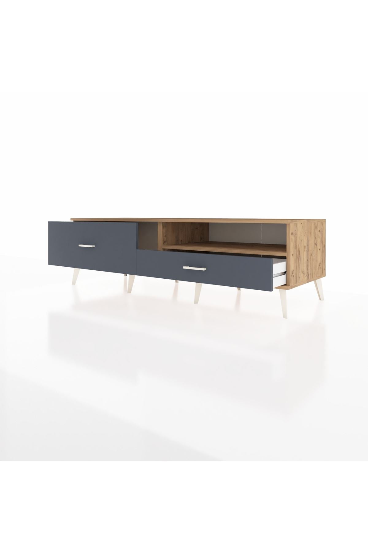 Kronos TV Ünitesi Tek Raflı 2 Çekmeceli 176x59x51 Çam-Çam/Antrasit