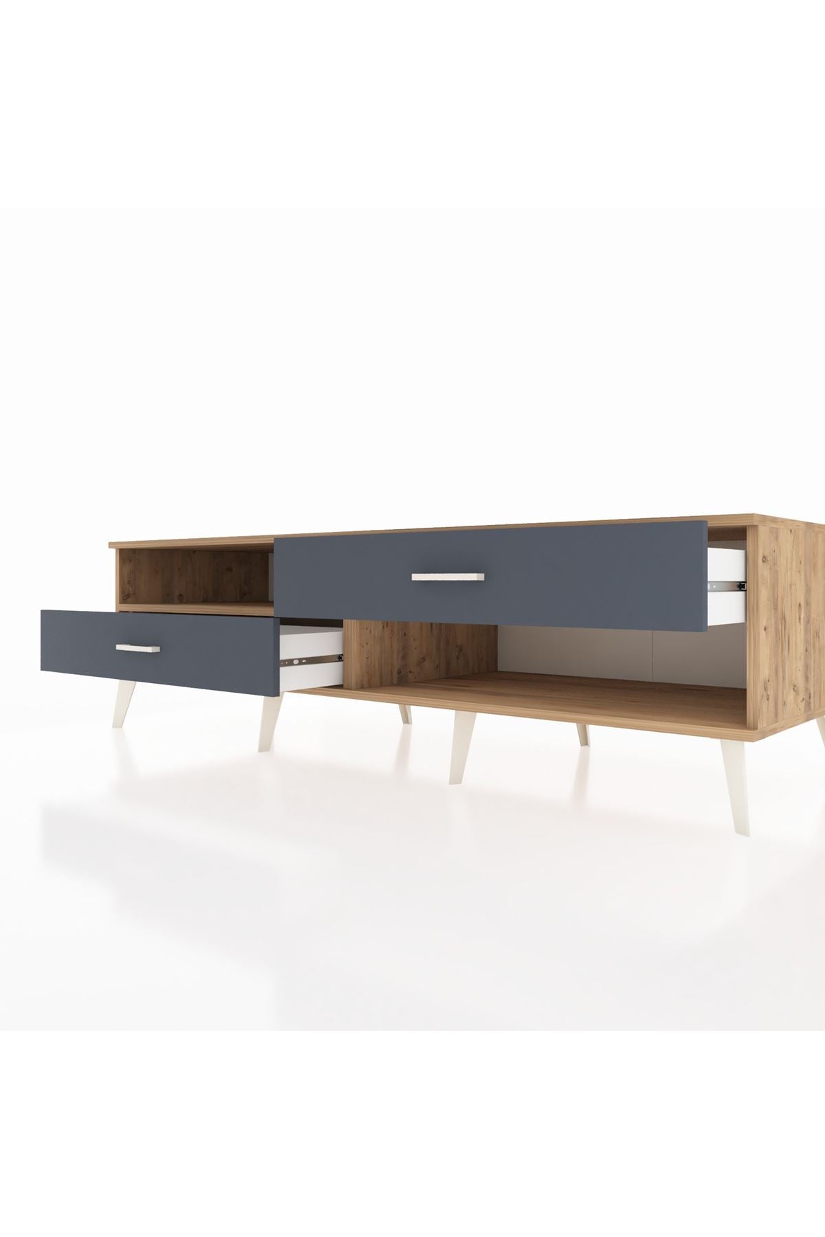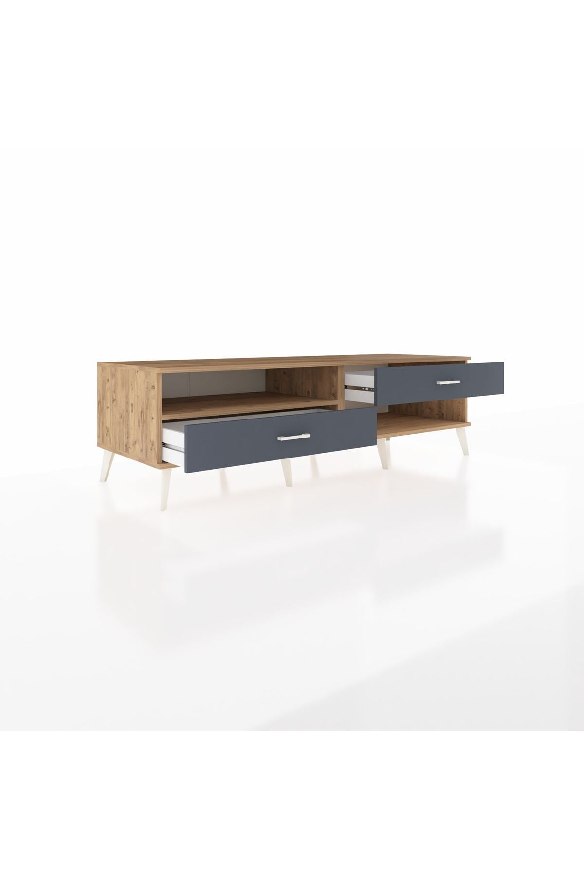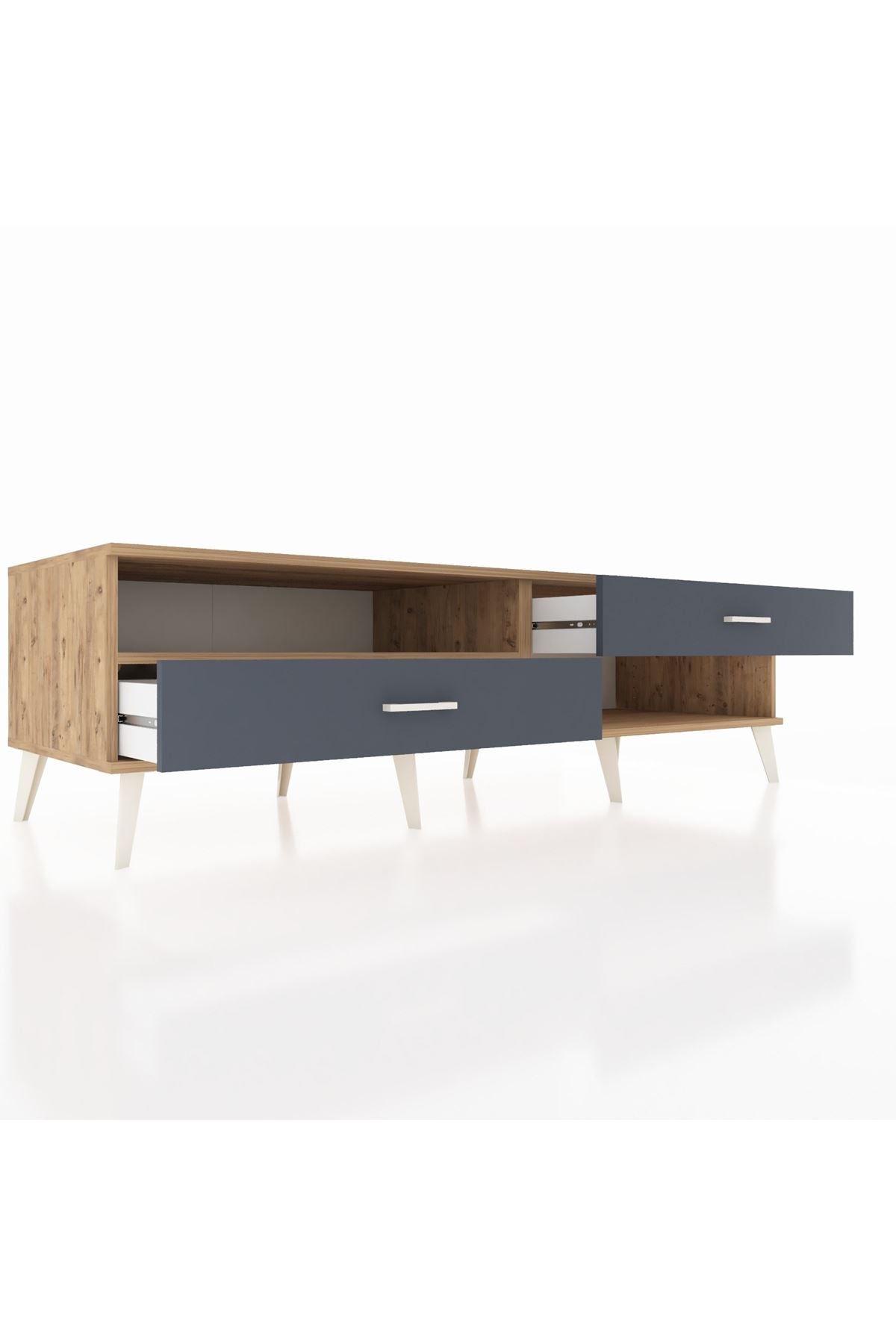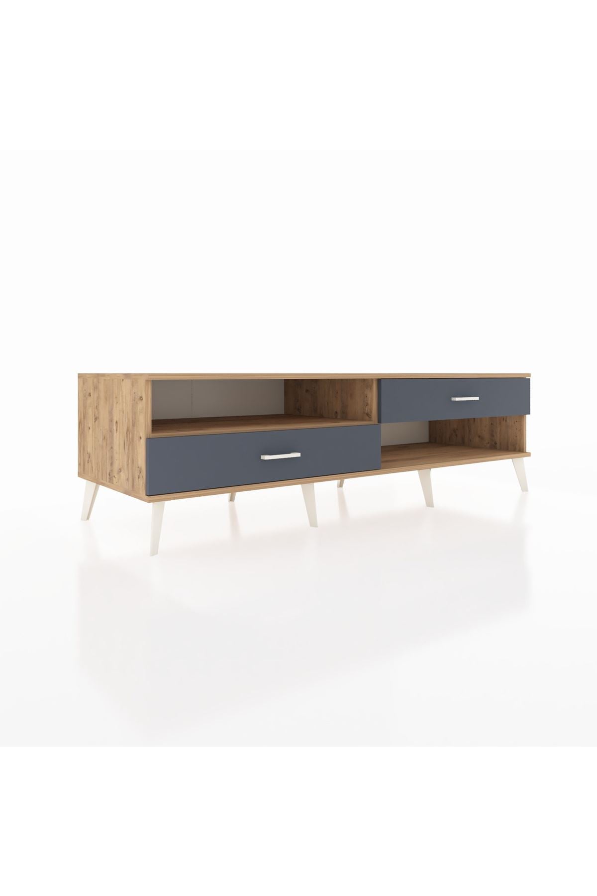 Kronos TV Ünitesi Tek Raflı 2 Çekmeceli 176x59x51 Çam-Çam/Antrasit