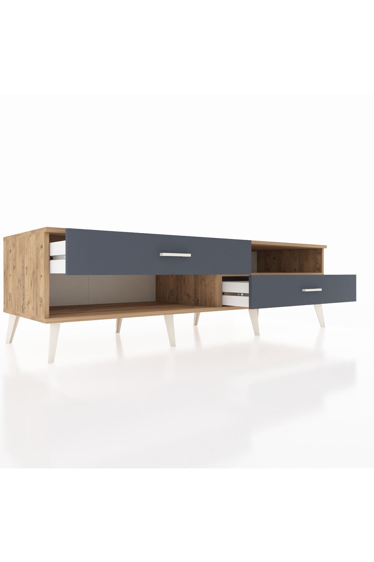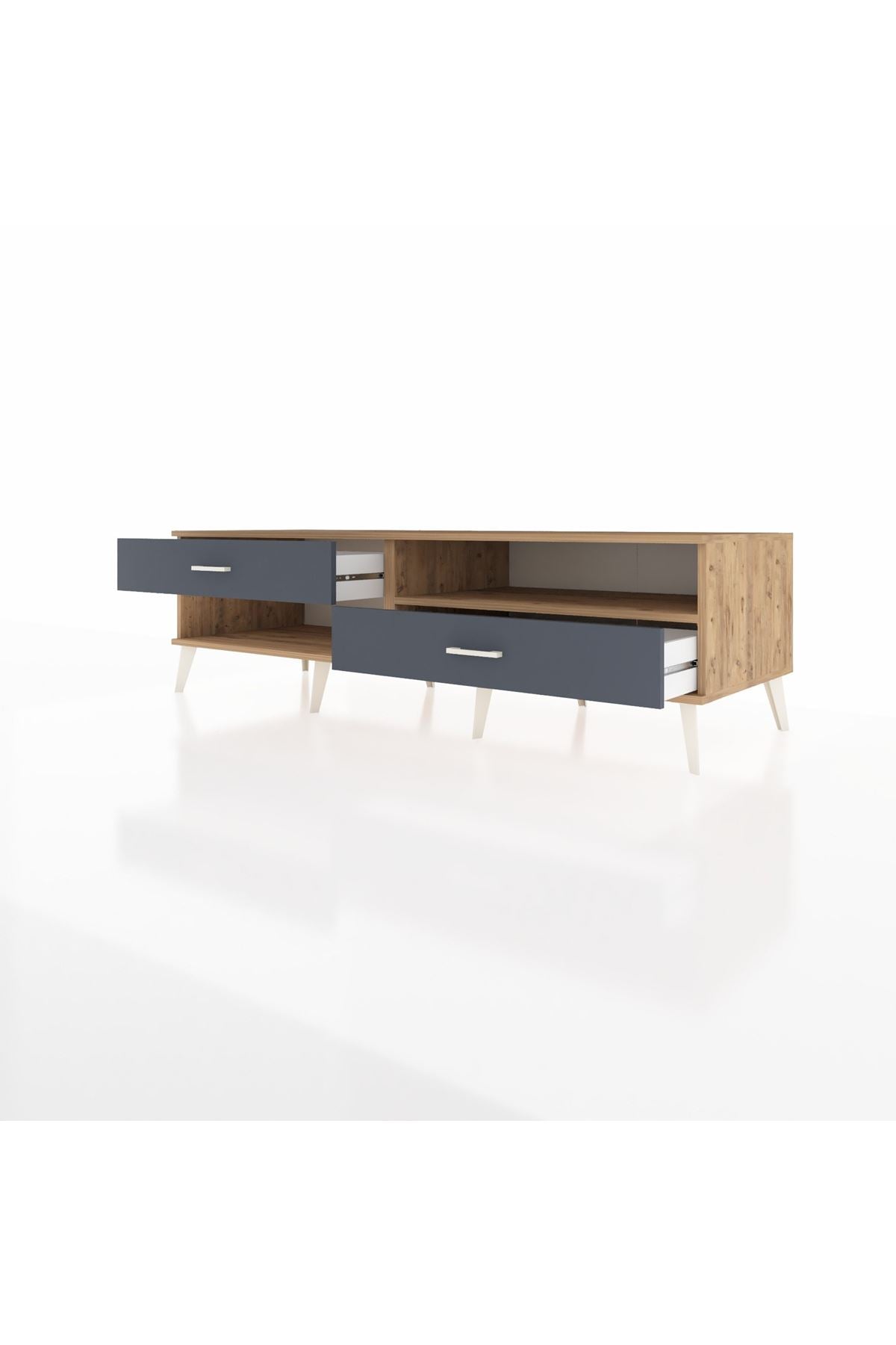 Kronos TV Ünitesi Tek Raflı 2 Çekmeceli 176x59x51 Çam-Çam/Antrasit