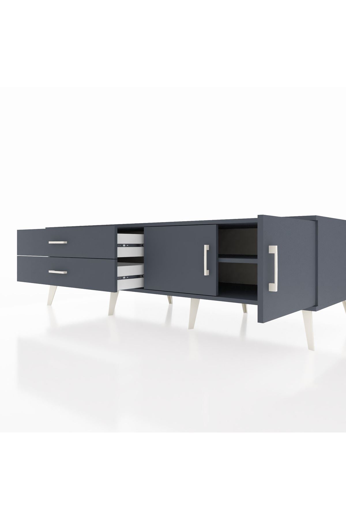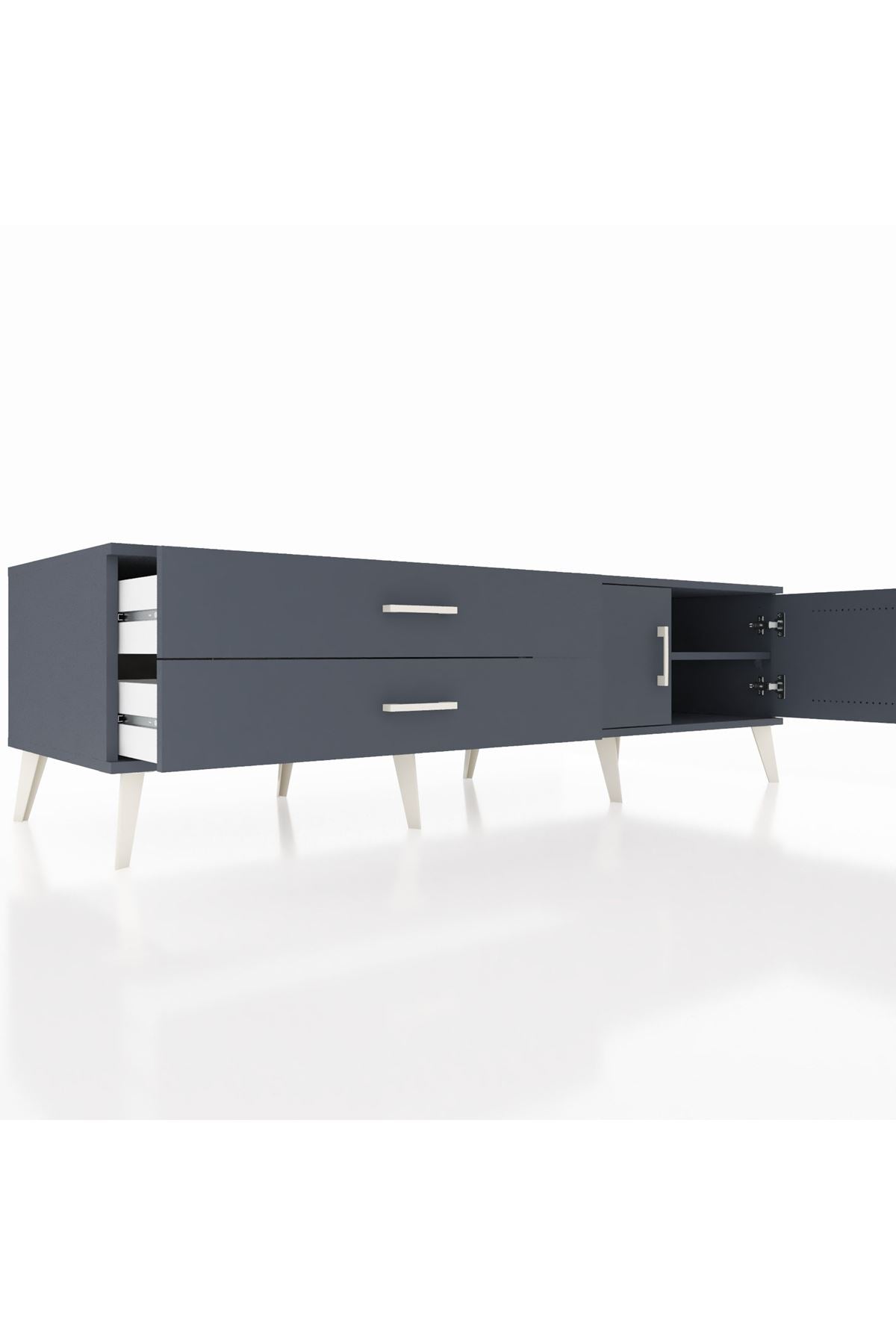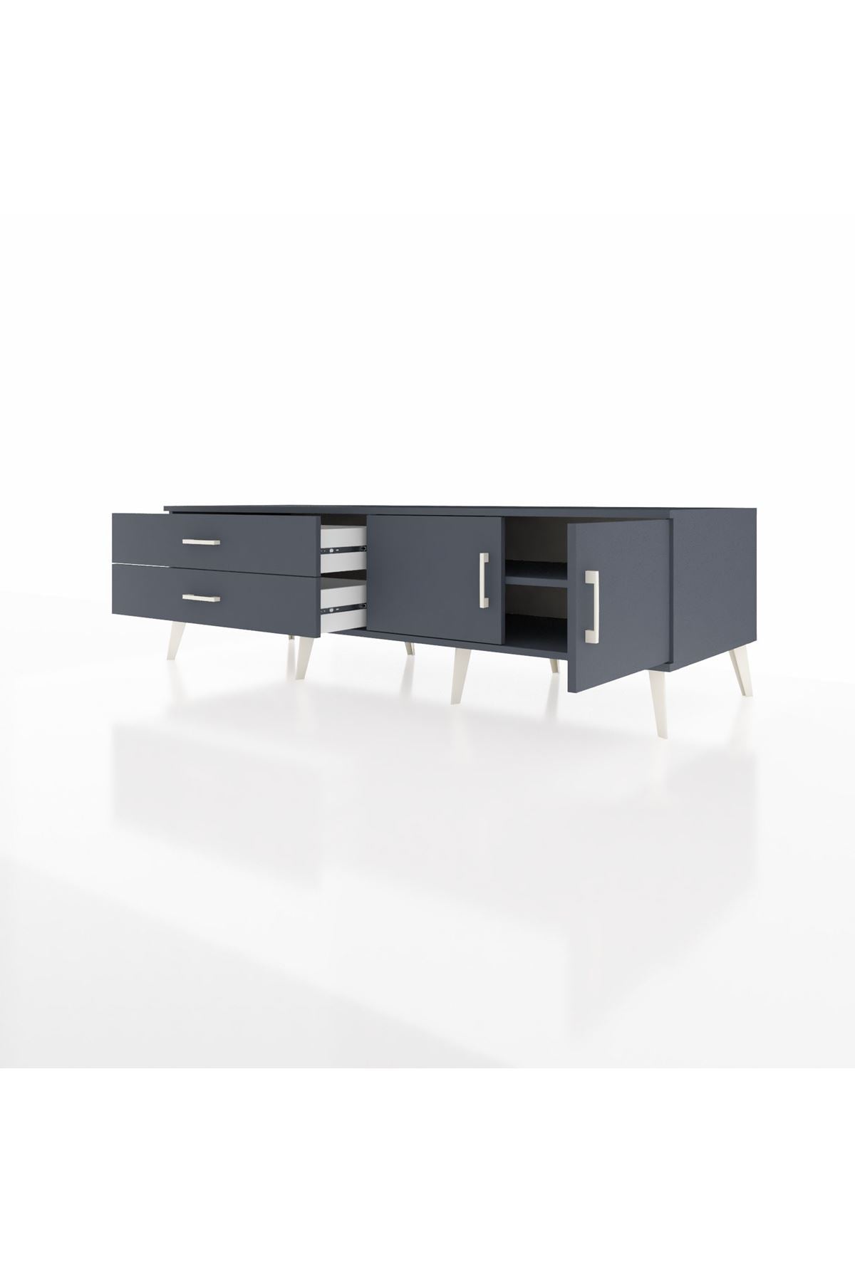 Kronos TV Ünitesi Tek Raflı 2 Çekmeceli 2 Kapaklı 176x59x51 Antrasit-Antrasit/Antrasit