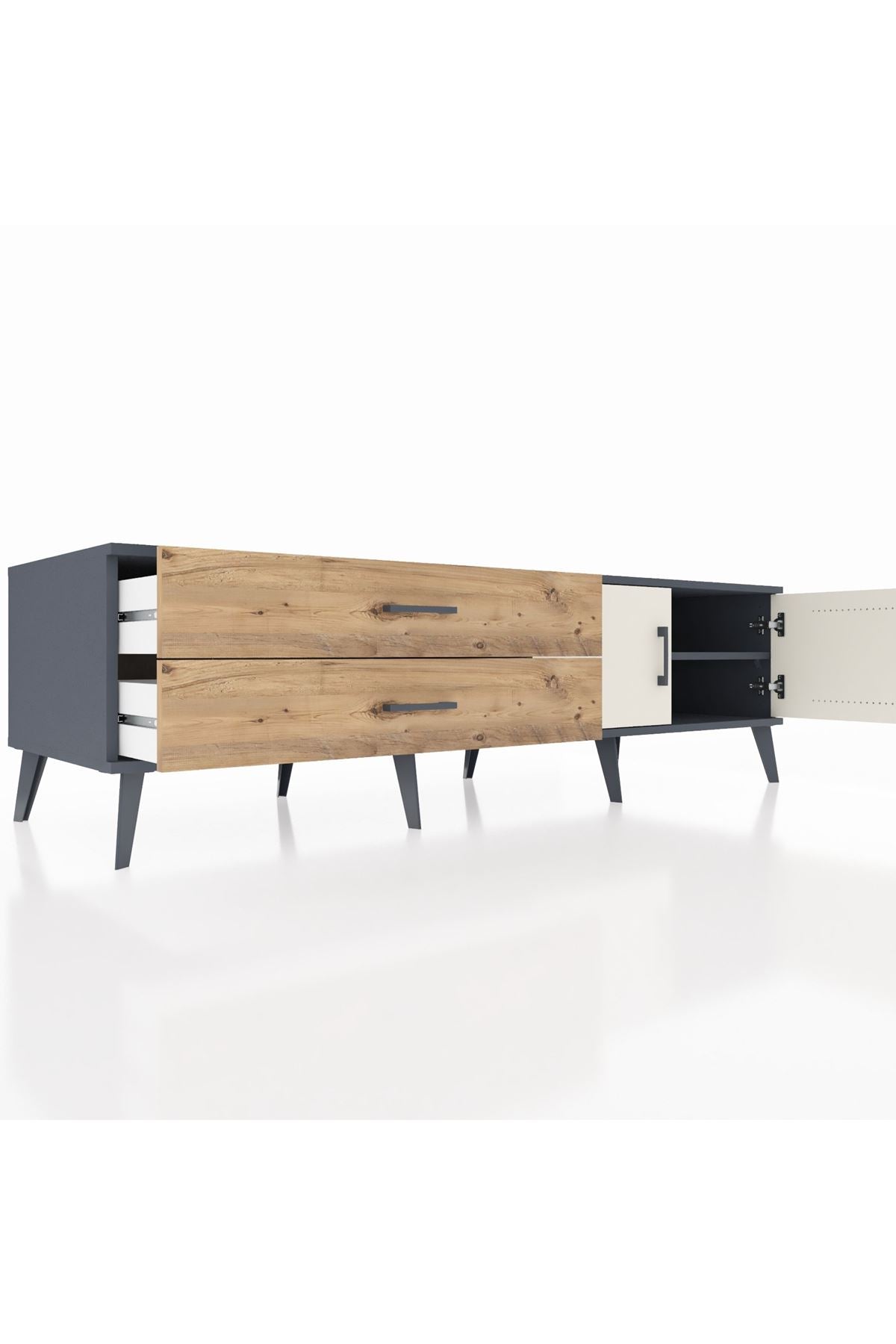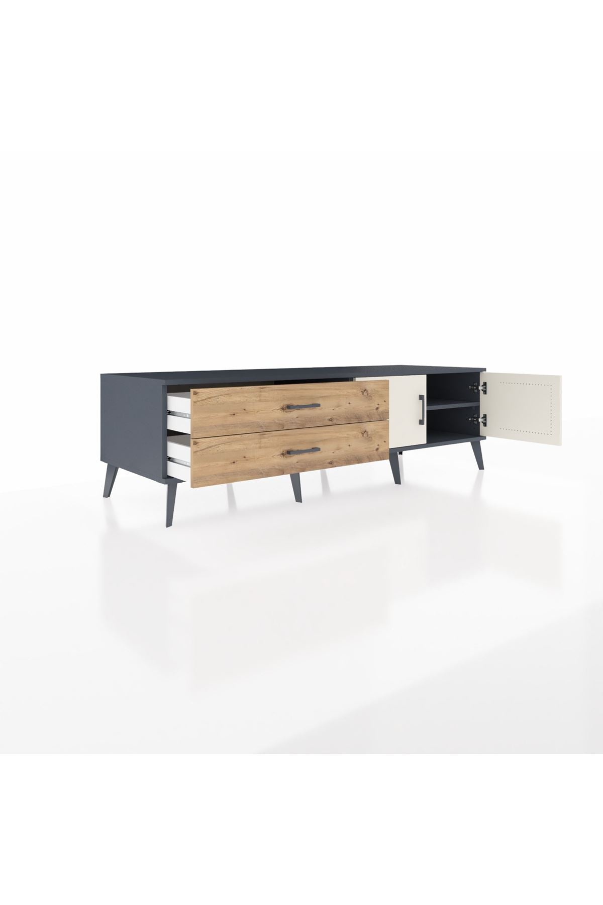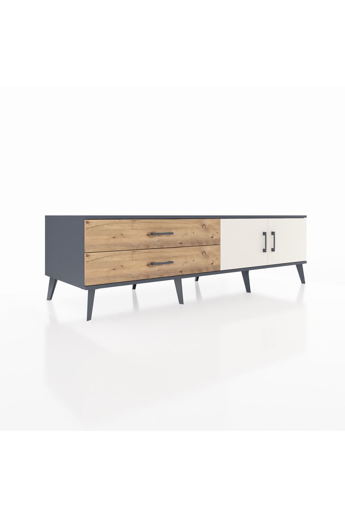 Kronos TV Ünitesi Tek Raflı 2 Çekmeceli 2 Kapaklı 176x59x51 Antrasit-Aytaşı/Çam