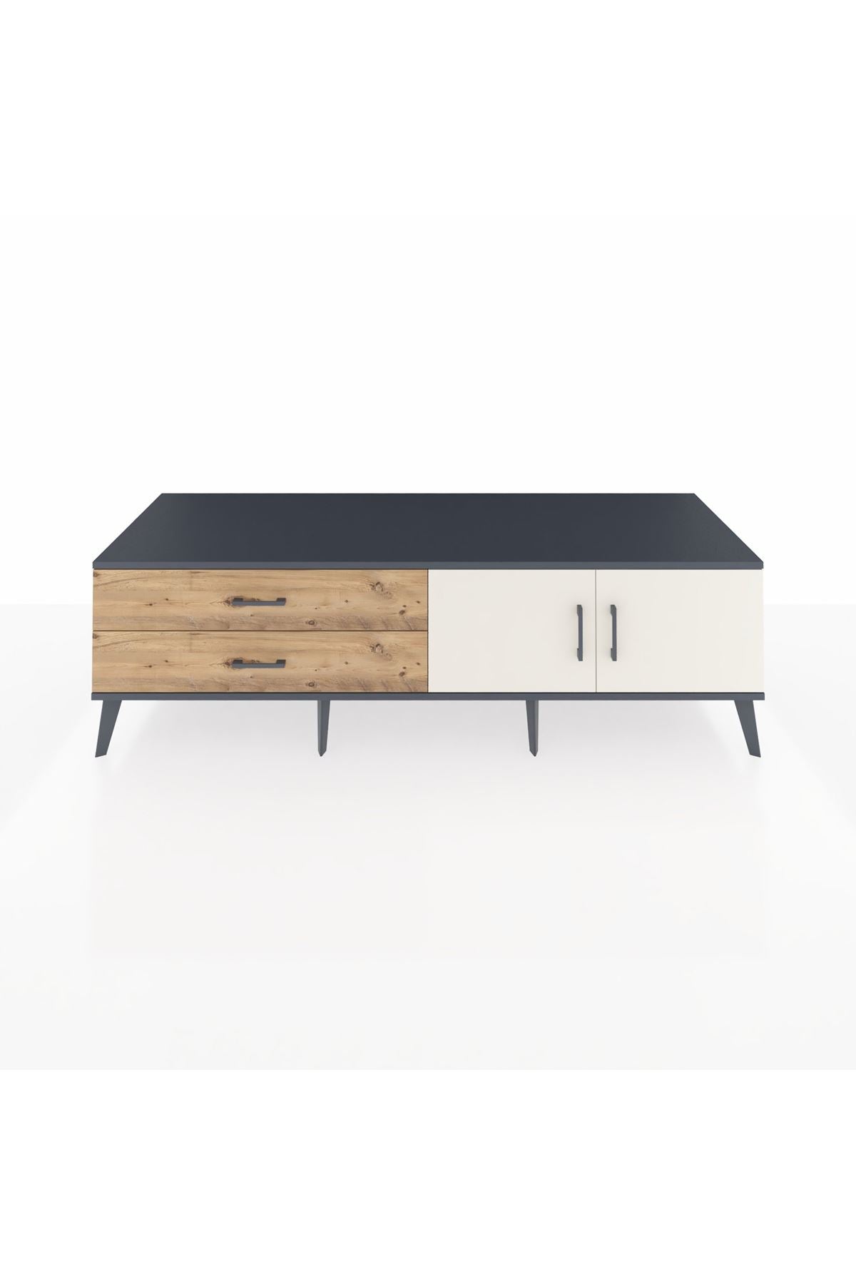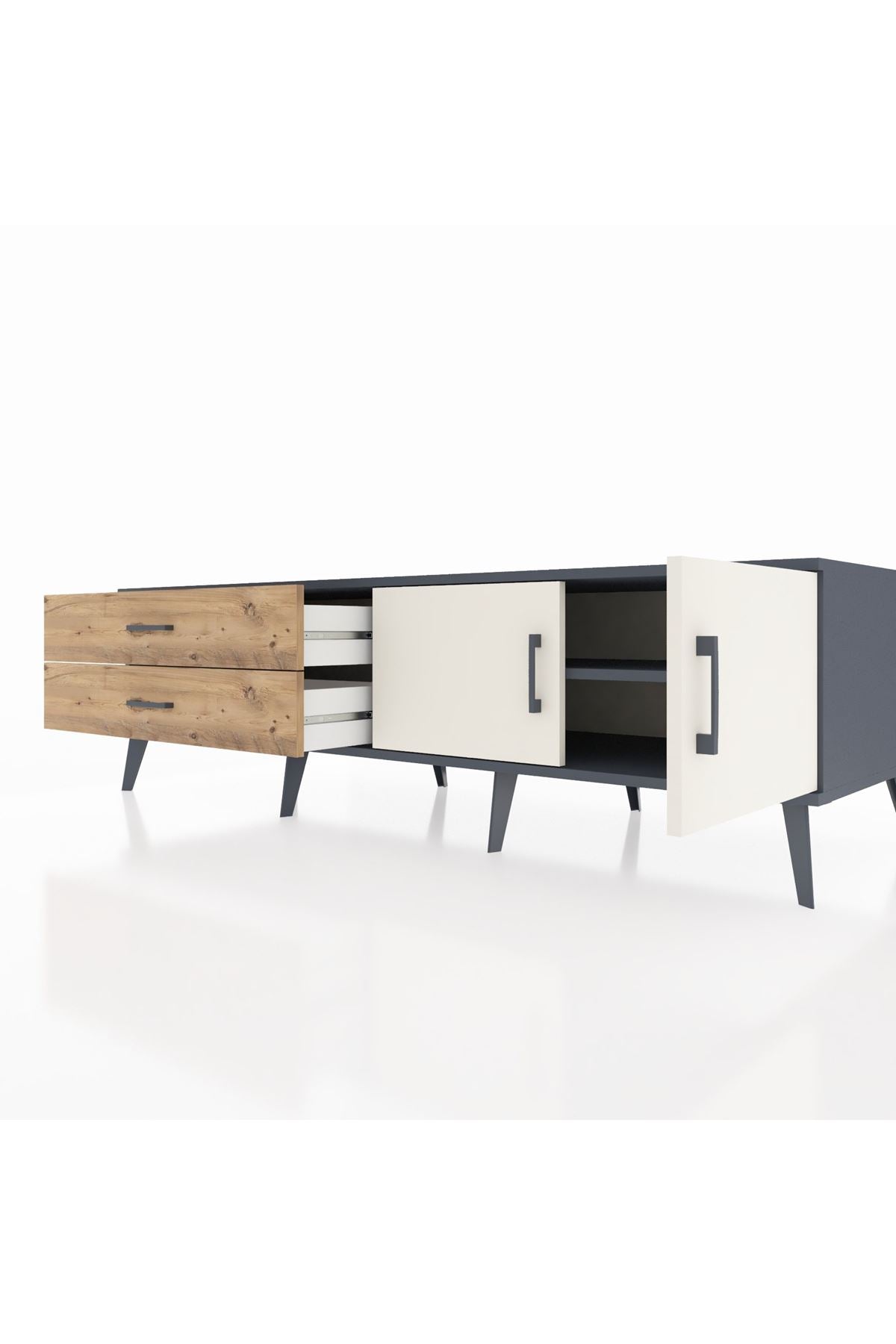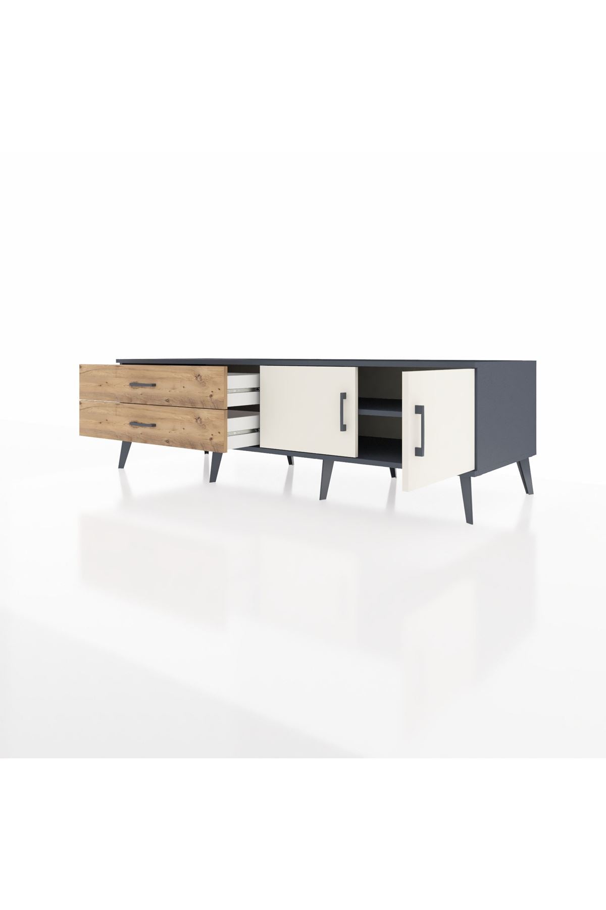 Kronos TV Ünitesi Tek Raflı 2 Çekmeceli 2 Kapaklı 176x59x51 Antrasit-Aytaşı/Çam