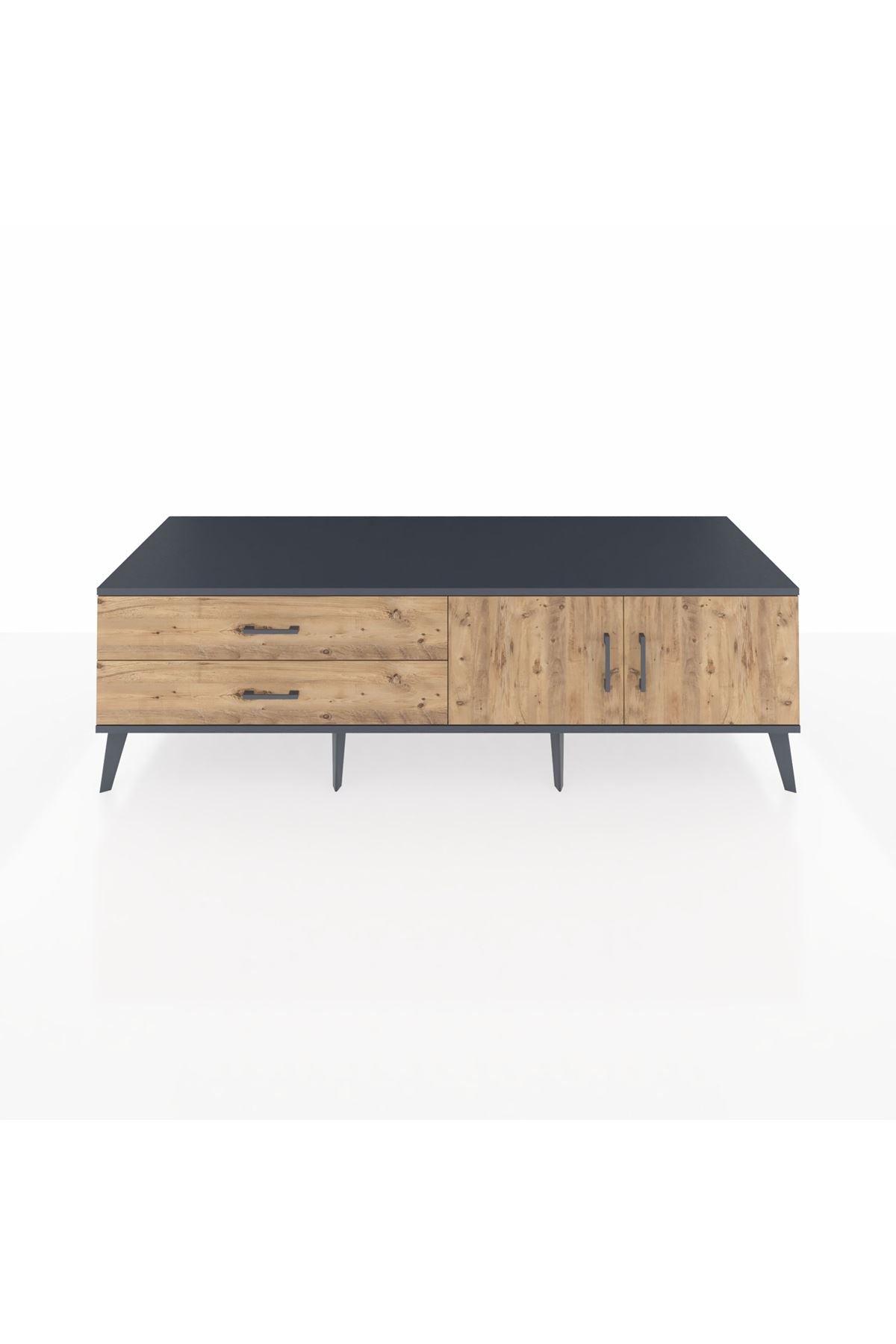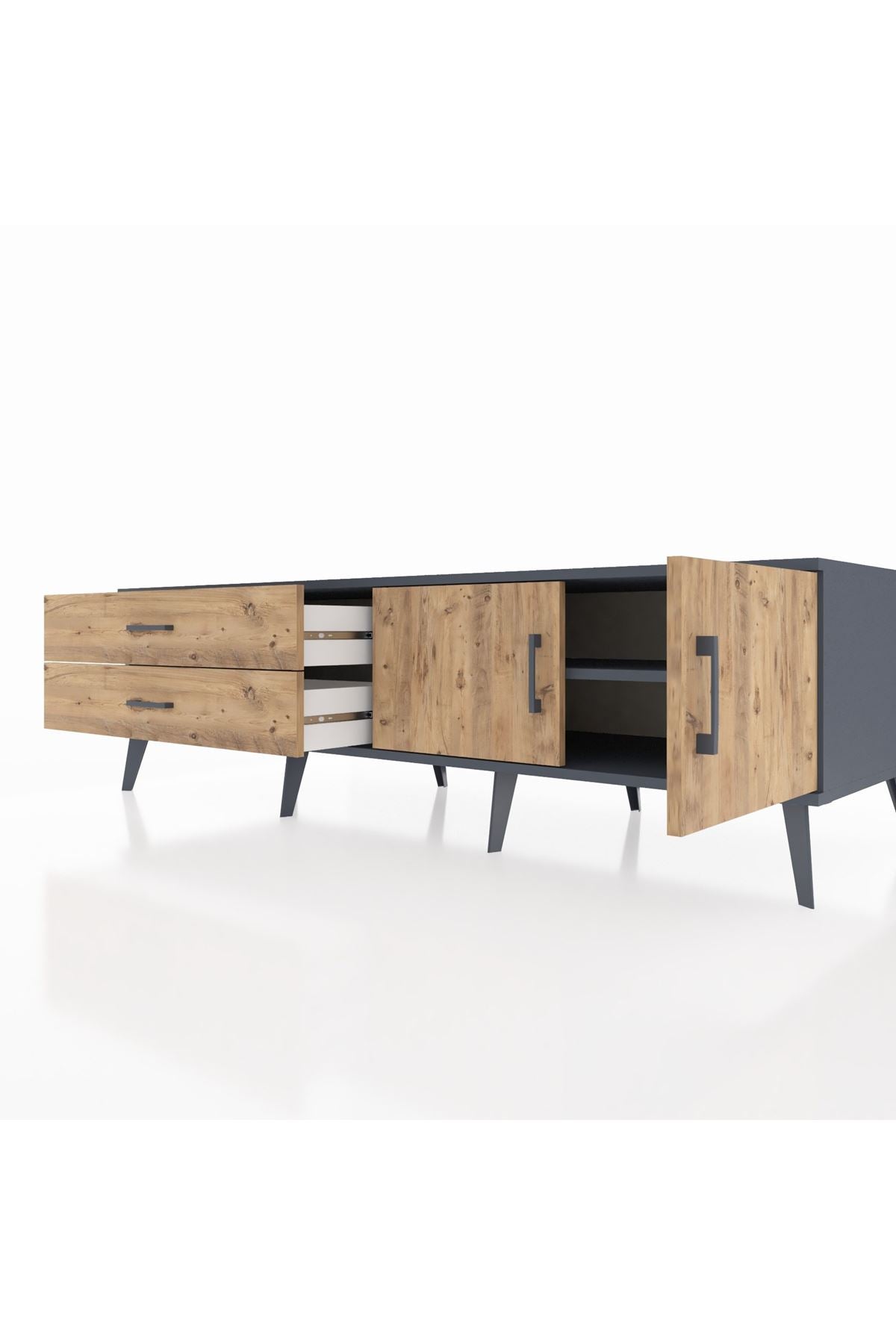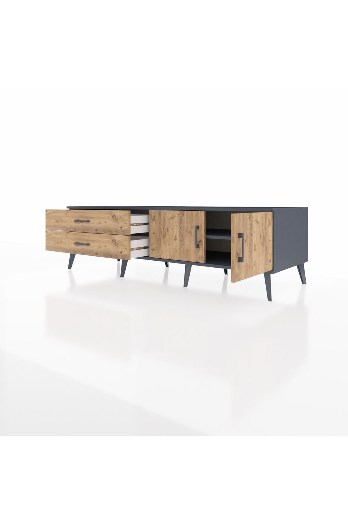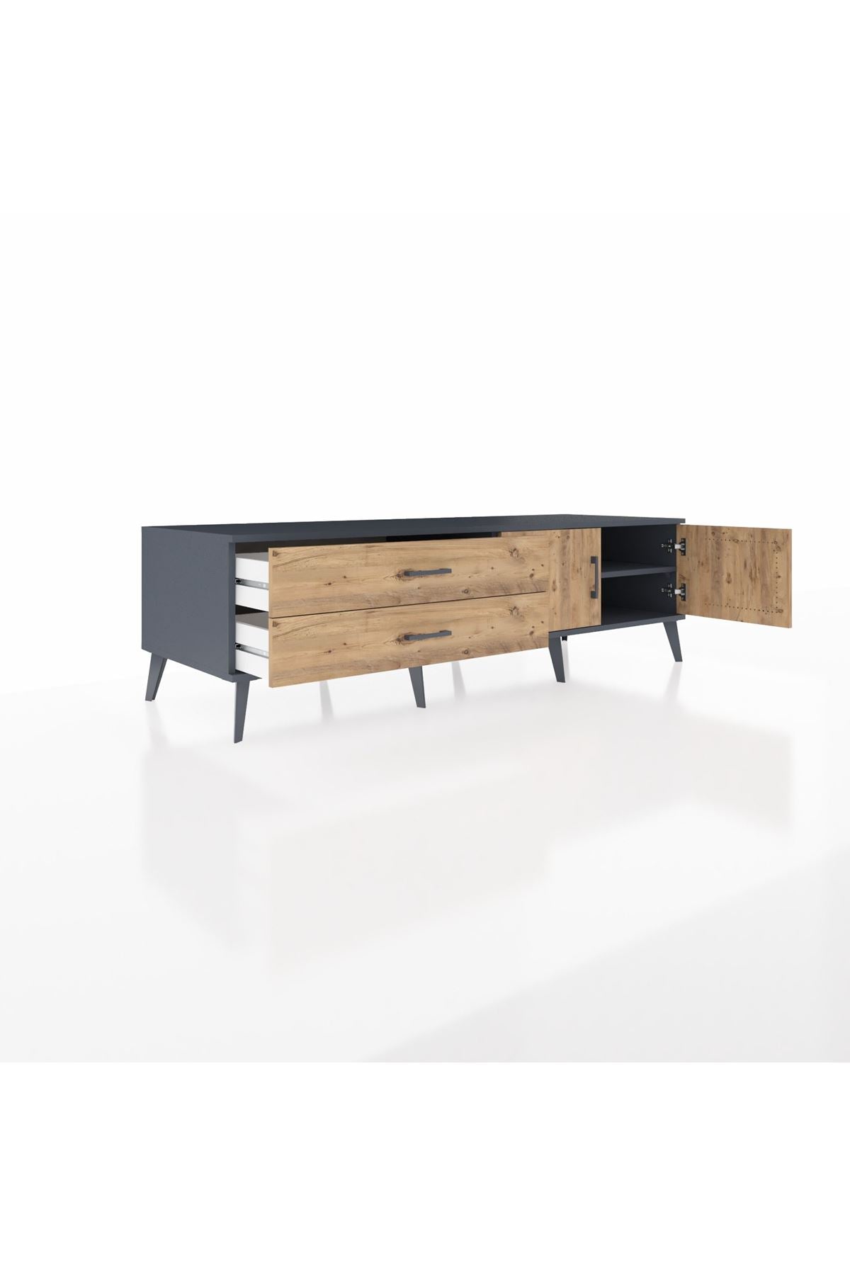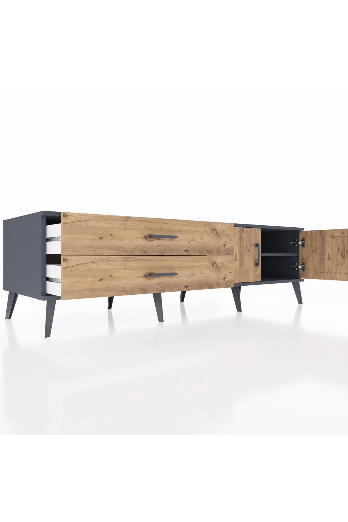 Kronos TV Ünitesi Tek Raflı 2 Çekmeceli 2 Kapaklı 176x59x51 Antrasit-Çam/Çam