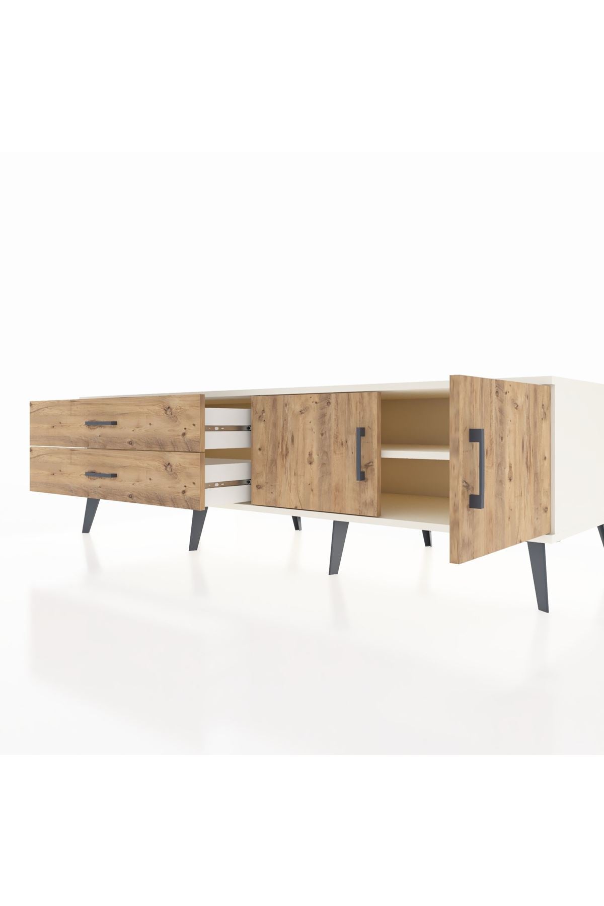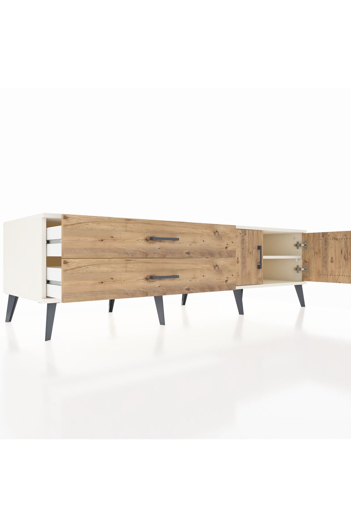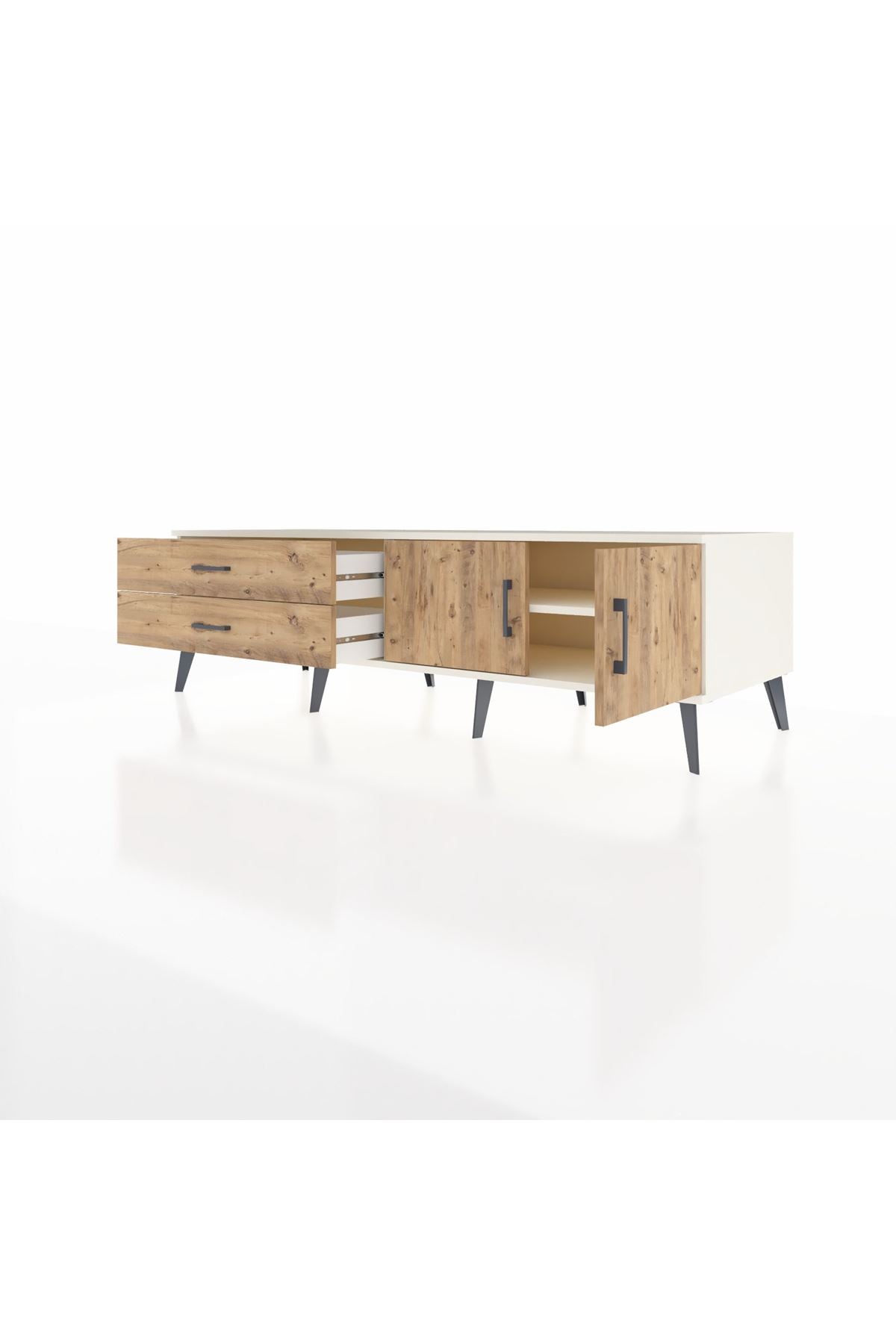 Kronos TV Ünitesi Tek Raflı 2 Çekmeceli 2 Kapaklı 176x59x51 Aytaşı-Çam/Çam