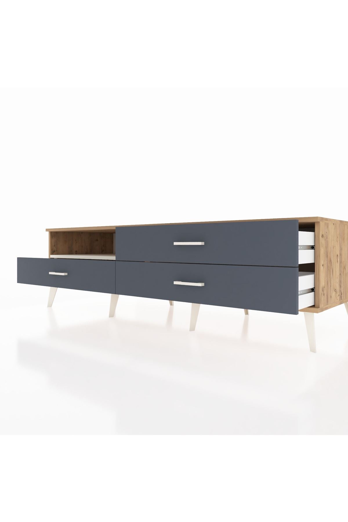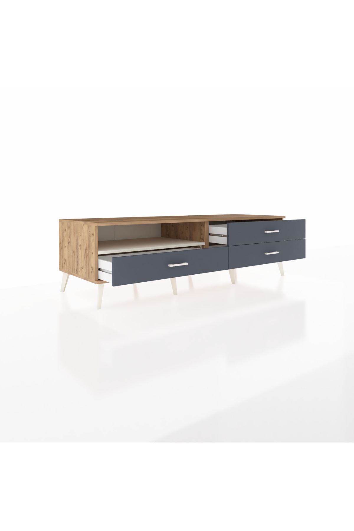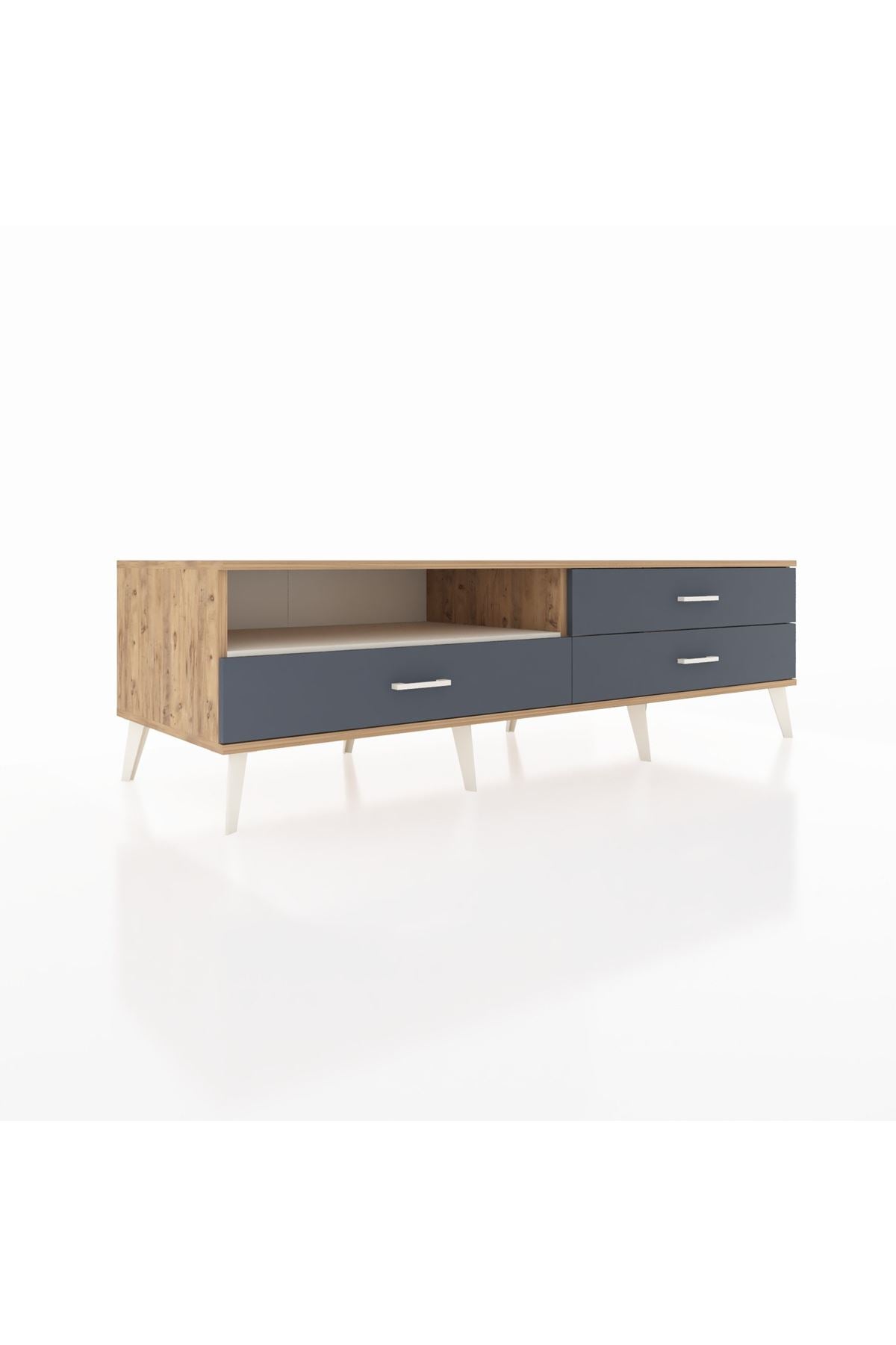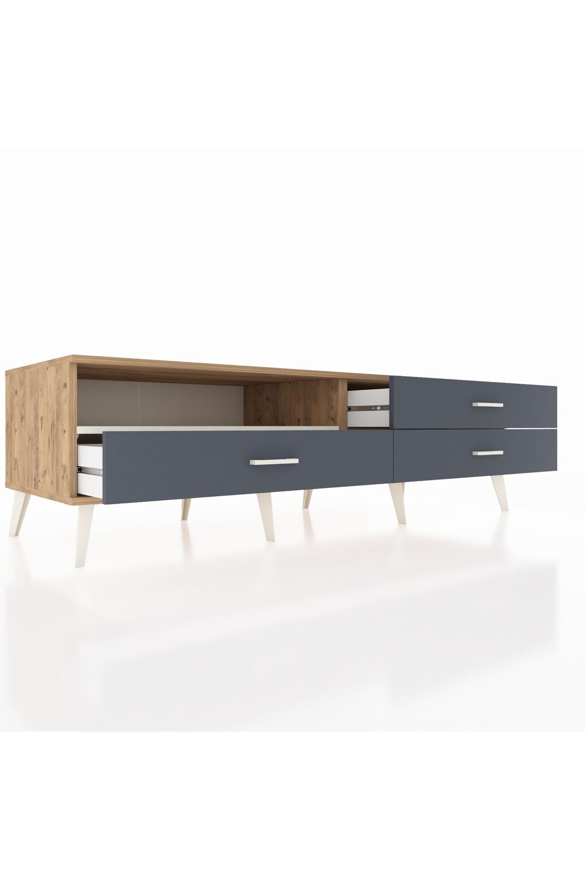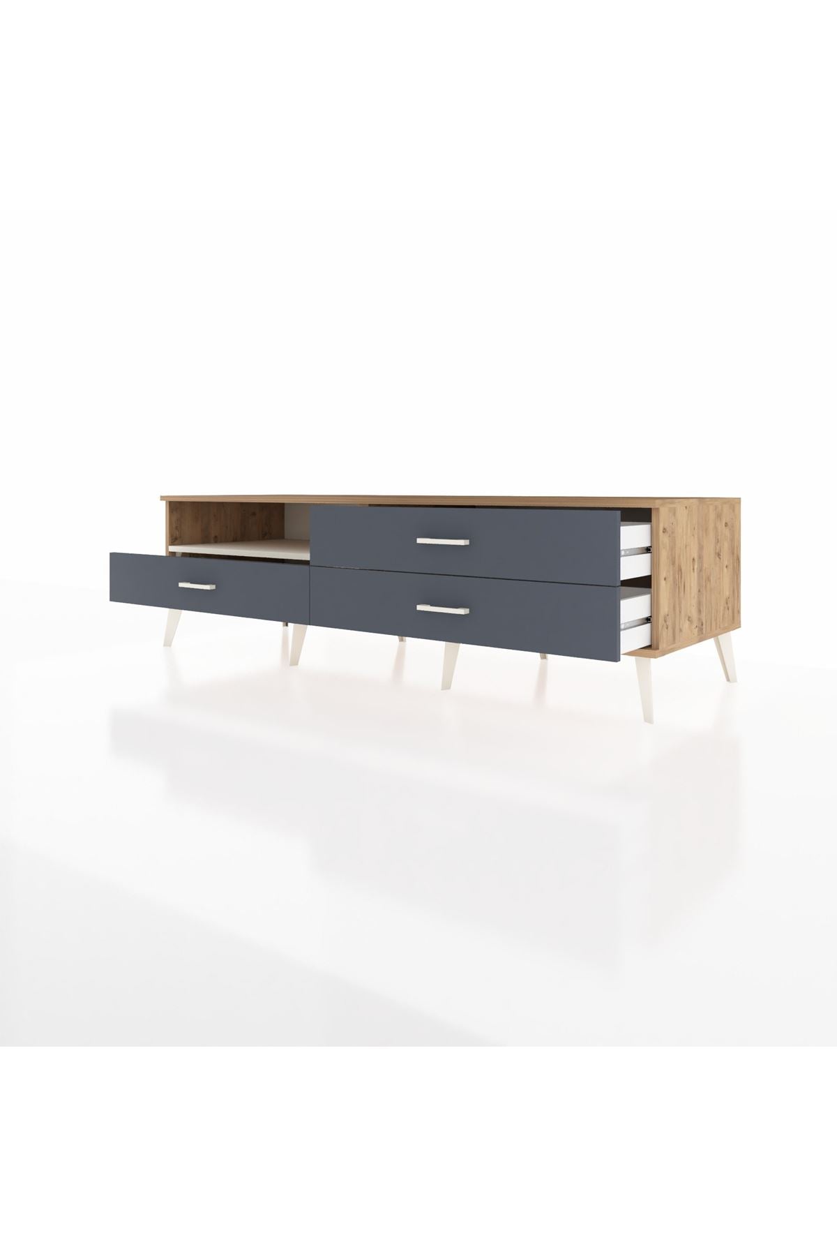 Kronos TV Ünitesi Tek Raflı 3 Çekmeceli 176x59x51 Çam-Aytaşı/Antrasit