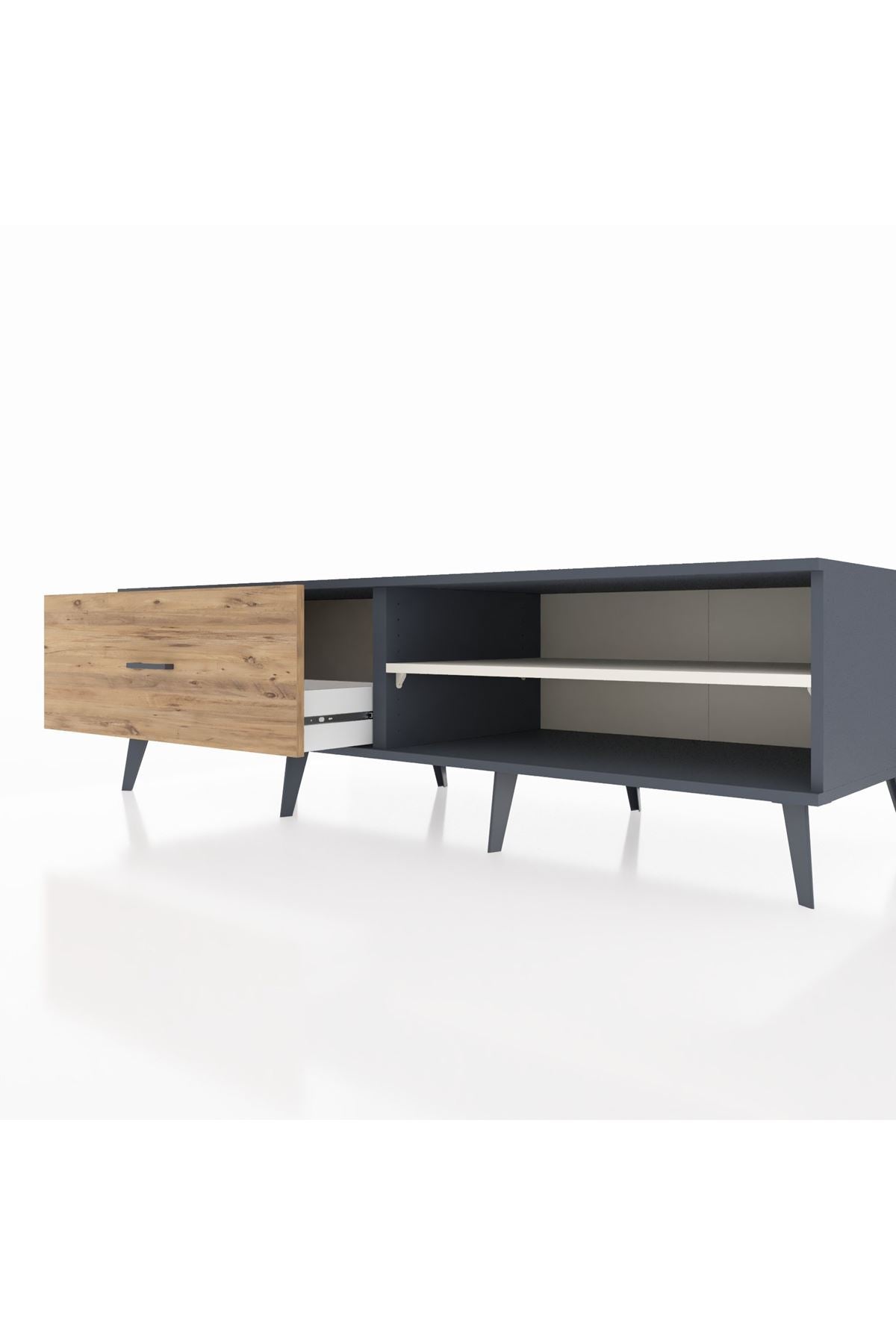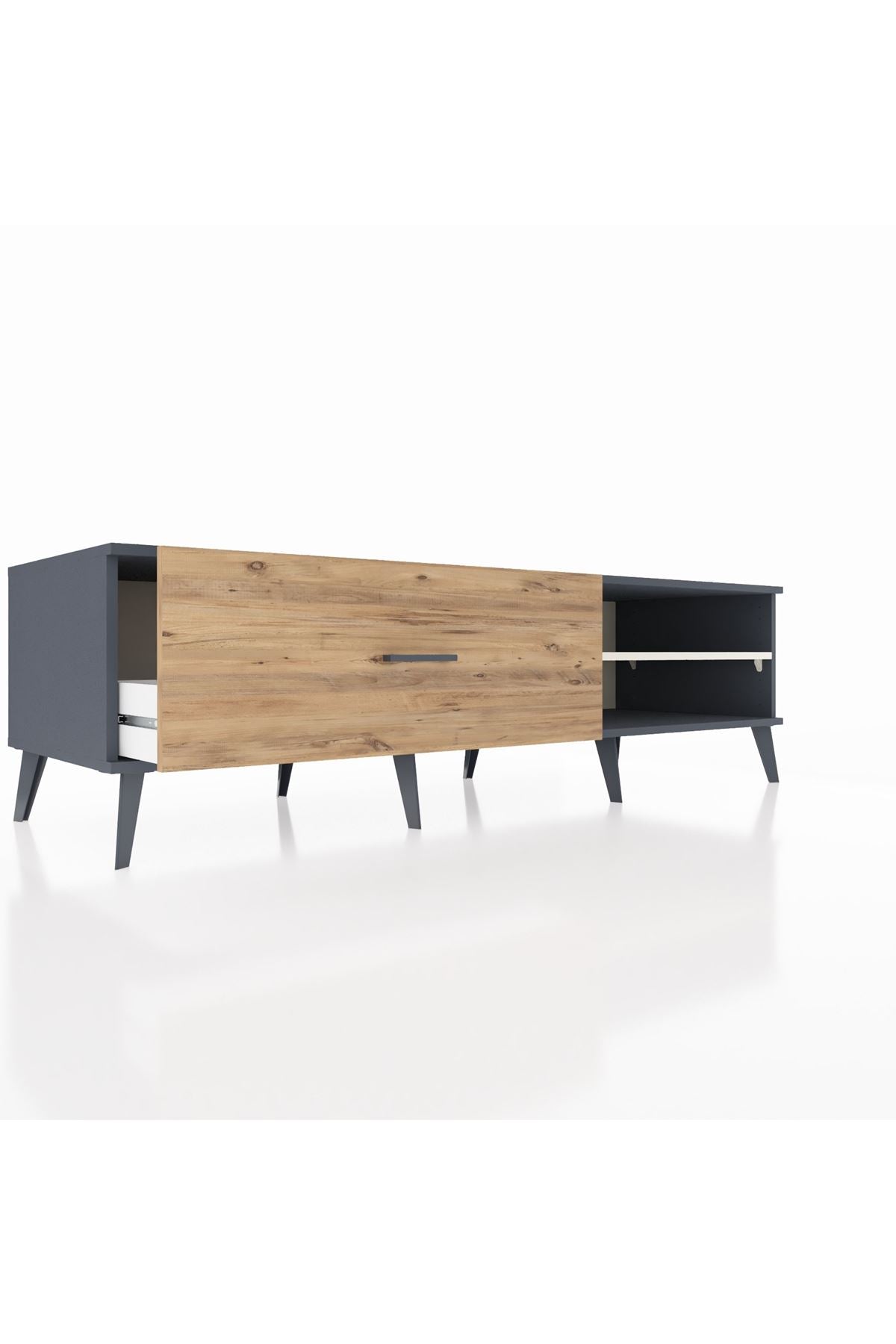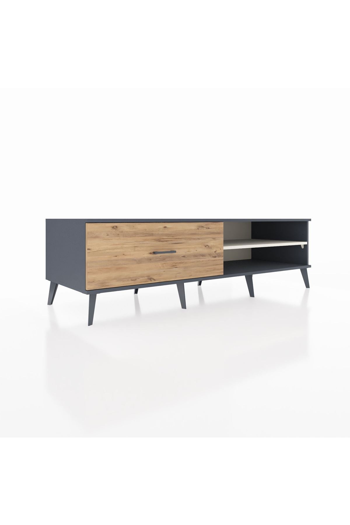 Kronos TV Ünitesi Tek Raflı Tek Çekmeceli 176x59x51 Antrasit-Aytaşı/Çam
