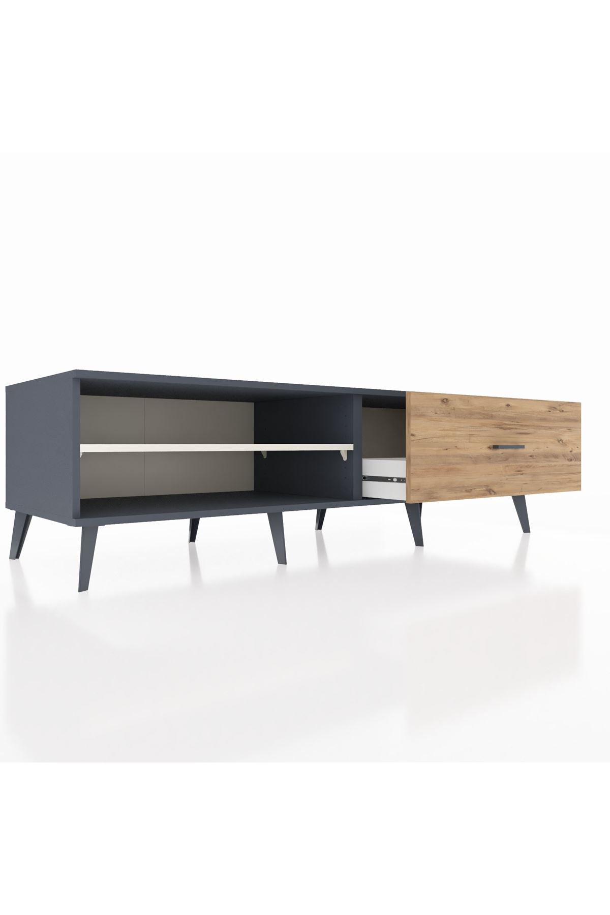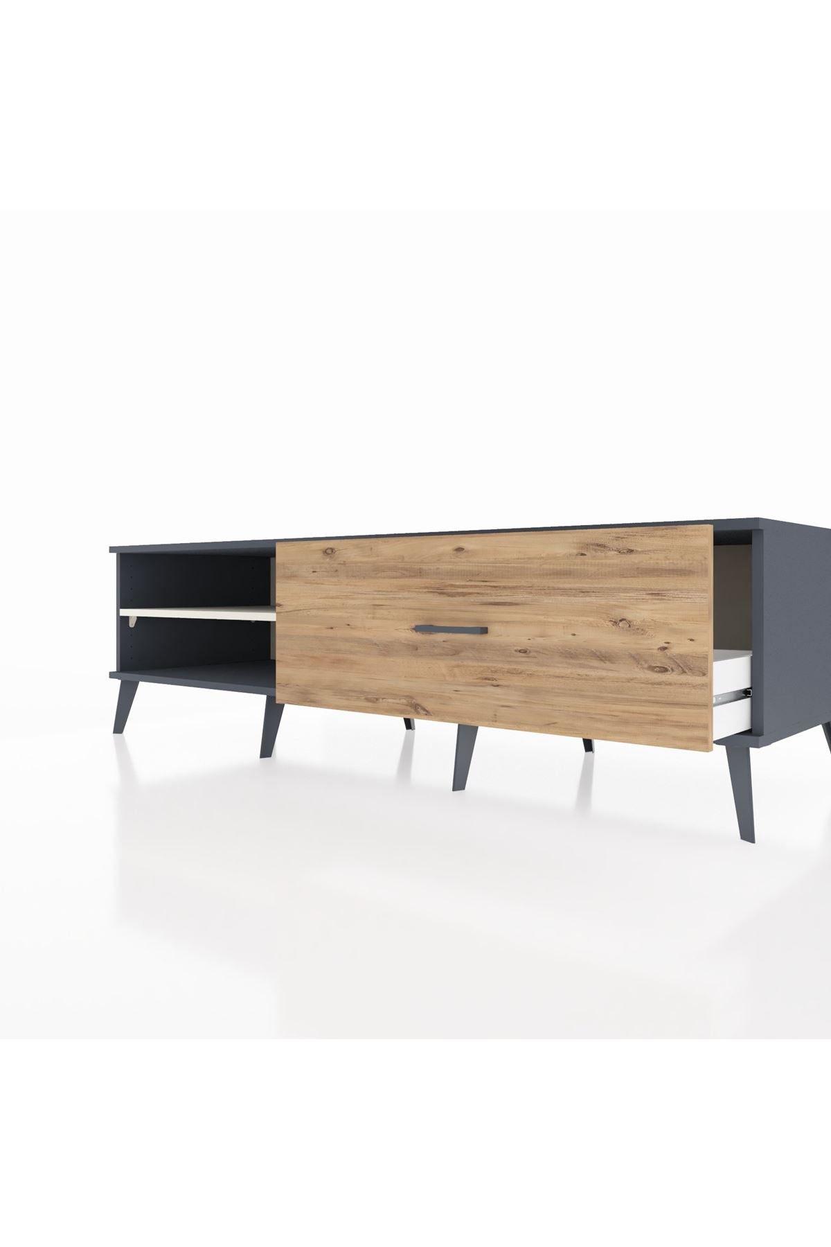 Kronos TV Ünitesi Tek Raflı Tek Çekmeceli 176x59x51 Antrasit-Aytaşı/Çam