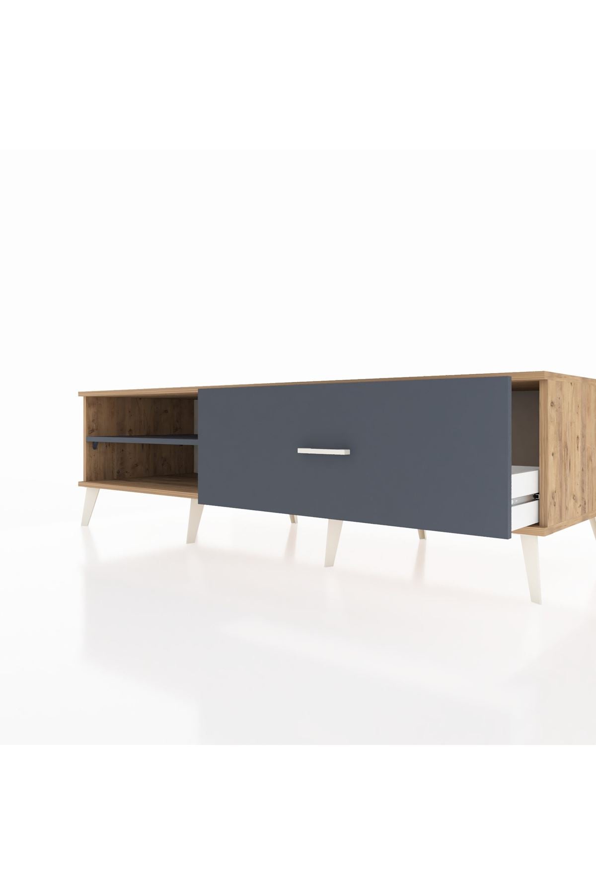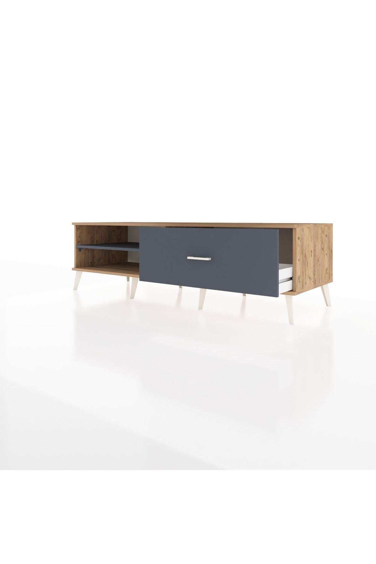Kronos TV Ünitesi Tek Raflı Tek Çekmeceli 176x59x51 Çam-Antrasit/Antrasit