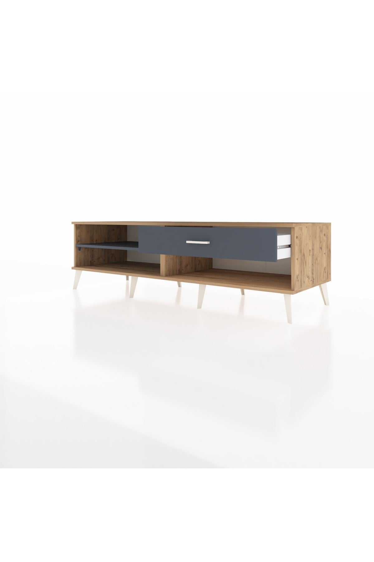 Kronos TV Ünitesi Tek Raflı Tek Çekmeceli 176x59x51 Çam-Antrasit/Antrasit