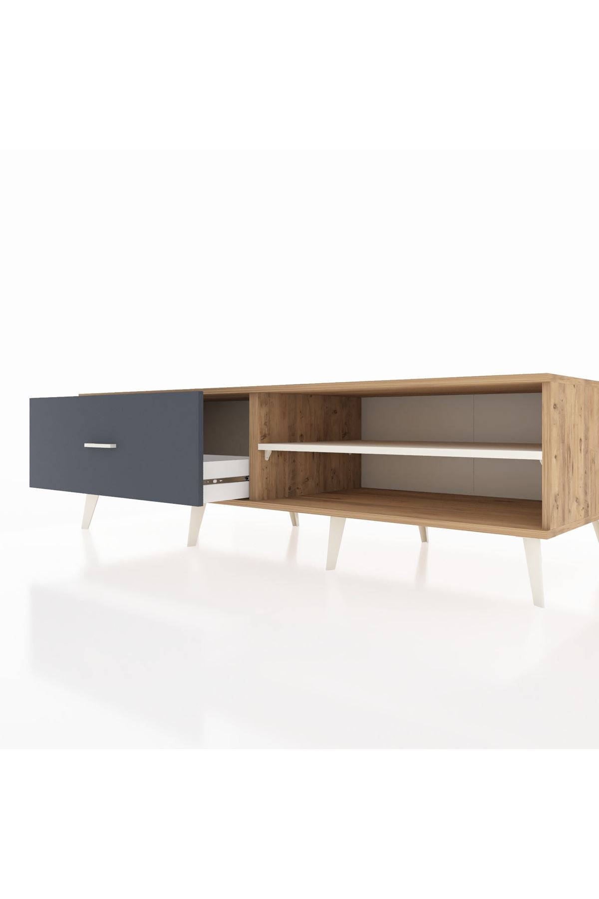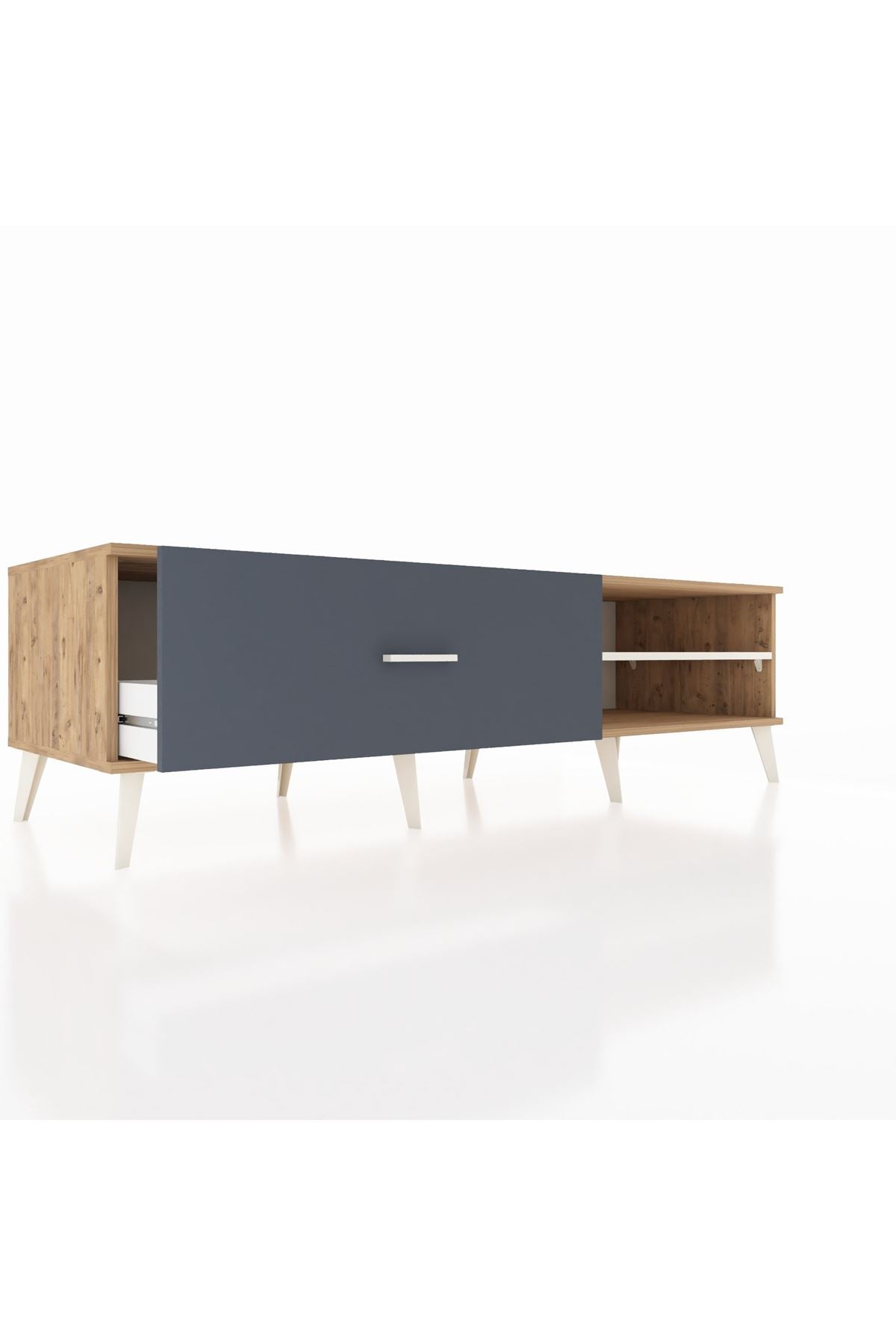 Kronos TV Ünitesi Tek Raflı Tek Çekmeceli 176x59x51 Çam-Aytaşı/Antrasit