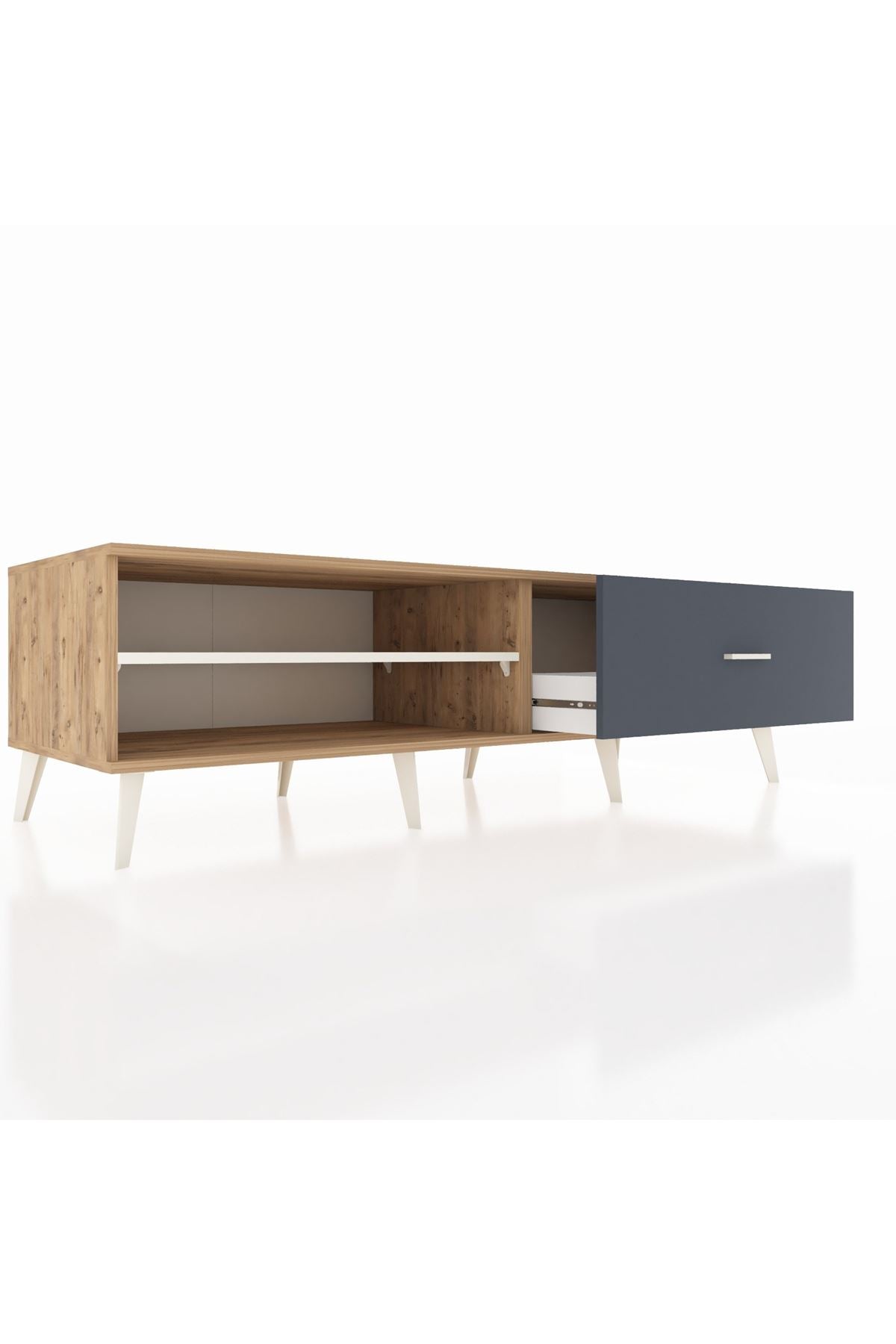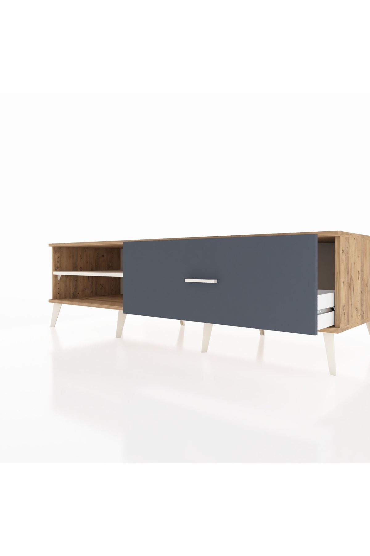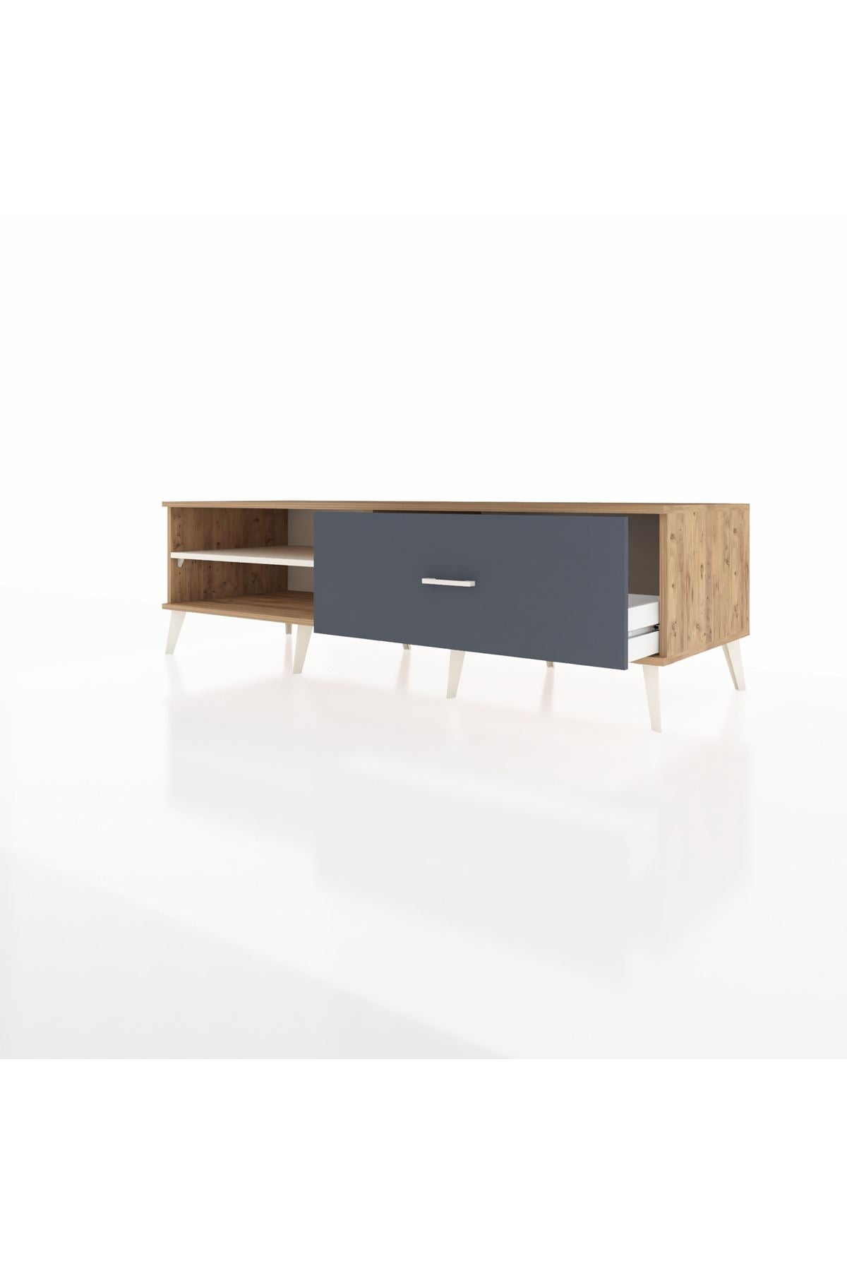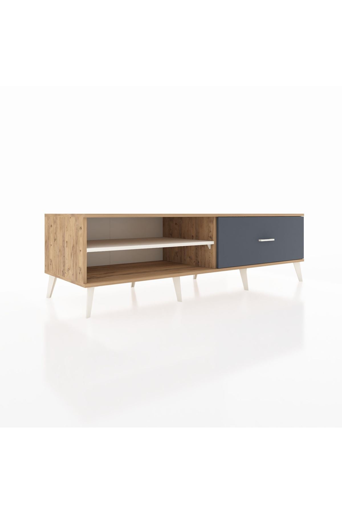 Kronos TV Ünitesi Tek Raflı Tek Çekmeceli 176x59x51 Çam-Aytaşı/Antrasit