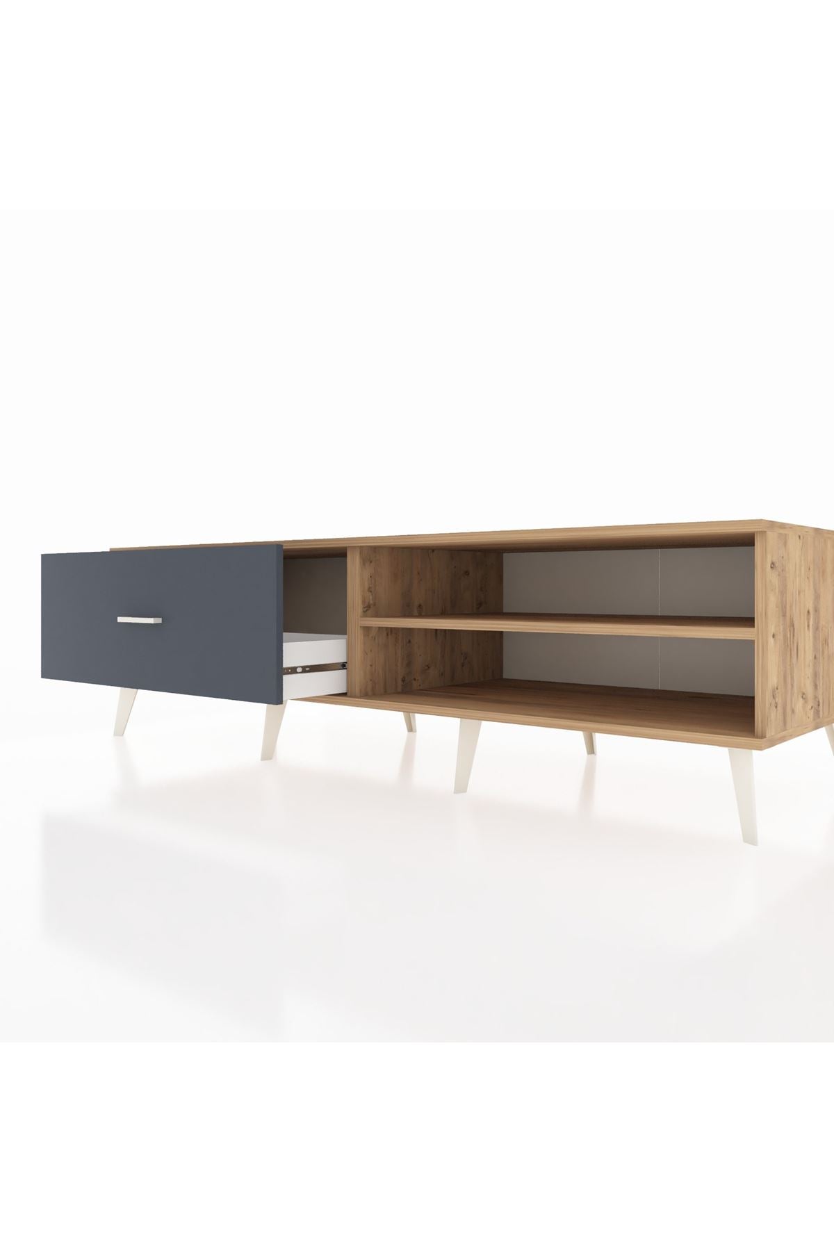 Kronos TV Ünitesi Tek Raflı Tek Çekmeceli 176x59x51 Çam-Çam/Antrasit