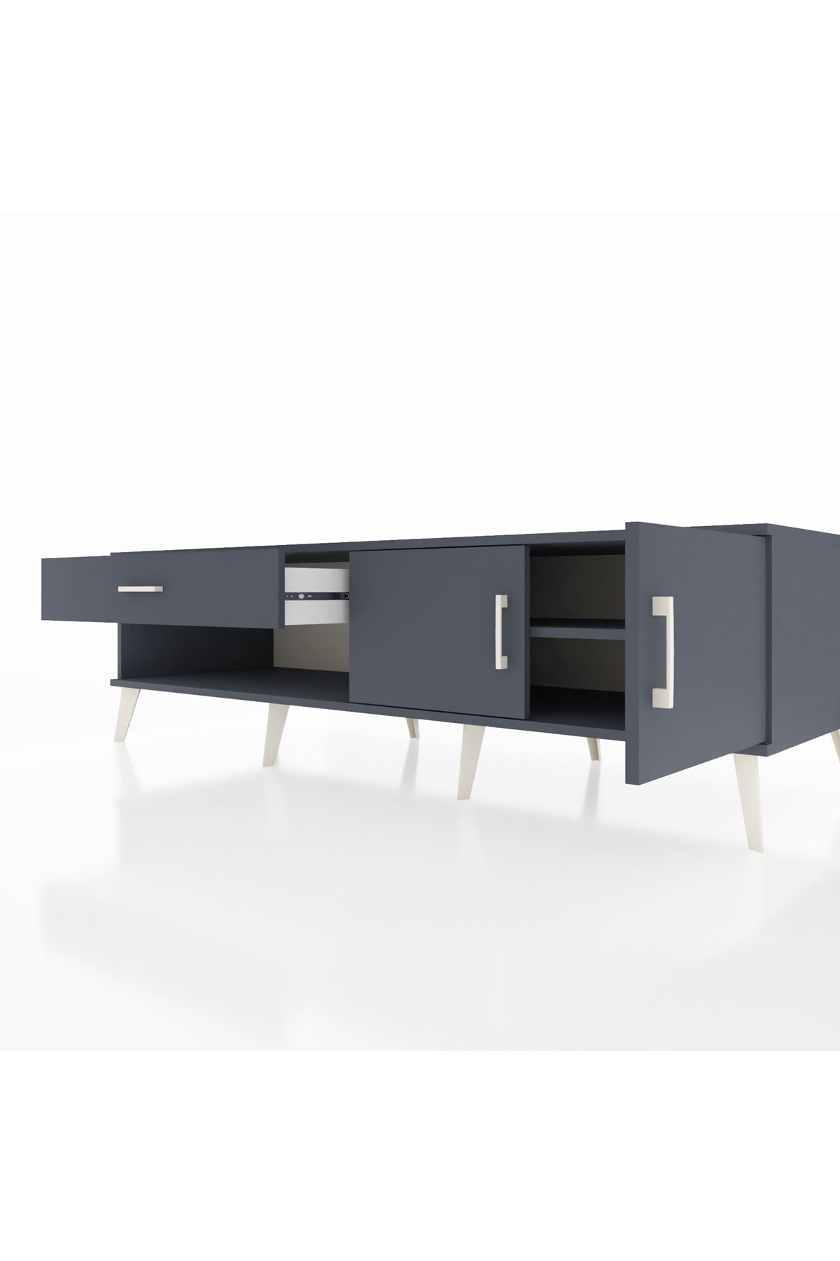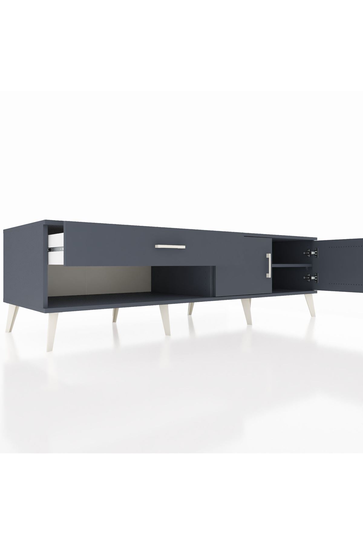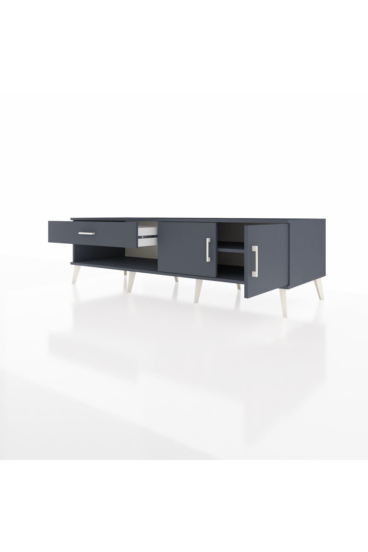Kronos TV Ünitesi Tek Raflı Tek Çekmeceli 2 Kapaklı 176x59x51 Antrasit-Antrasit/Antrasit