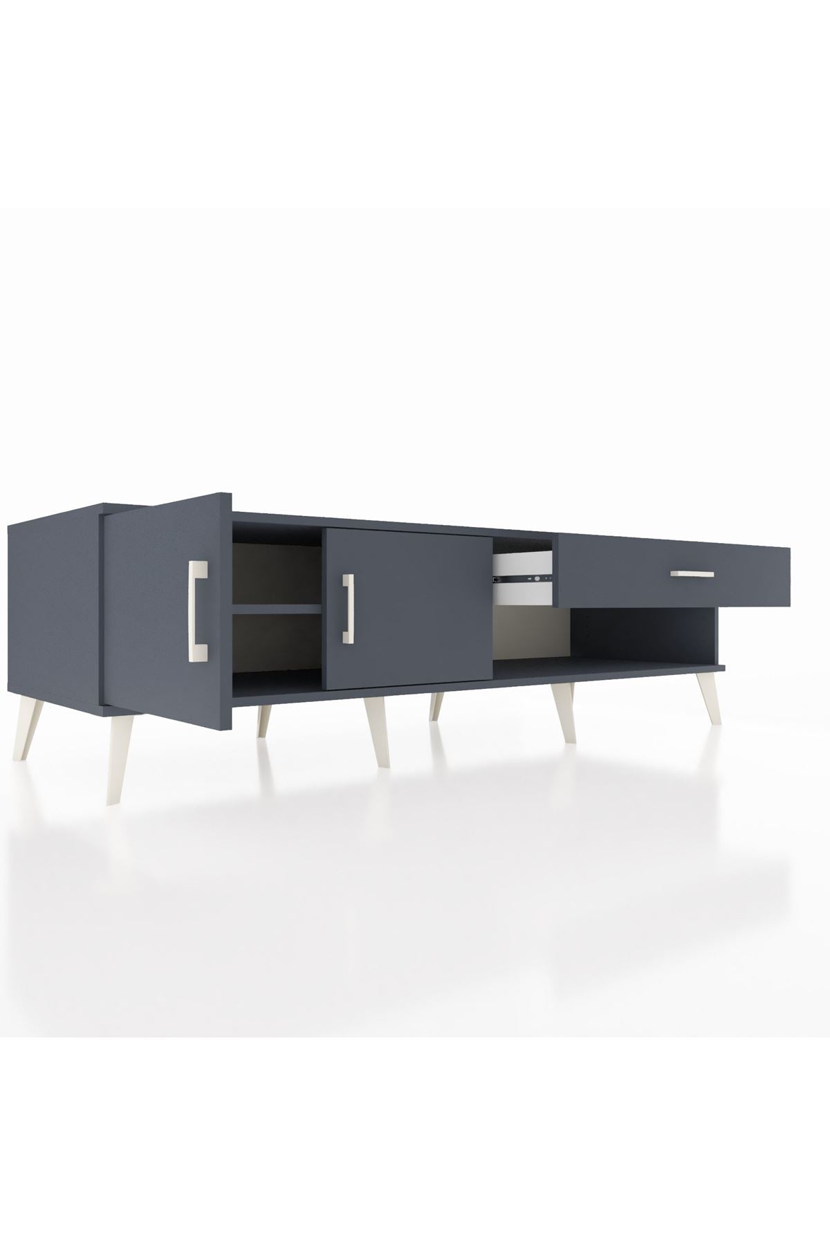 Kronos TV Ünitesi Tek Raflı Tek Çekmeceli 2 Kapaklı 176x59x51 Antrasit-Antrasit/Antrasit