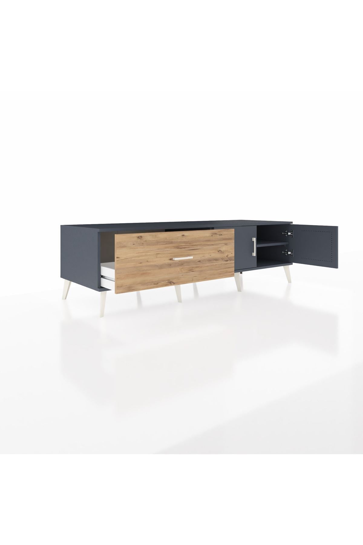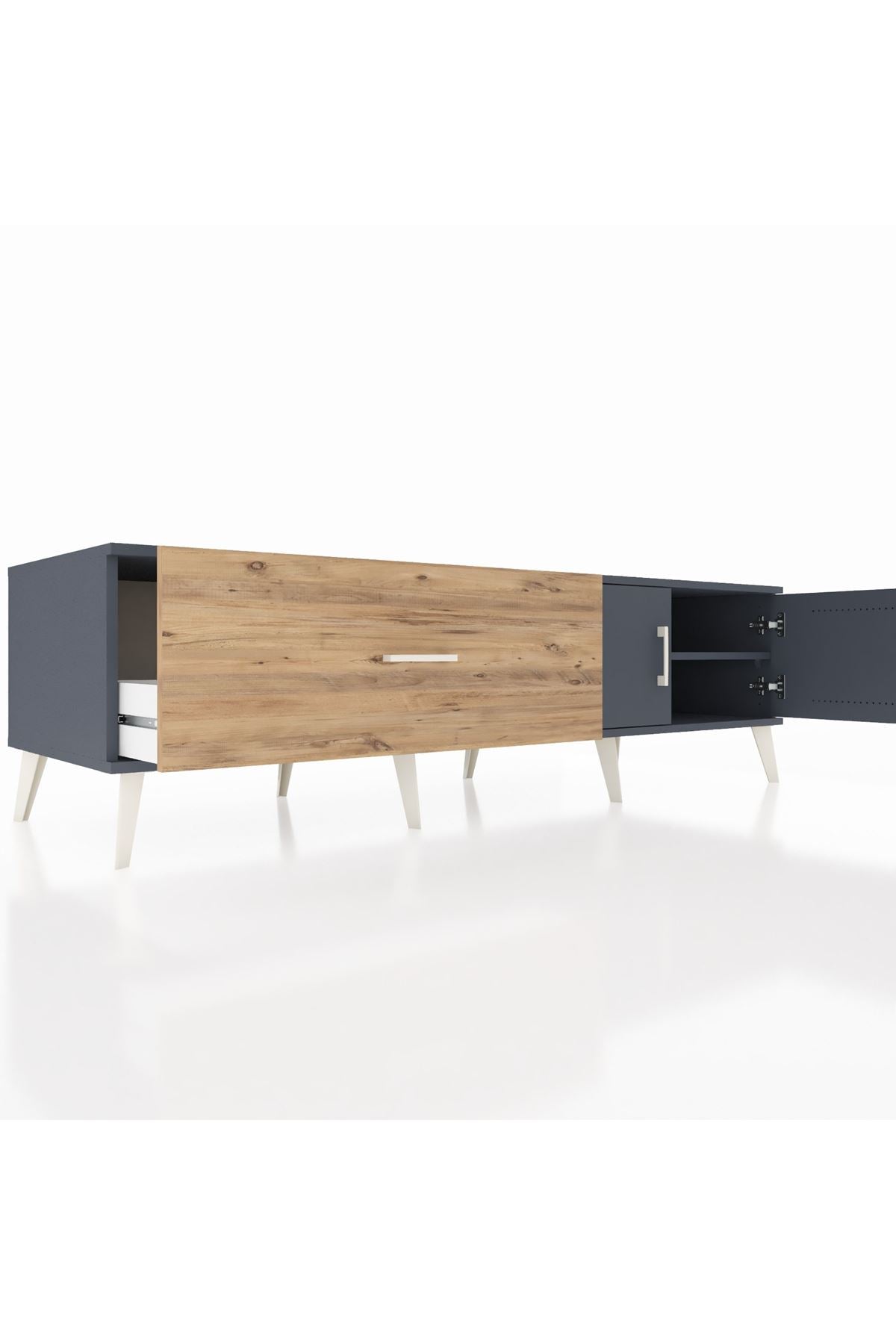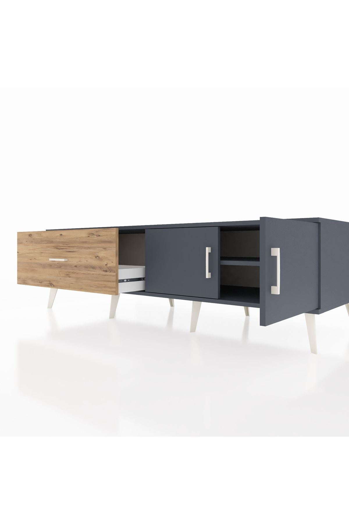 Kronos TV Ünitesi Tek Raflı Tek Çekmeceli 2 Kapaklı 176x59x51 Antrasit-Antrasit/Çam