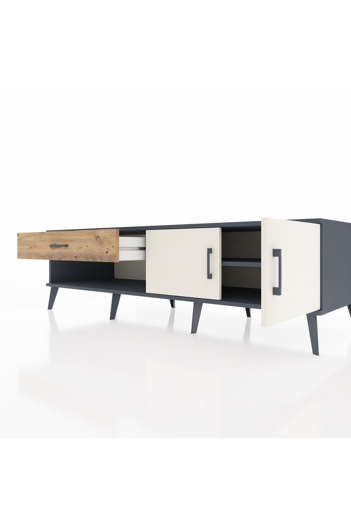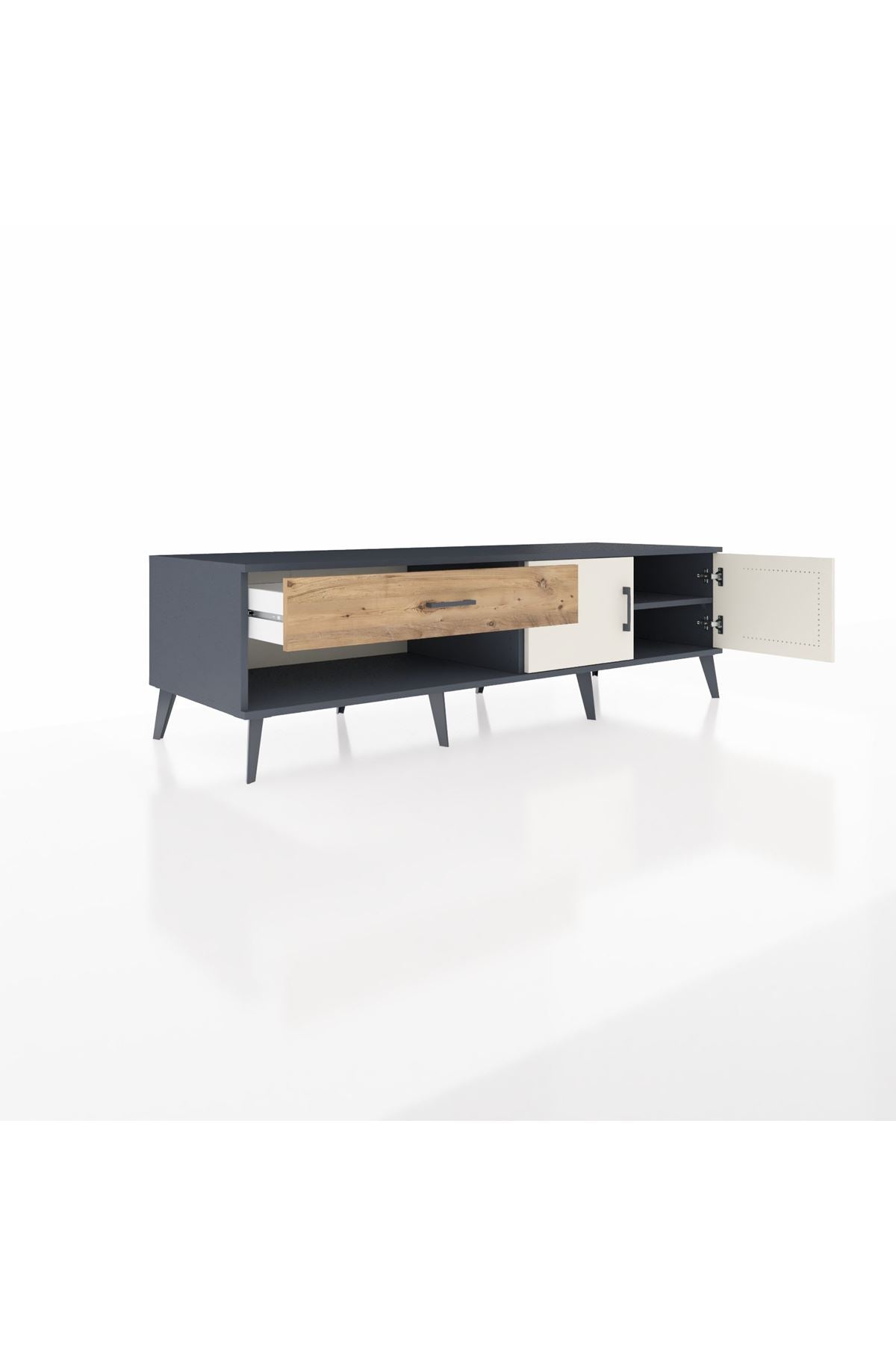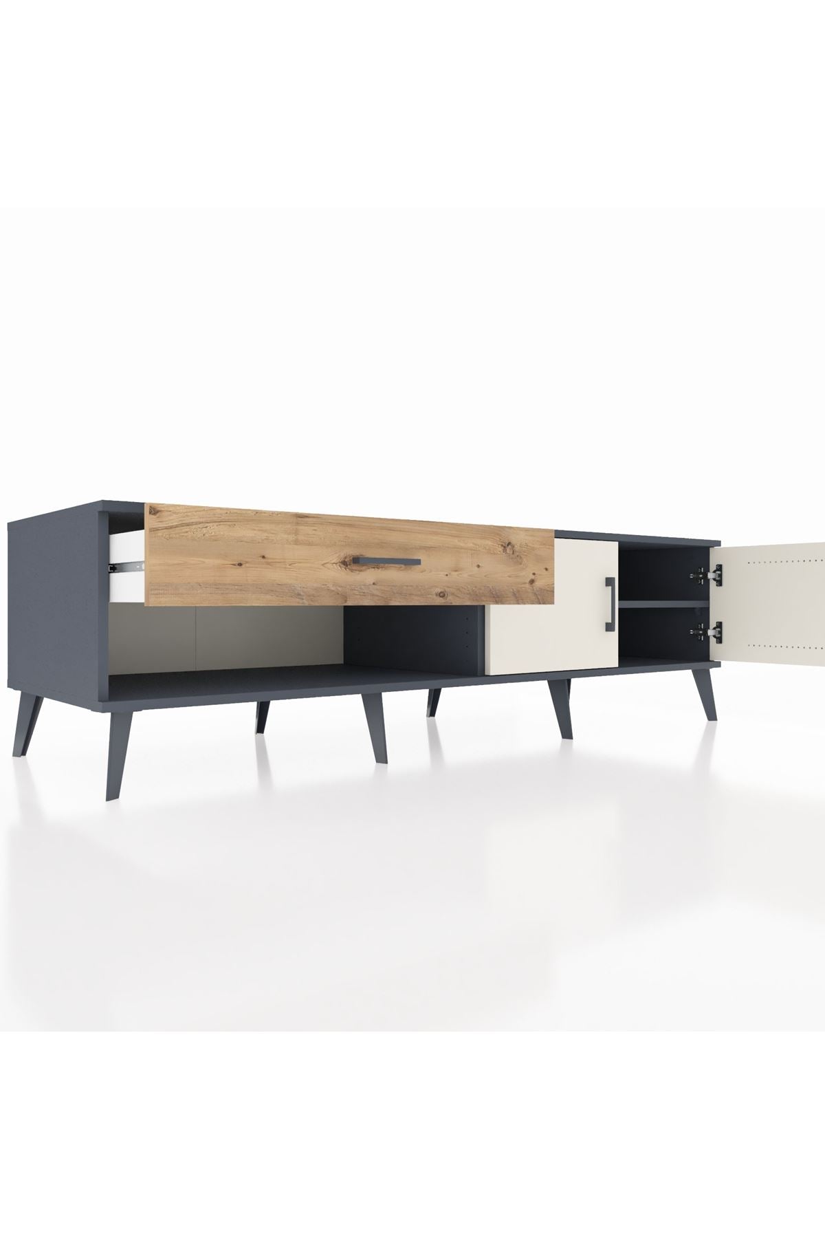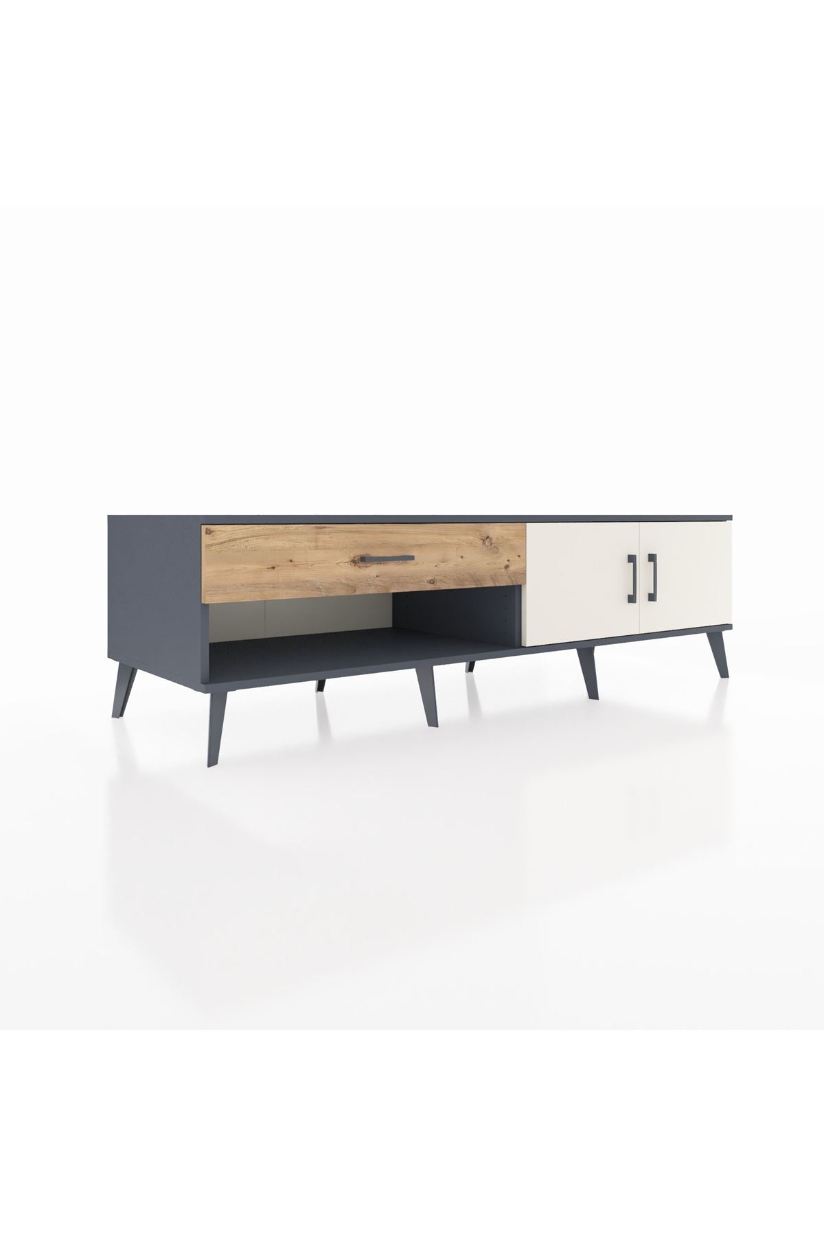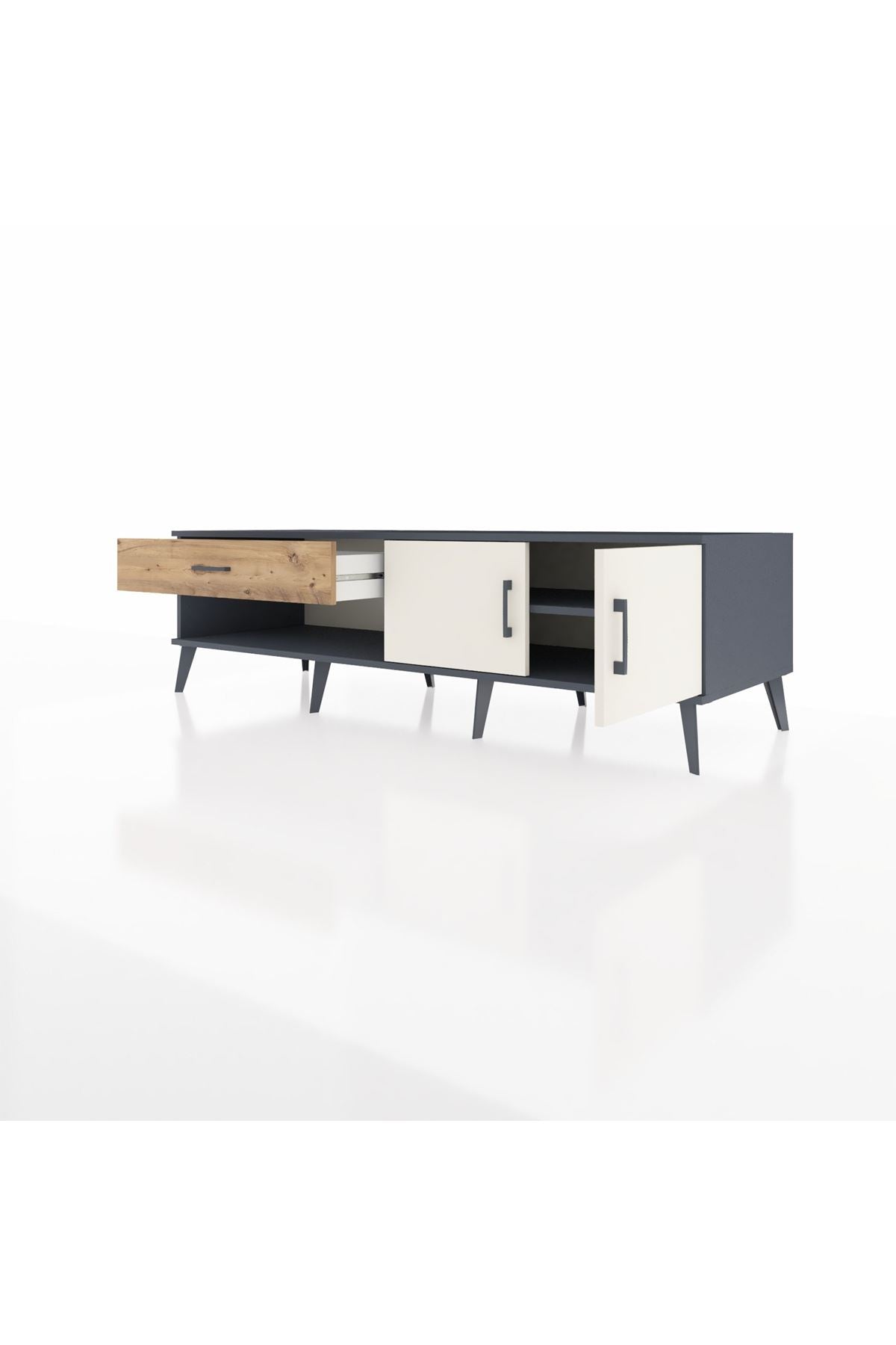 Kronos TV Ünitesi Tek Raflı Tek Çekmeceli 2 Kapaklı 176x59x51 Antrasit-Aytaşı/Çam