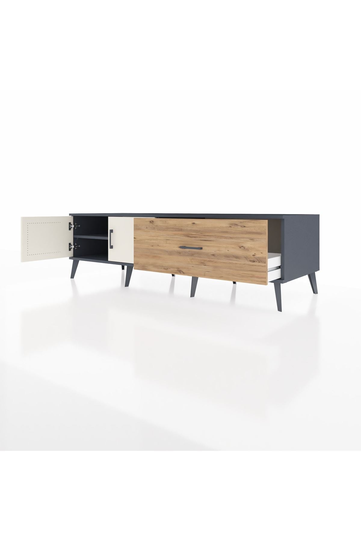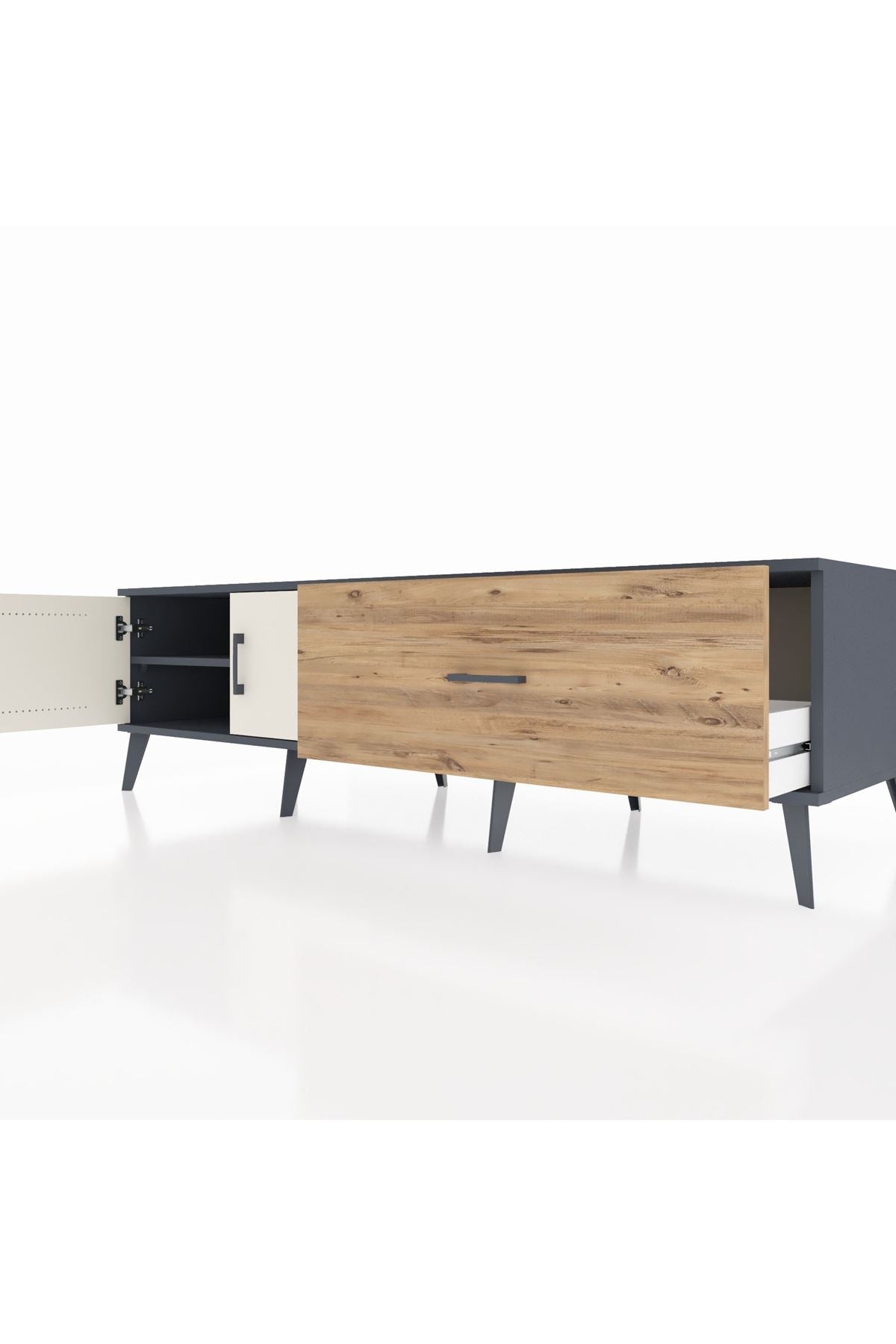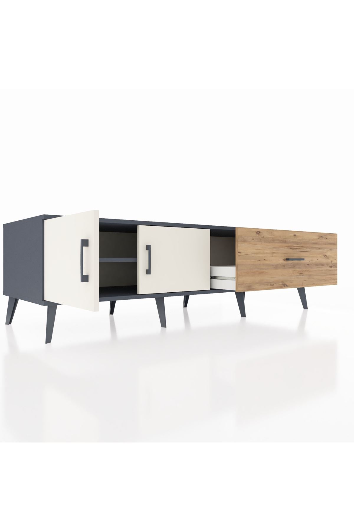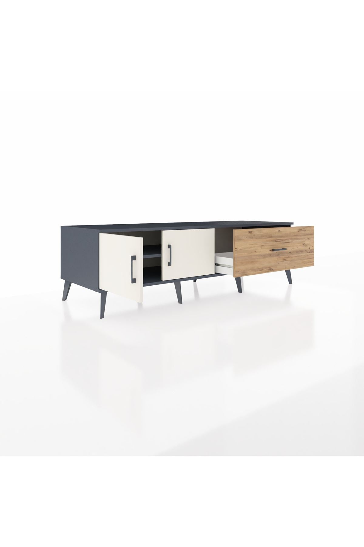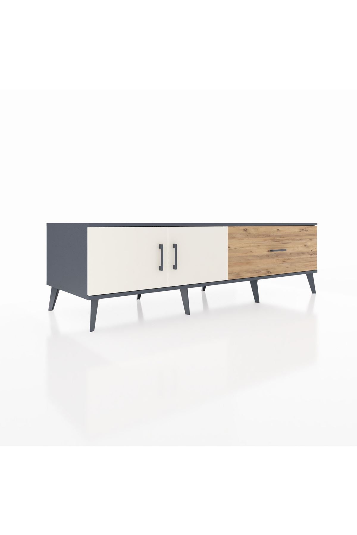 Kronos TV Ünitesi Tek Raflı Tek Çekmeceli 2 Kapaklı 176x59x51 Antrasit-Aytaşı/Çam