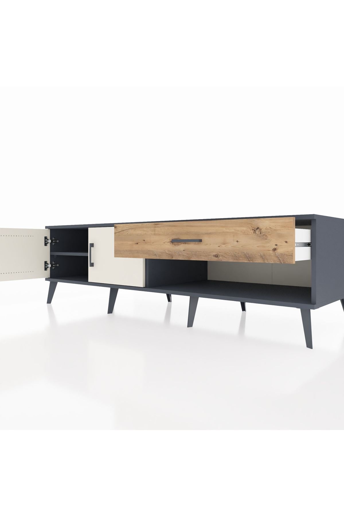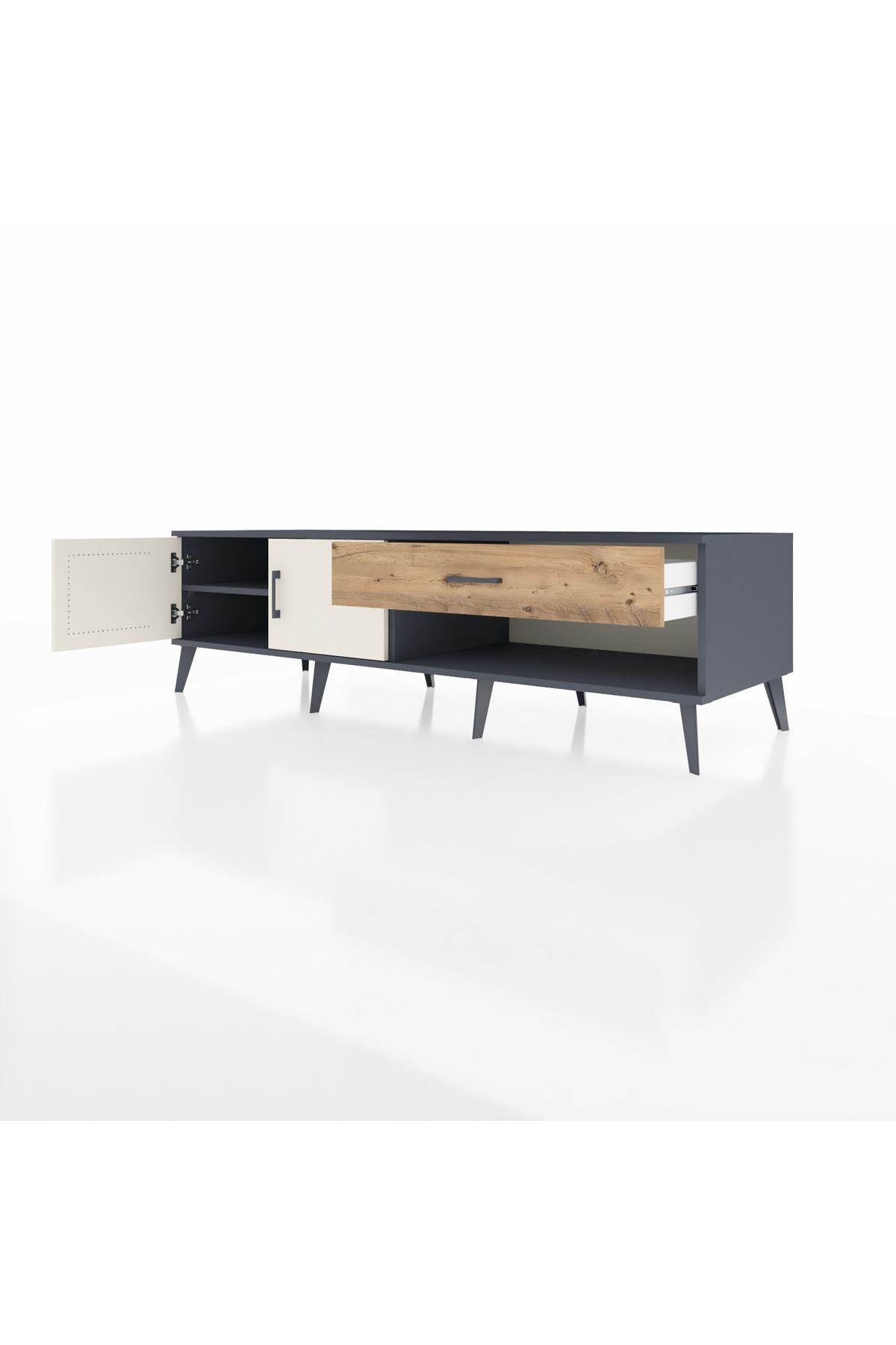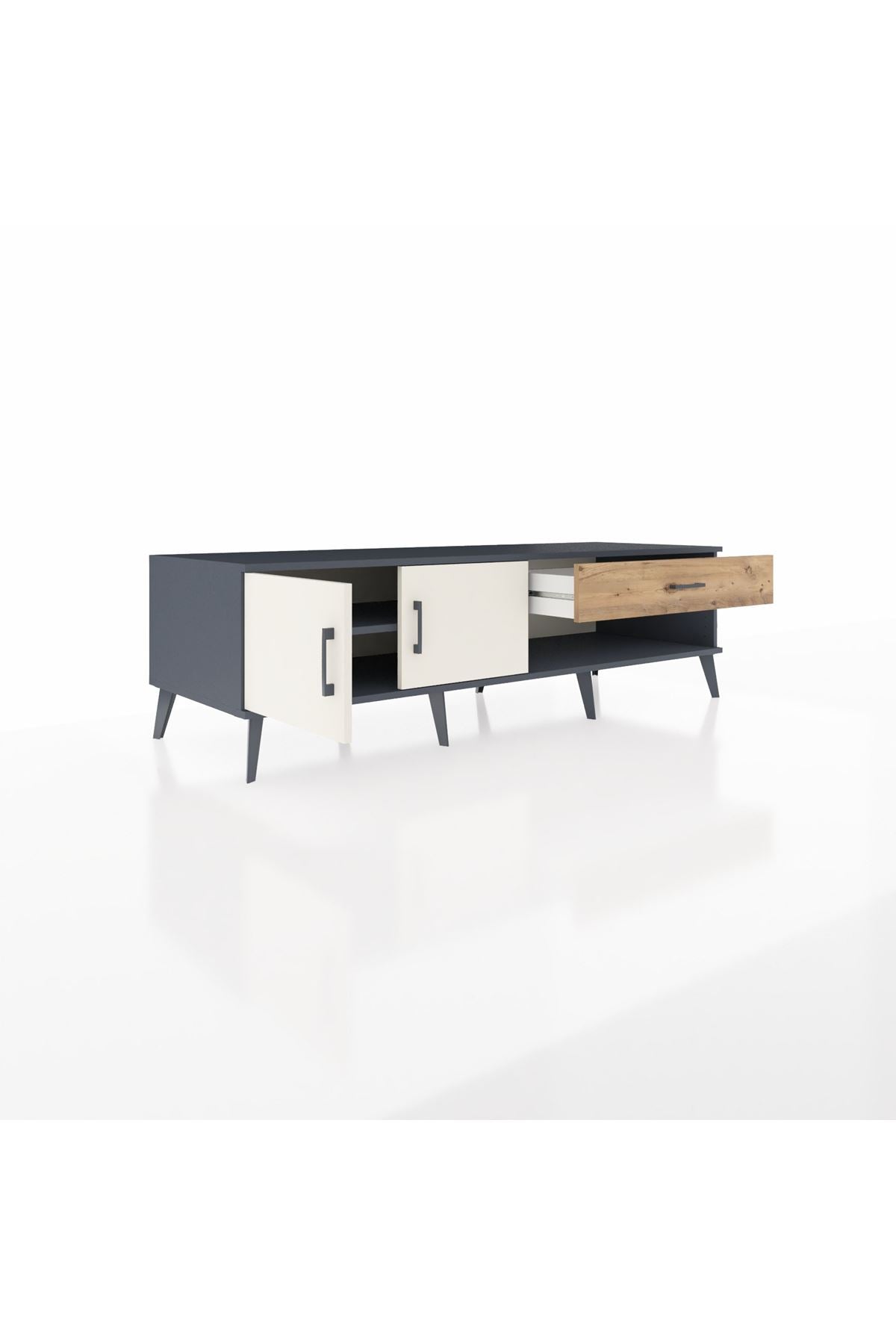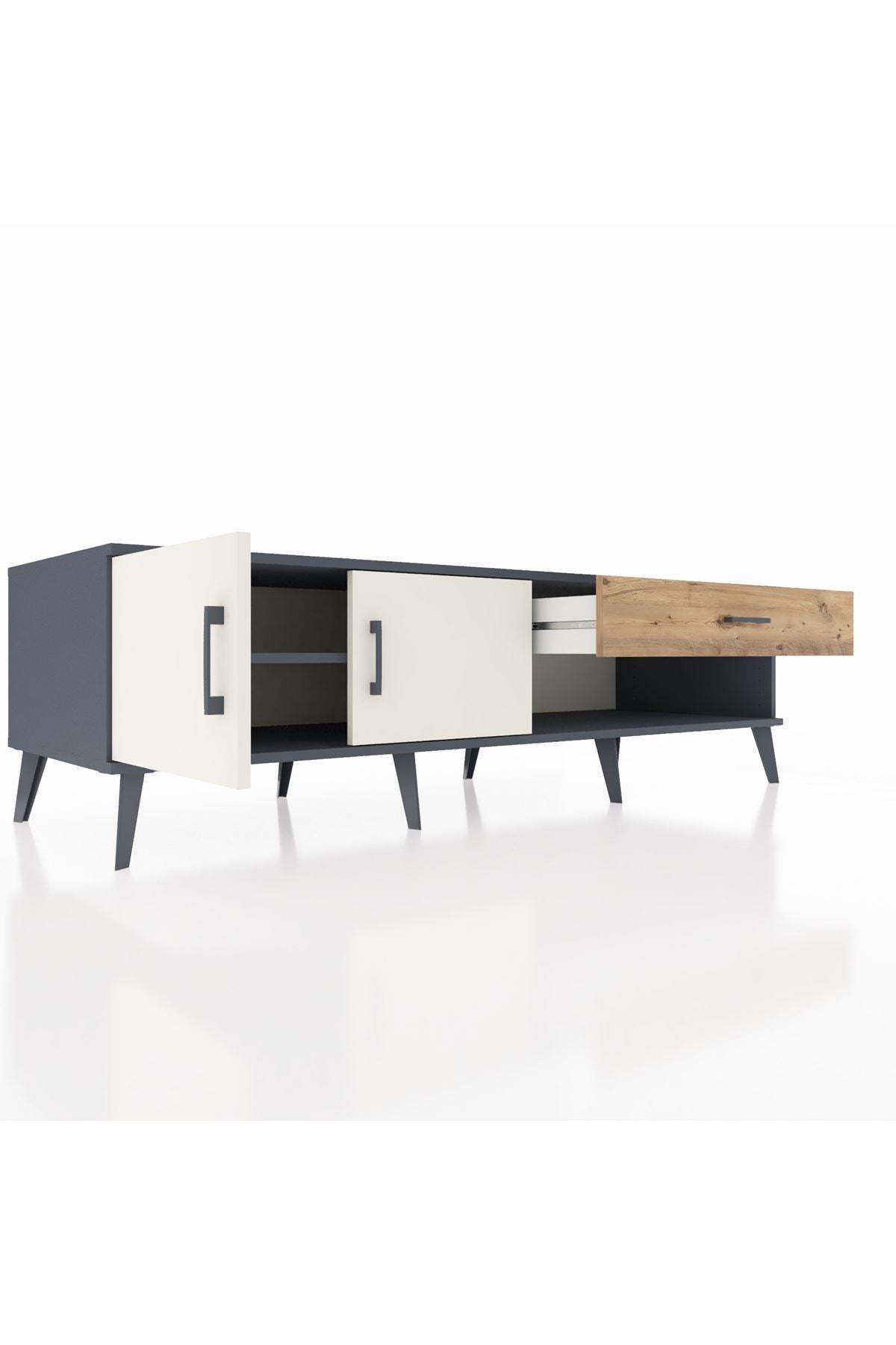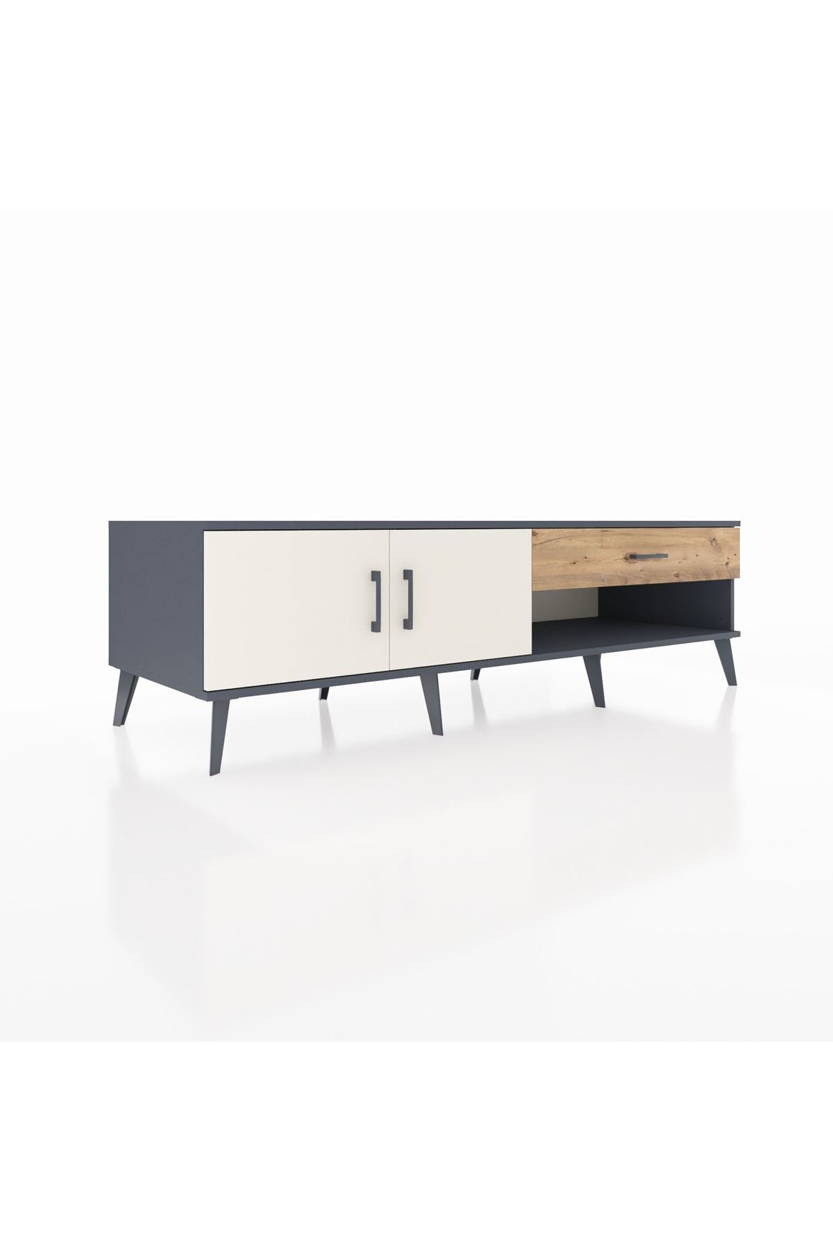 Kronos TV Ünitesi Tek Raflı Tek Çekmeceli 2 Kapaklı 176x59x51 Antrasit-Aytaşı/Çam