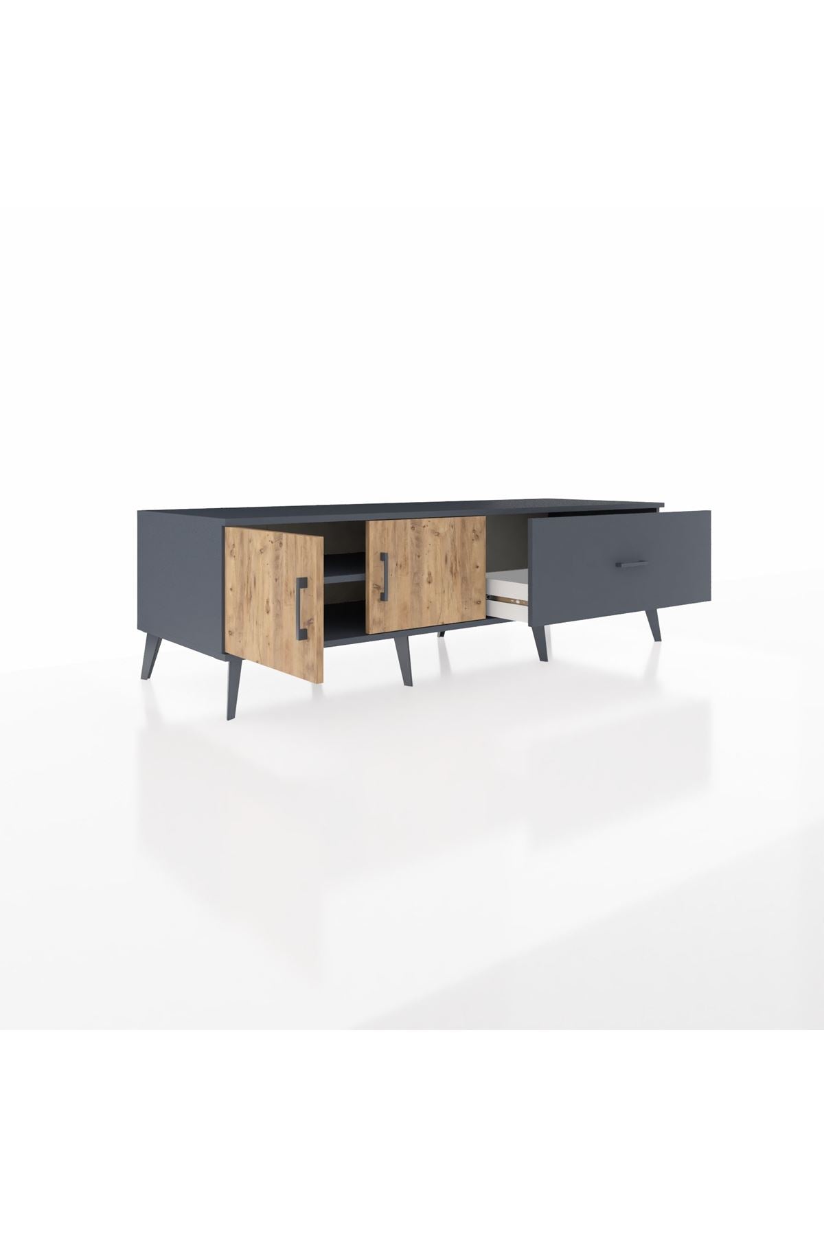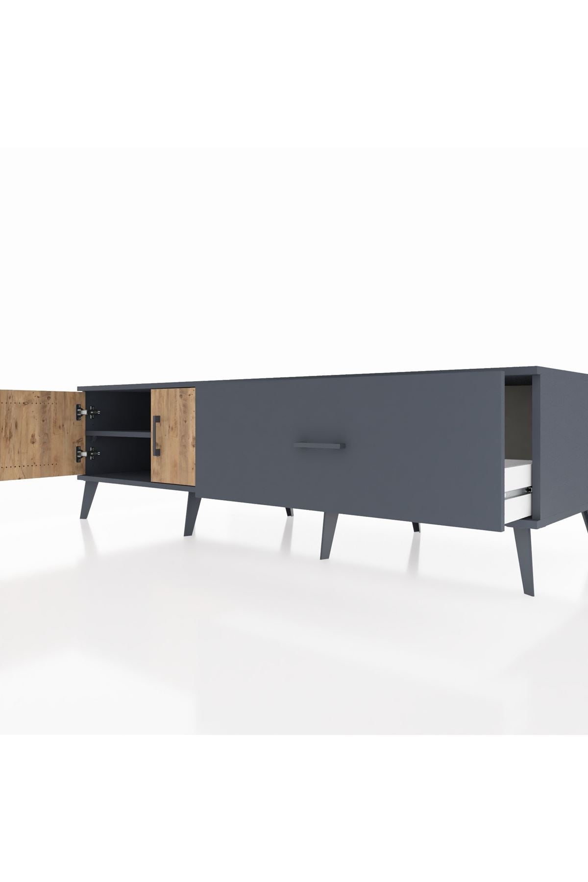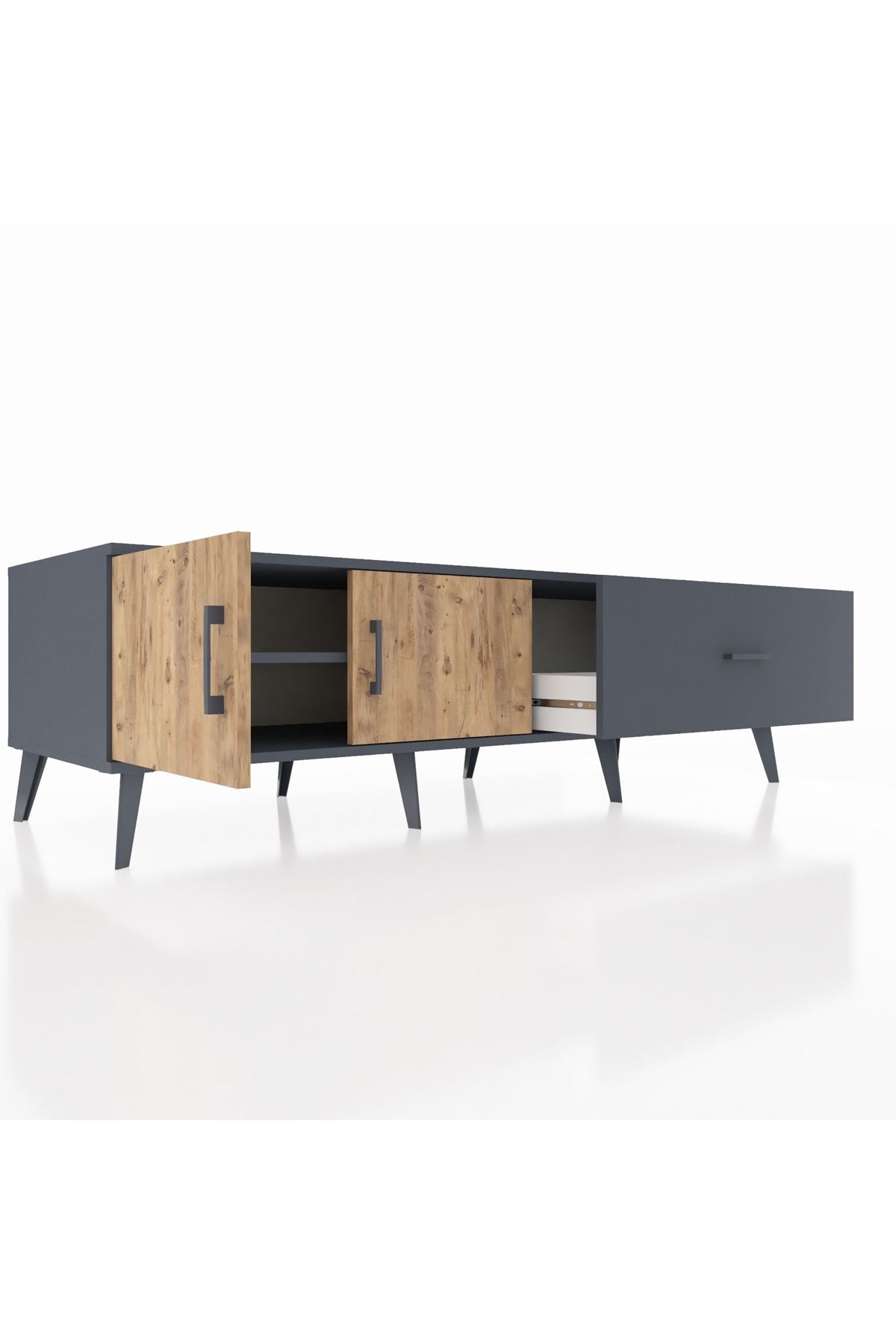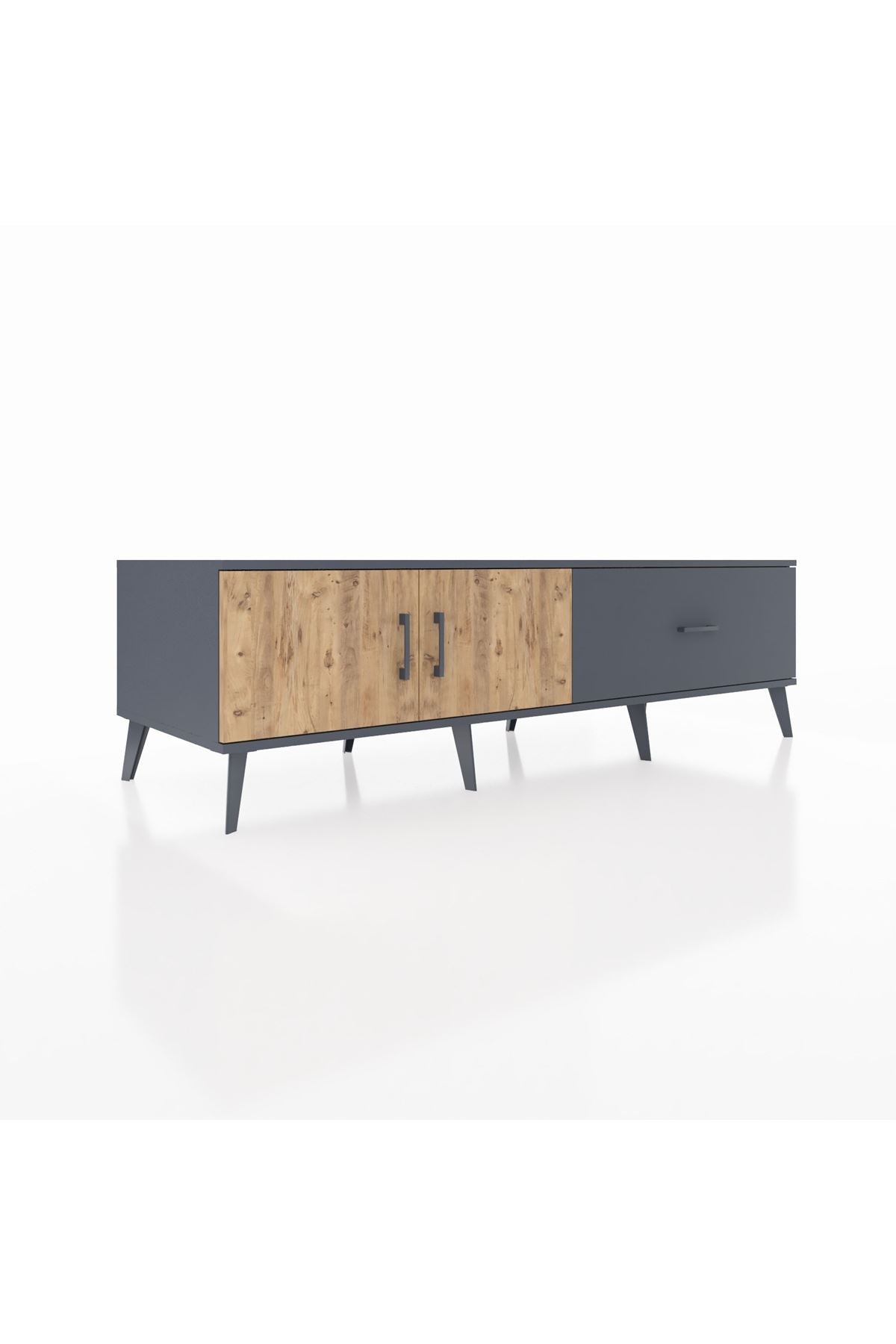 Kronos TV Ünitesi Tek Raflı Tek Çekmeceli 2 Kapaklı 176x59x51 Antrasit-Çam/Antrasit