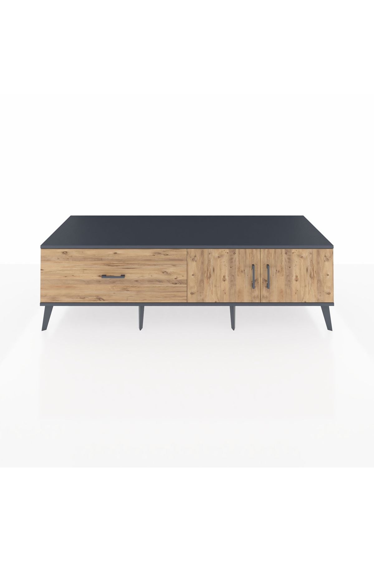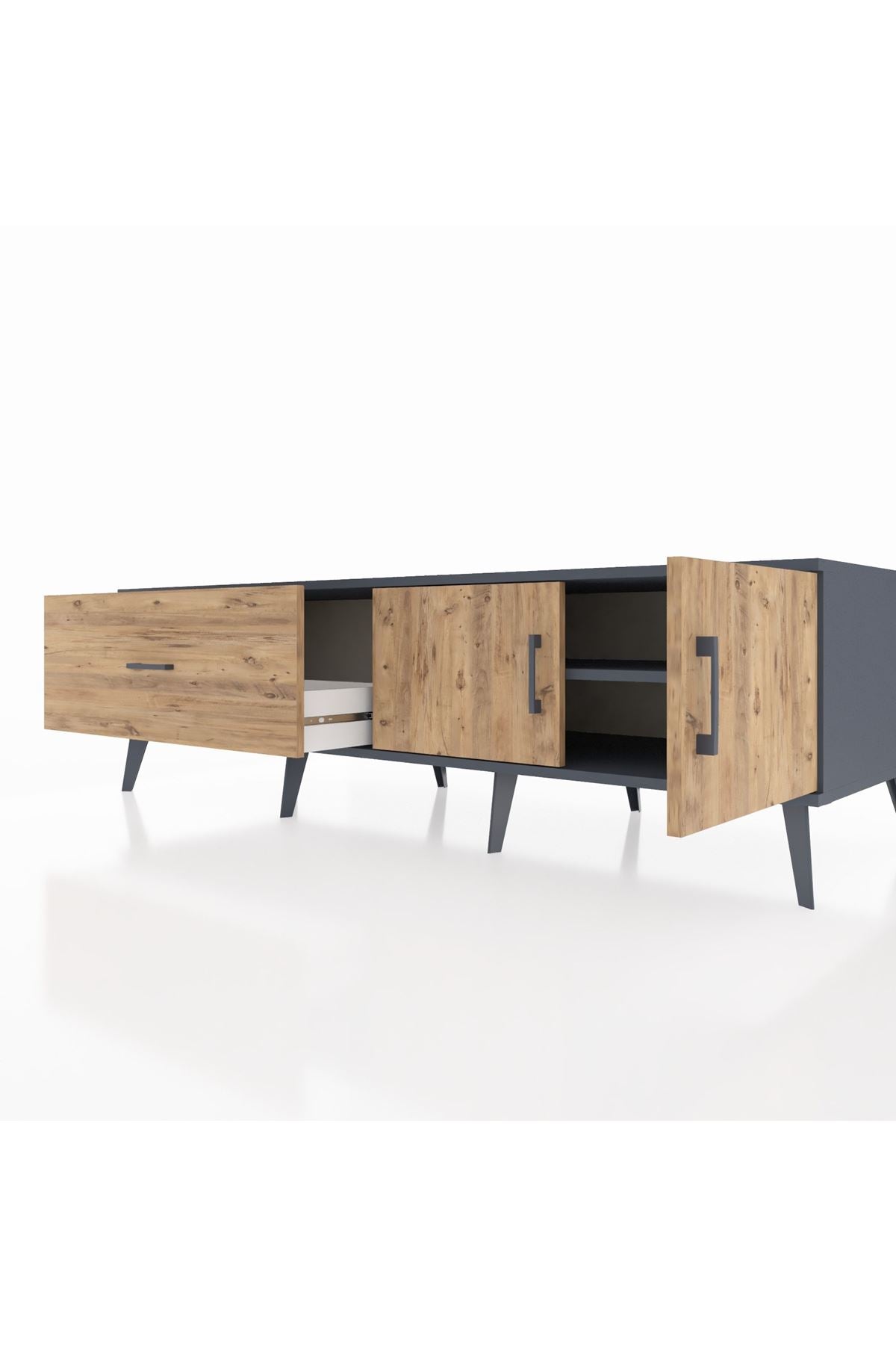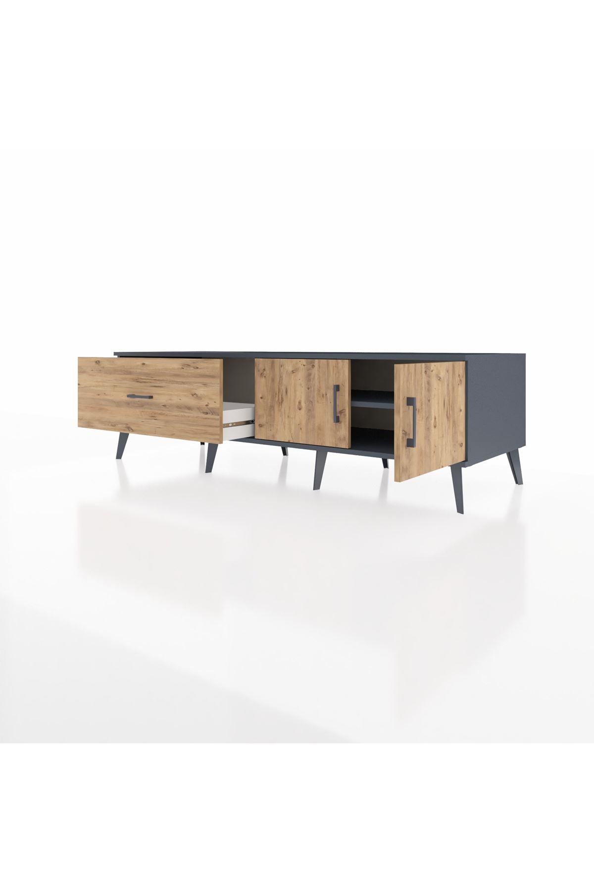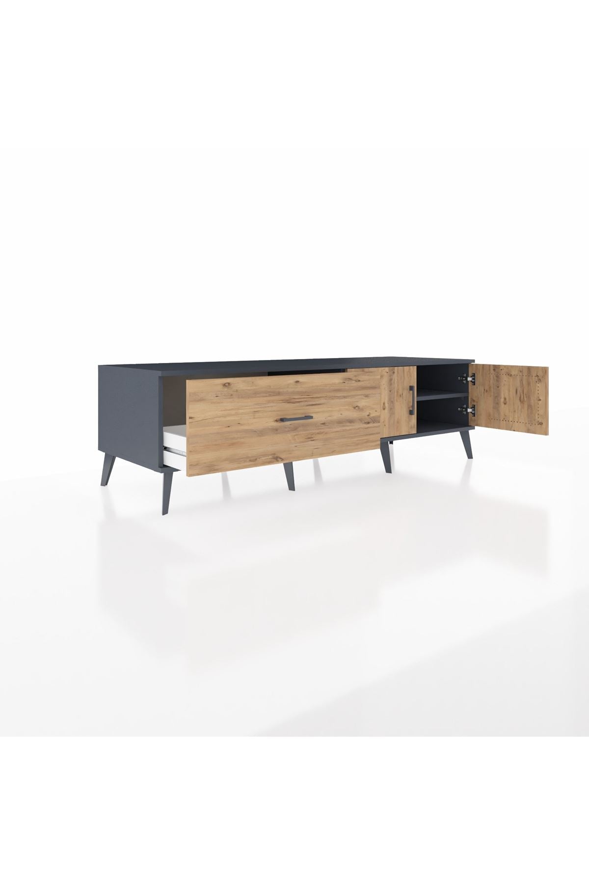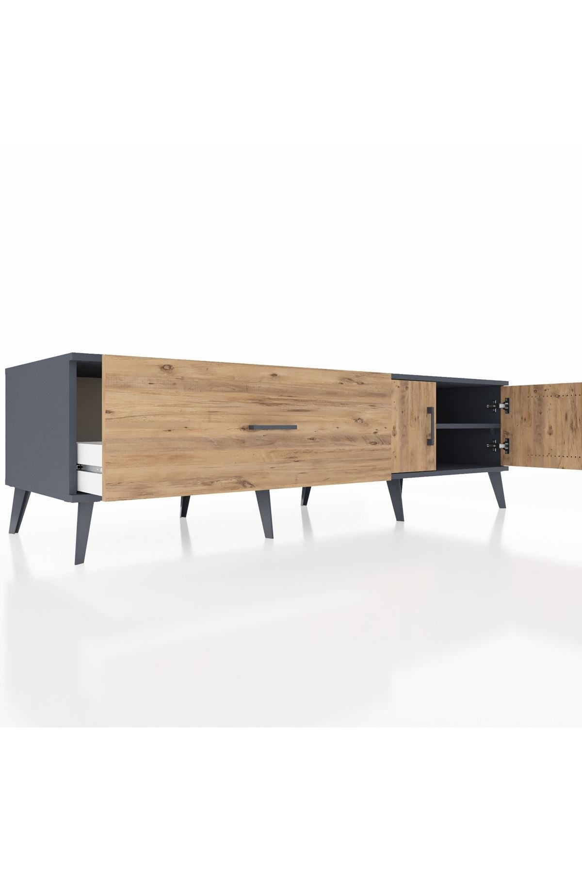 Kronos TV Ünitesi Tek Raflı Tek Çekmeceli 2 Kapaklı 176x59x51 Antrasit-Çam/Çam