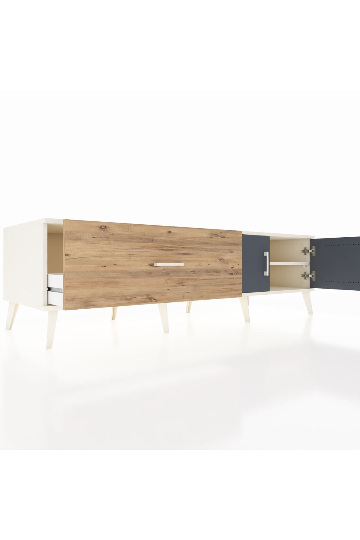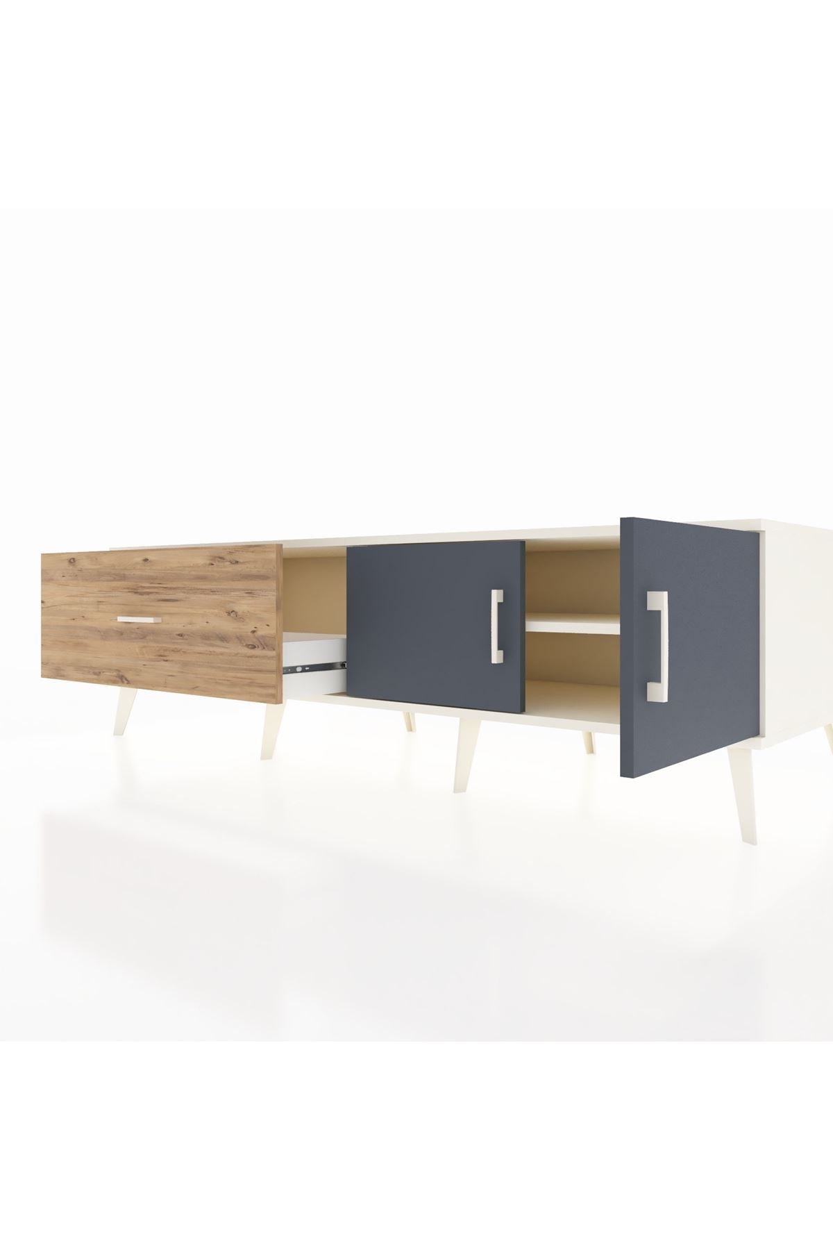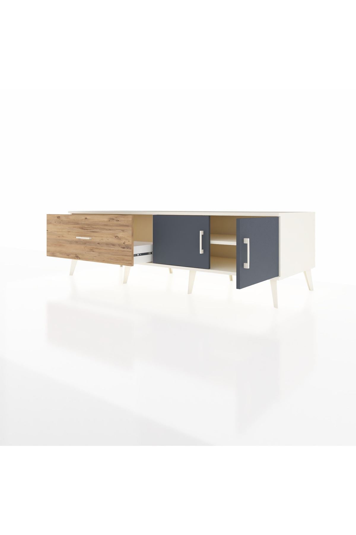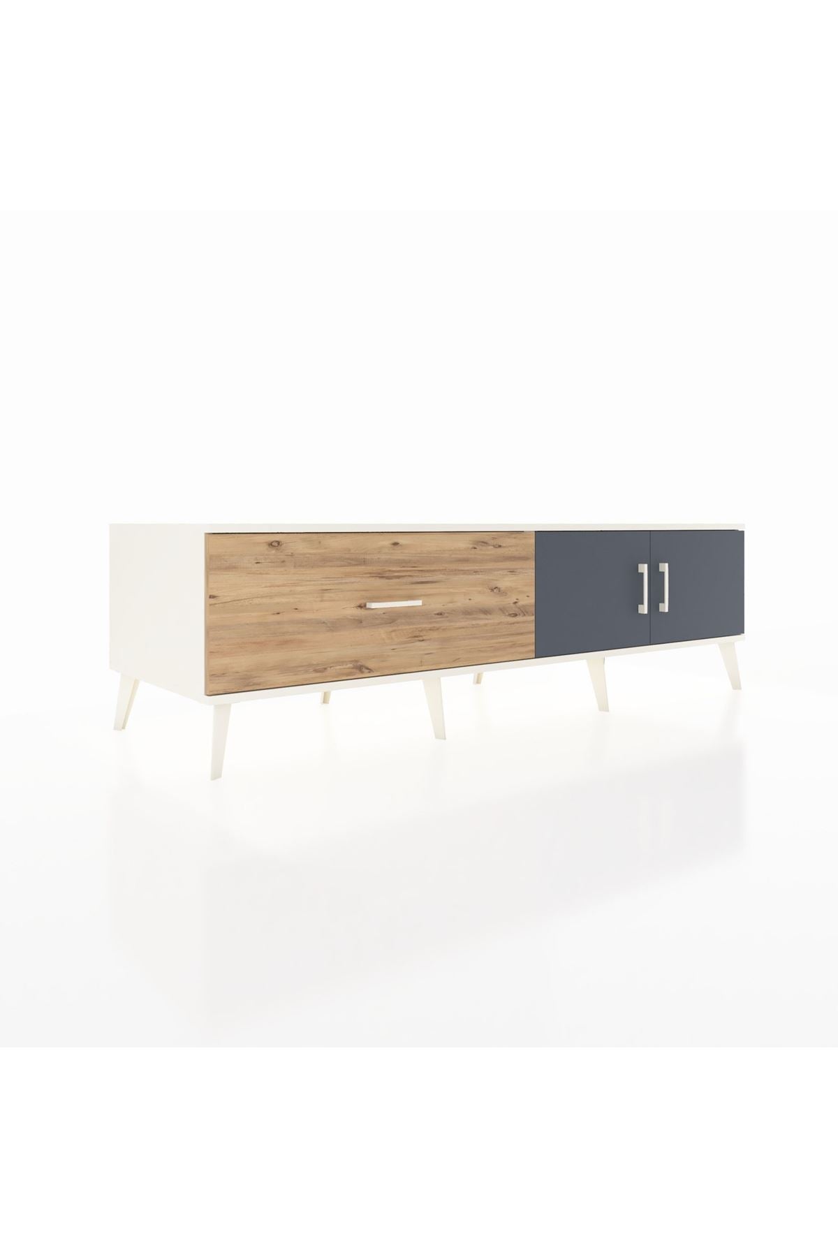 Kronos TV Ünitesi Tek Raflı Tek Çekmeceli 2 Kapaklı 176x59x51 Aytaşı-Antrasit/Çam