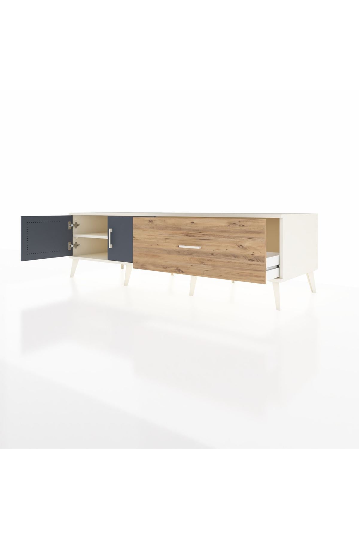 Kronos TV Ünitesi Tek Raflı Tek Çekmeceli 2 Kapaklı 176x59x51 Aytaşı-Antrasit/Çam