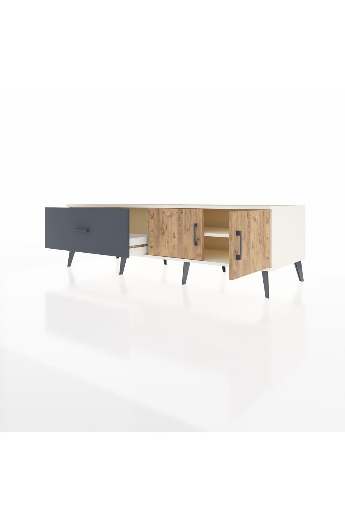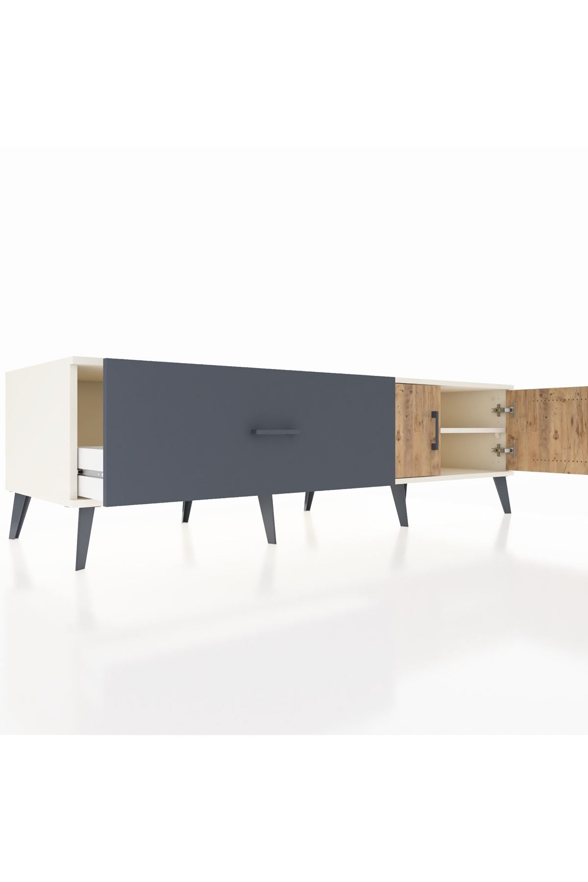 Kronos TV Ünitesi Tek Raflı Tek Çekmeceli 2 Kapaklı 176x59x51 Aytaşı-Çam/Antrasit
