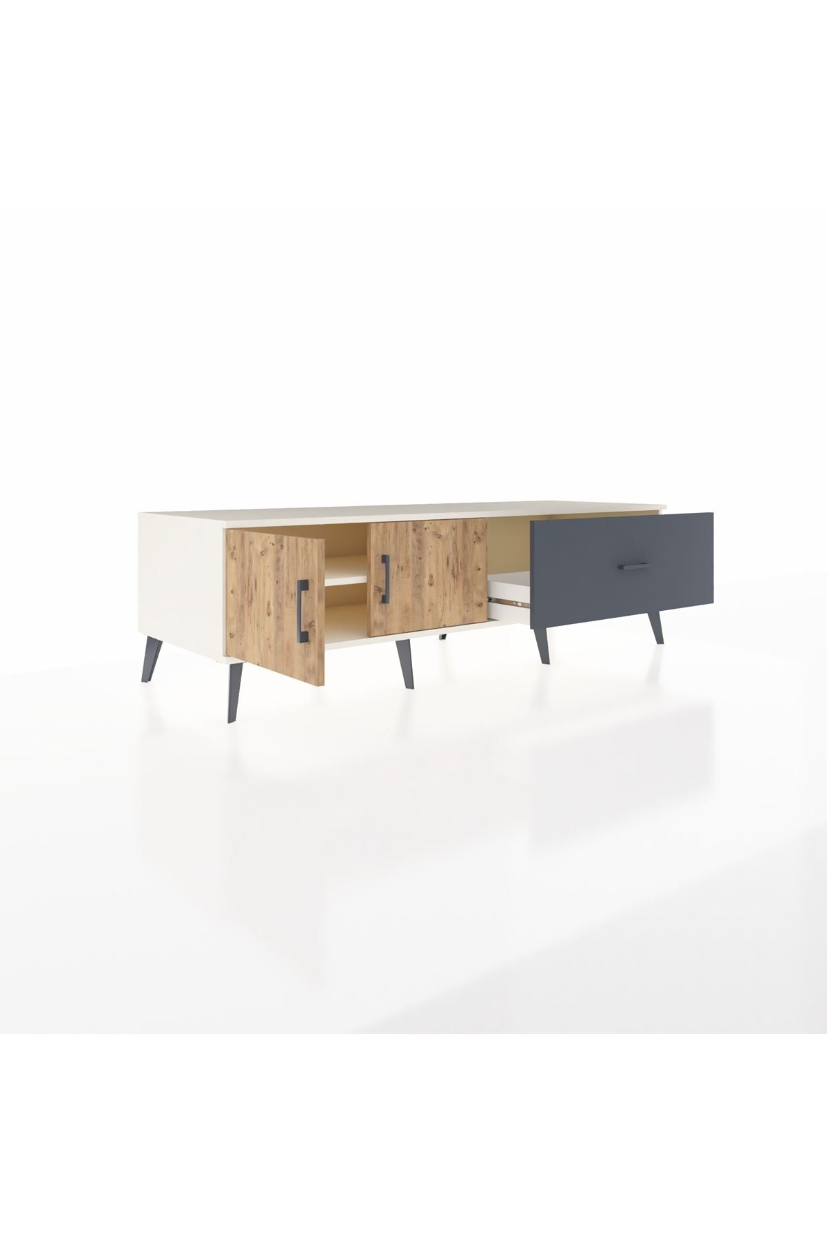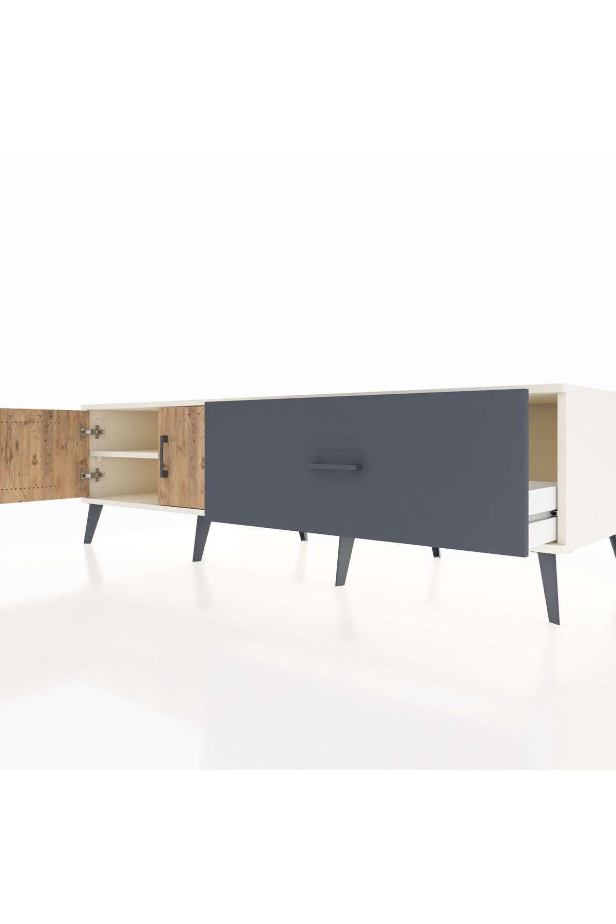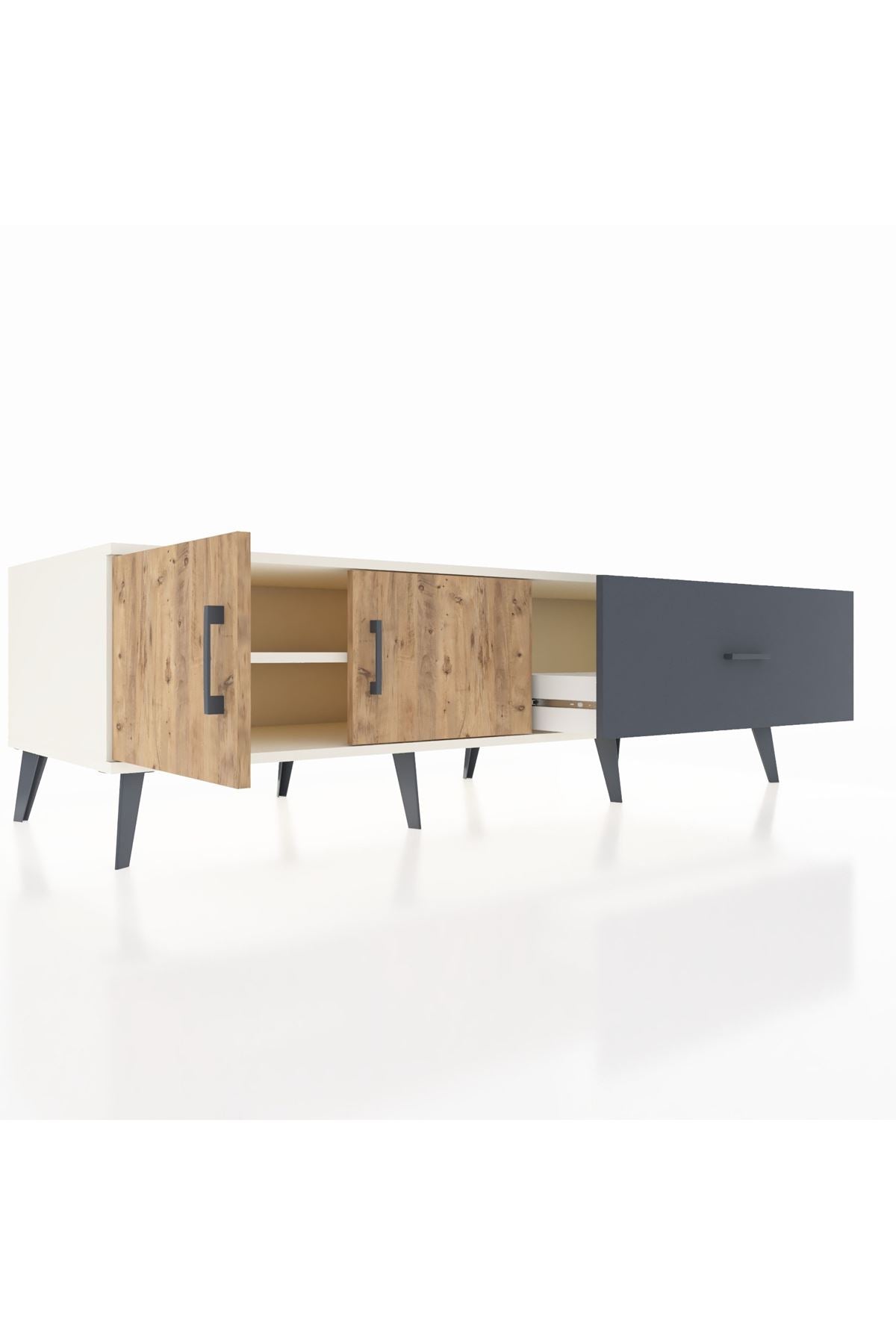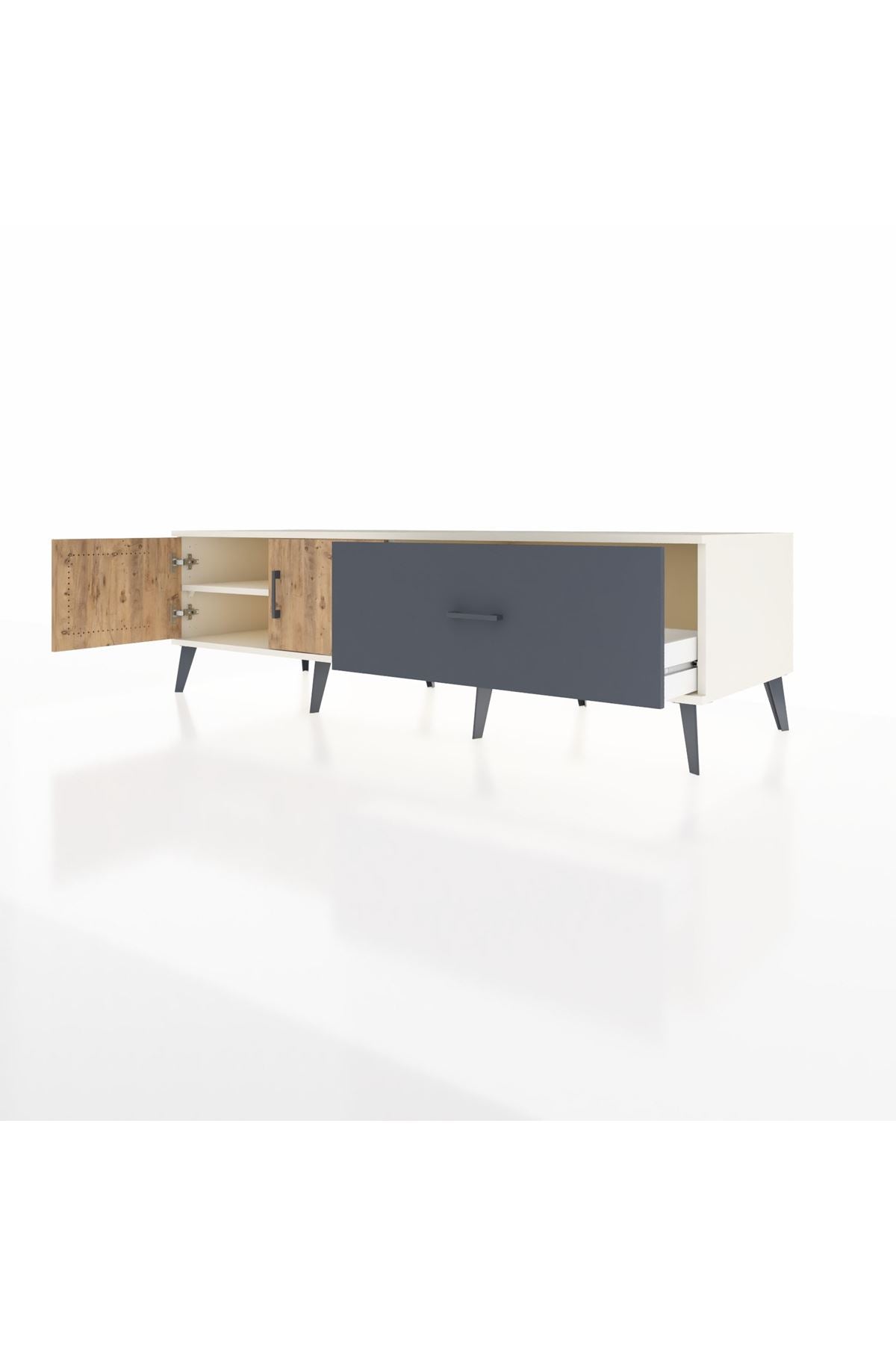Kronos TV Ünitesi Tek Raflı Tek Çekmeceli 2 Kapaklı 176x59x51 Aytaşı-Çam/Antrasit