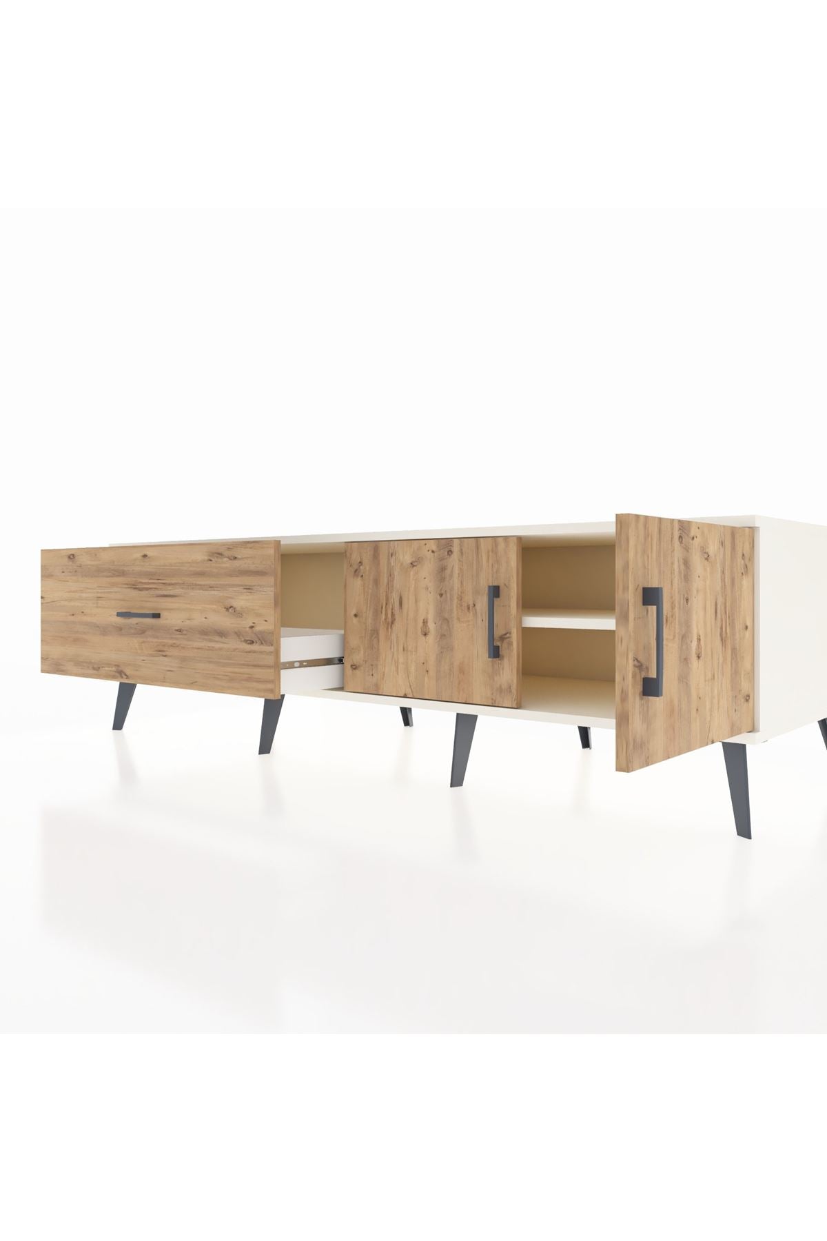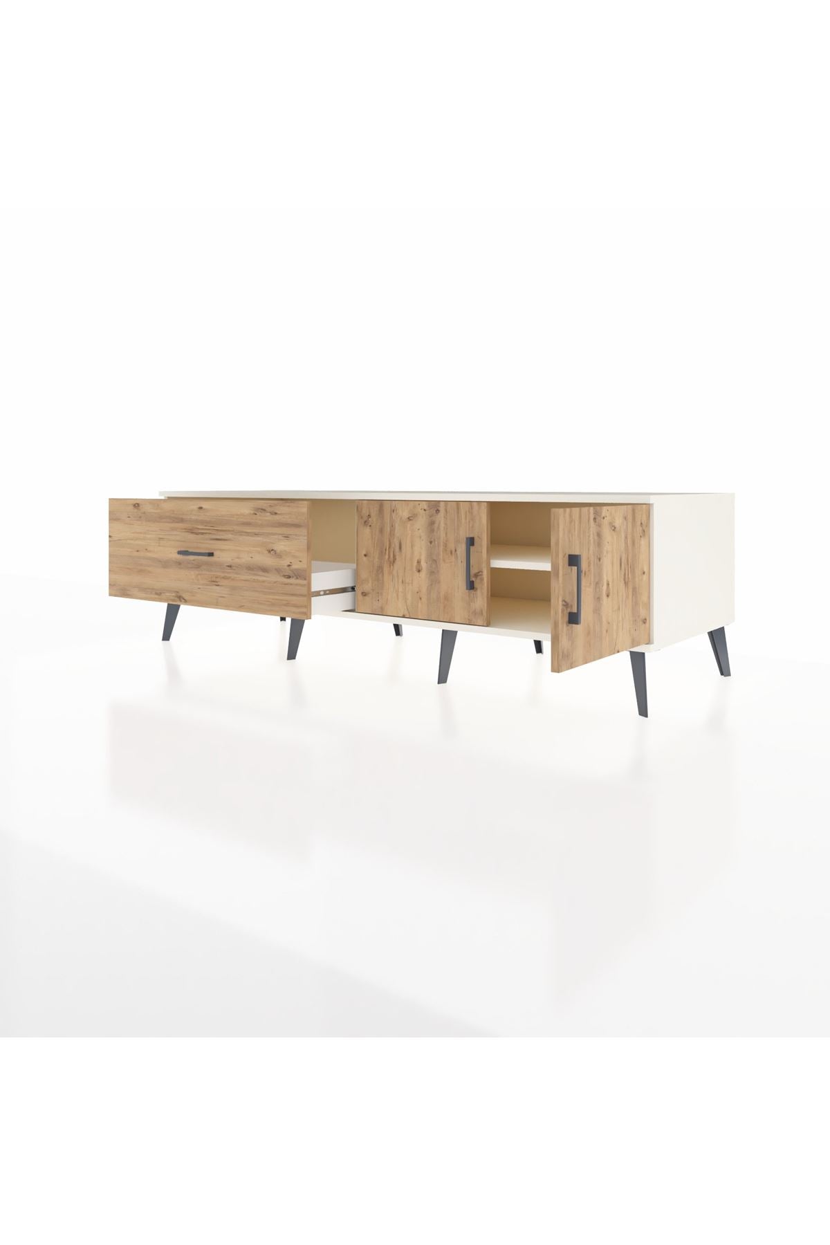 Kronos TV Ünitesi Tek Raflı Tek Çekmeceli 2 Kapaklı 176x59x51 Aytaşı-Çam/Çam