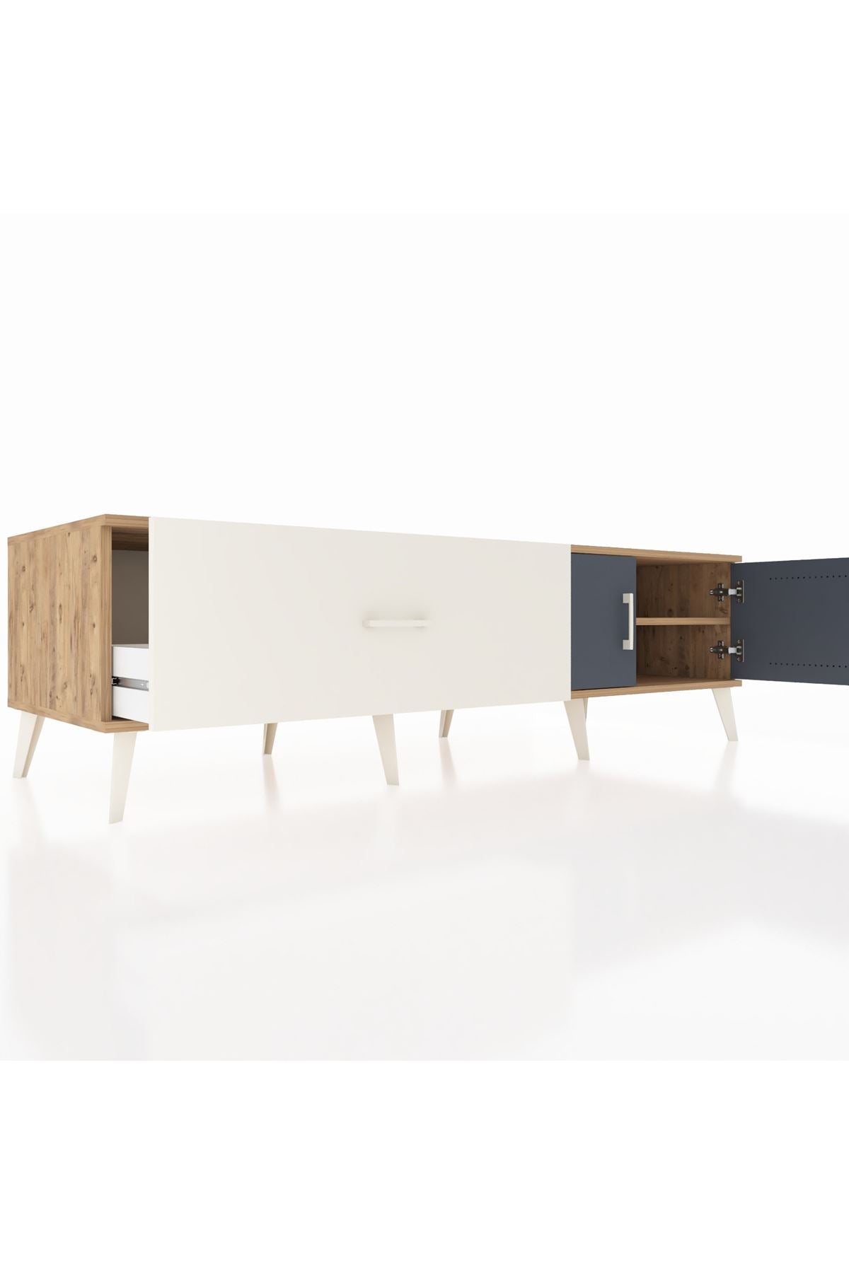 Kronos TV Ünitesi Tek Raflı Tek Çekmeceli 2 Kapaklı 176x59x51 Çam-Antrasit/Aytaşı