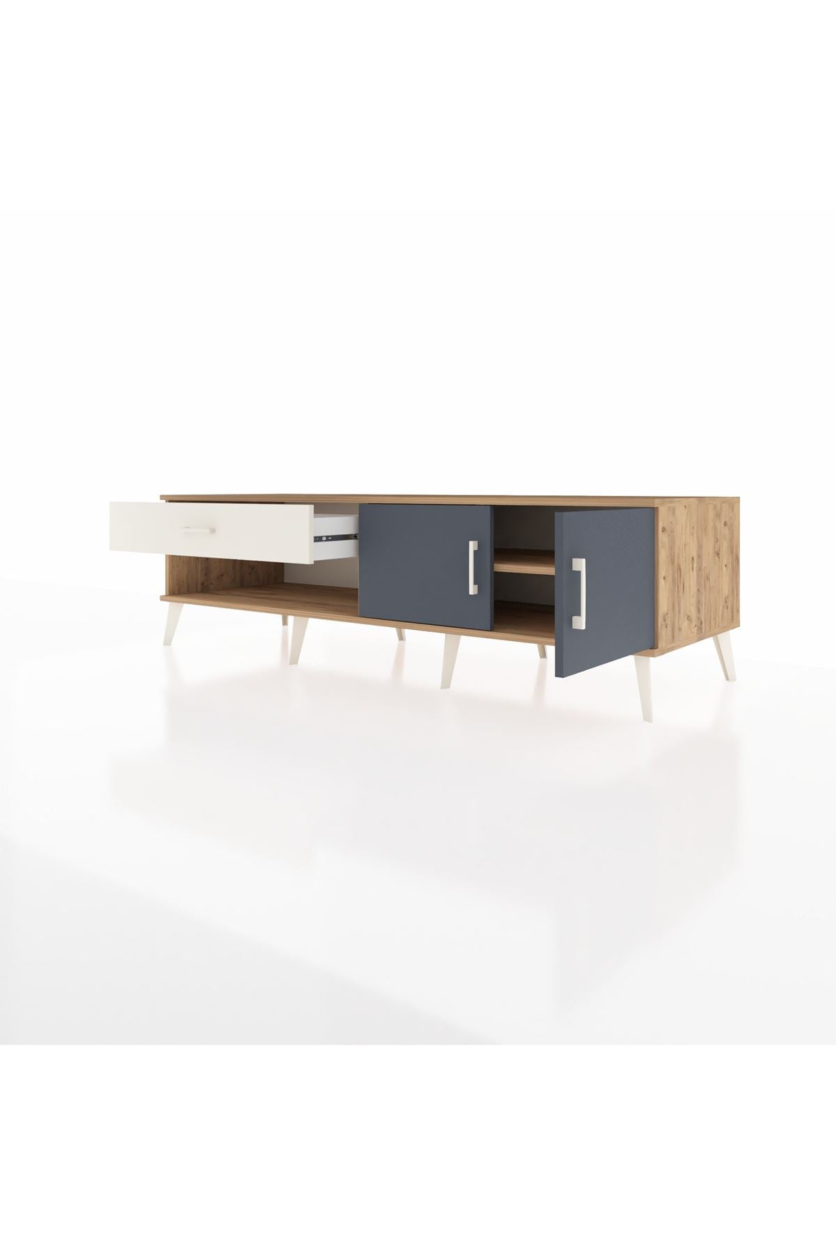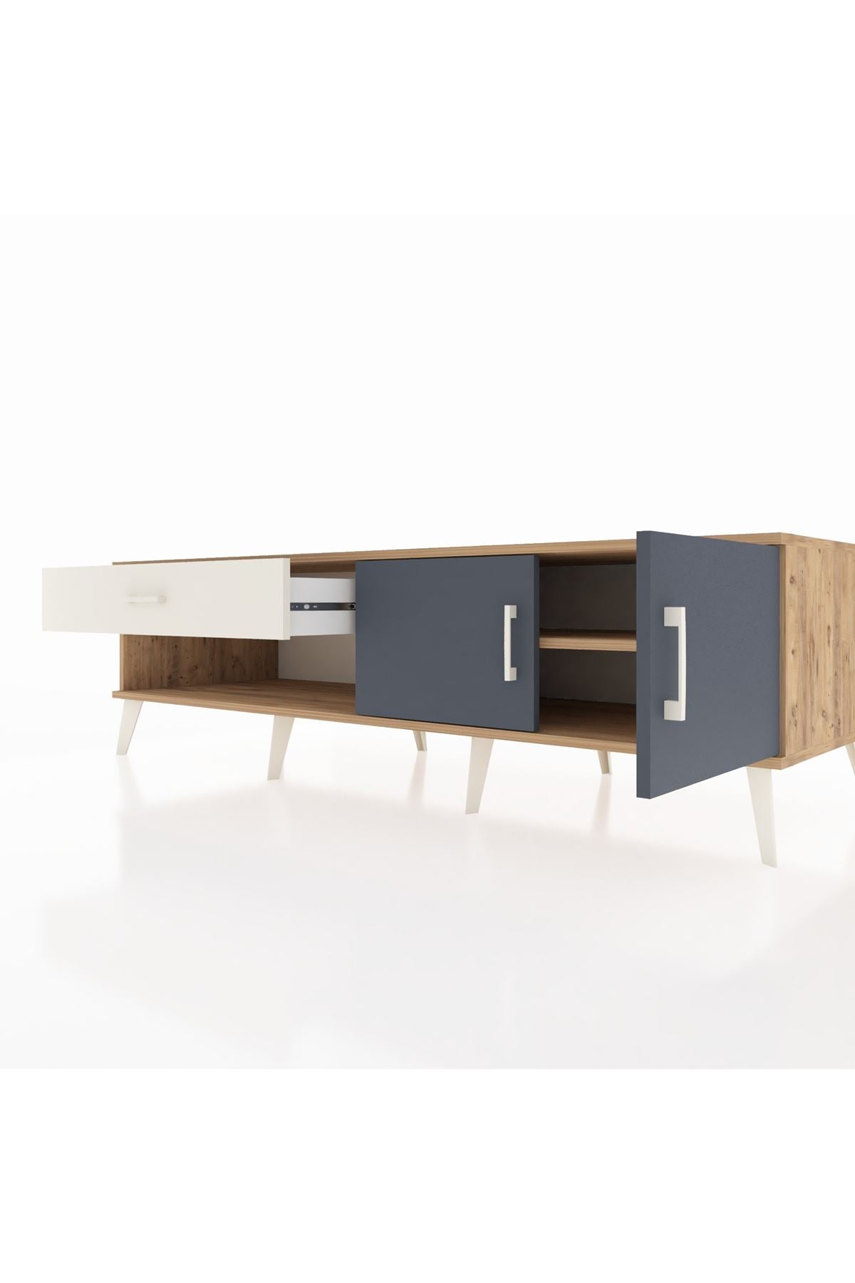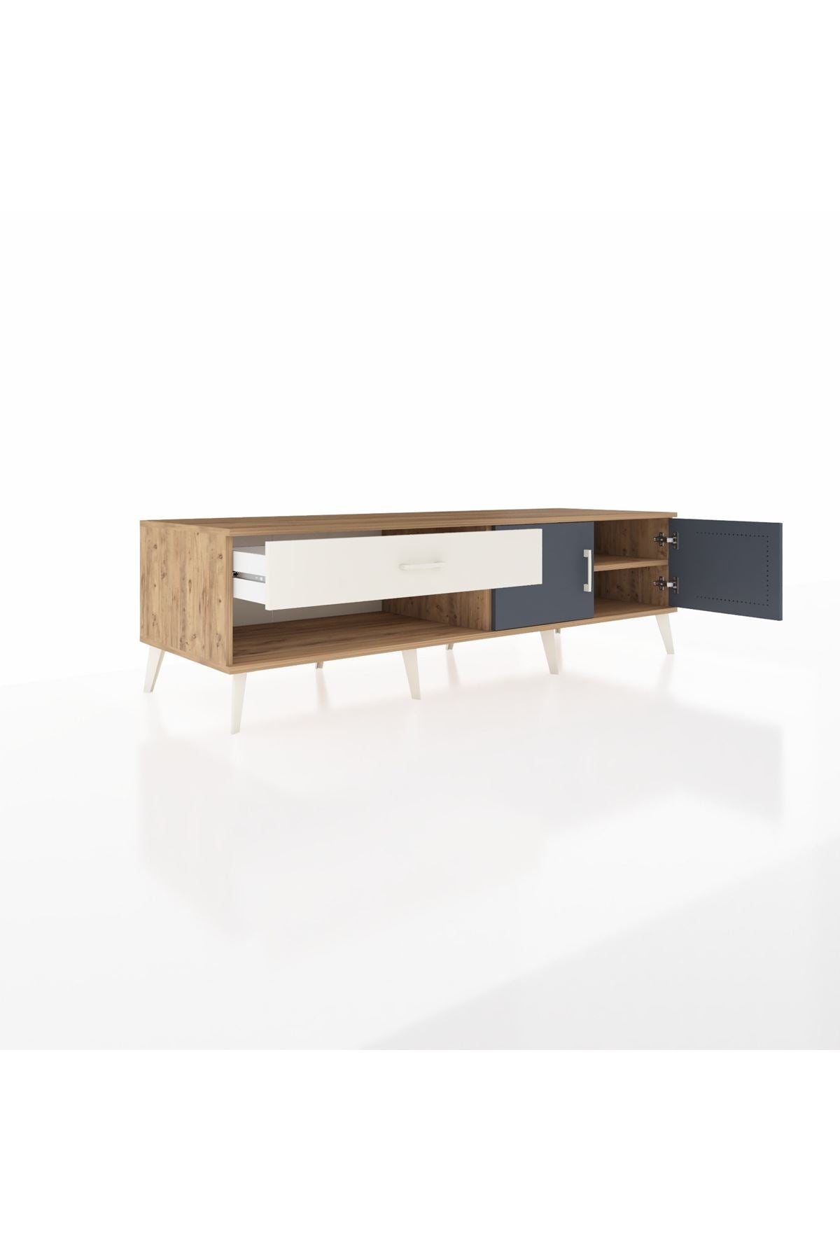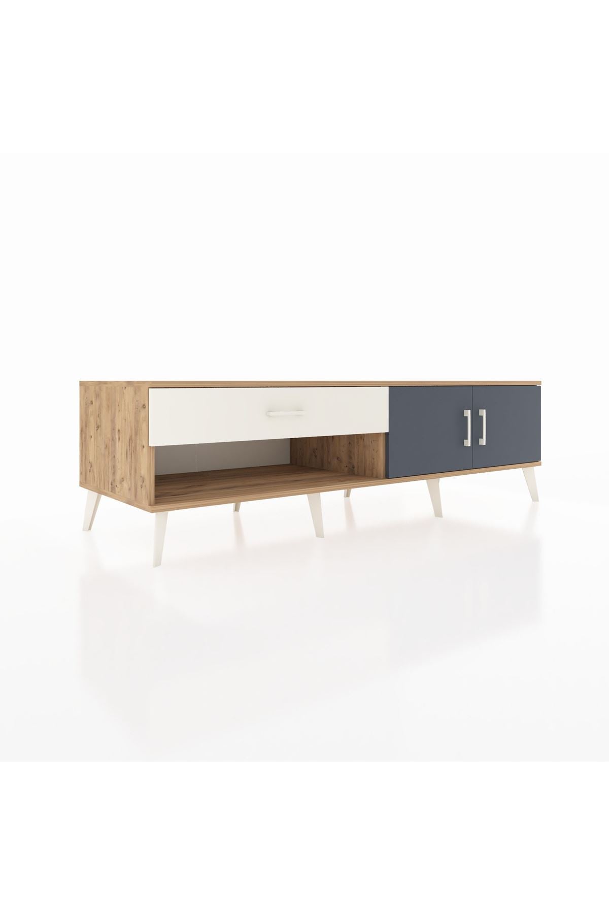 Kronos TV Ünitesi Tek Raflı Tek Çekmeceli 2 Kapaklı 176x59x51 Çam-Antrasit/Aytaşı