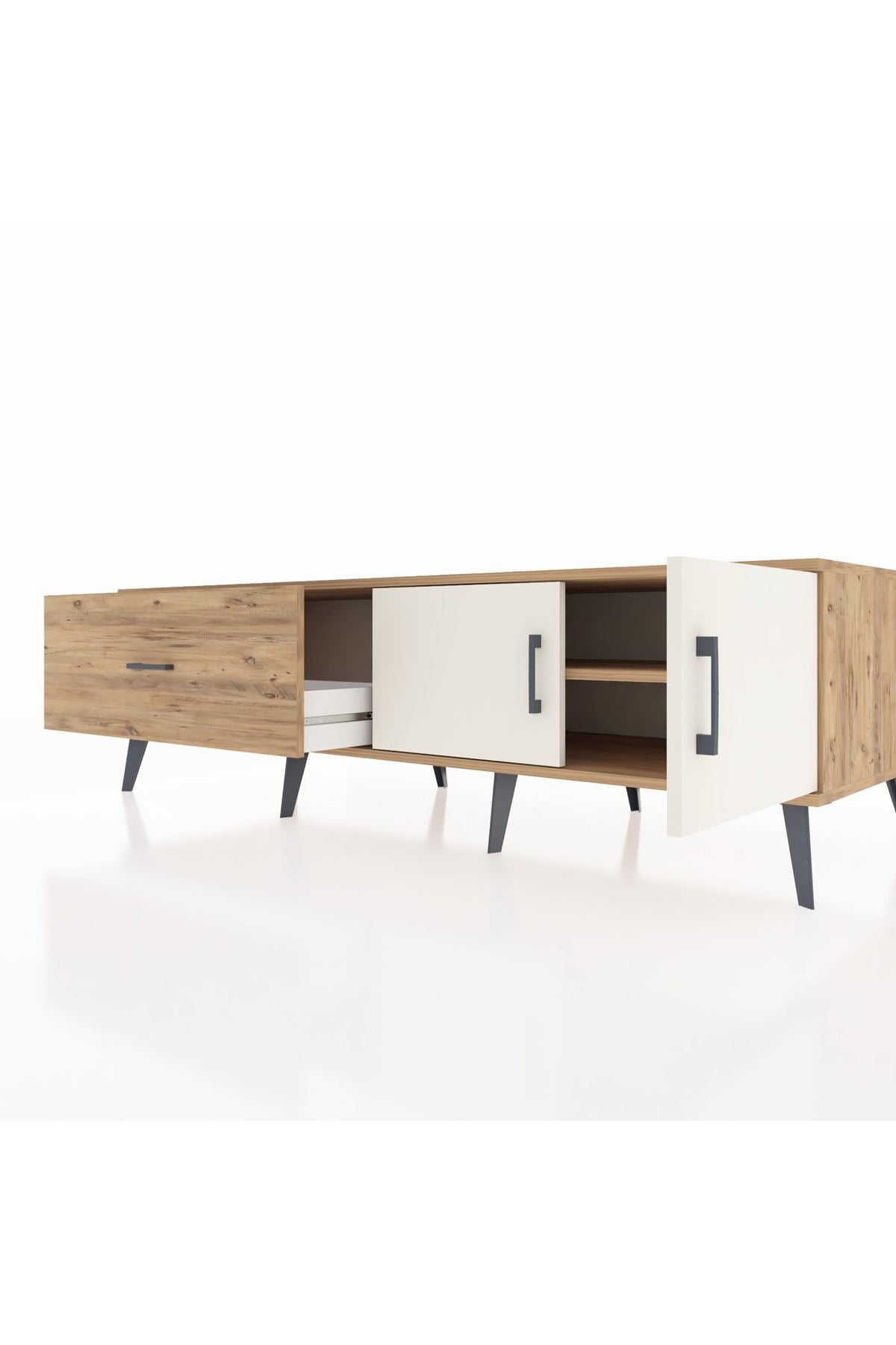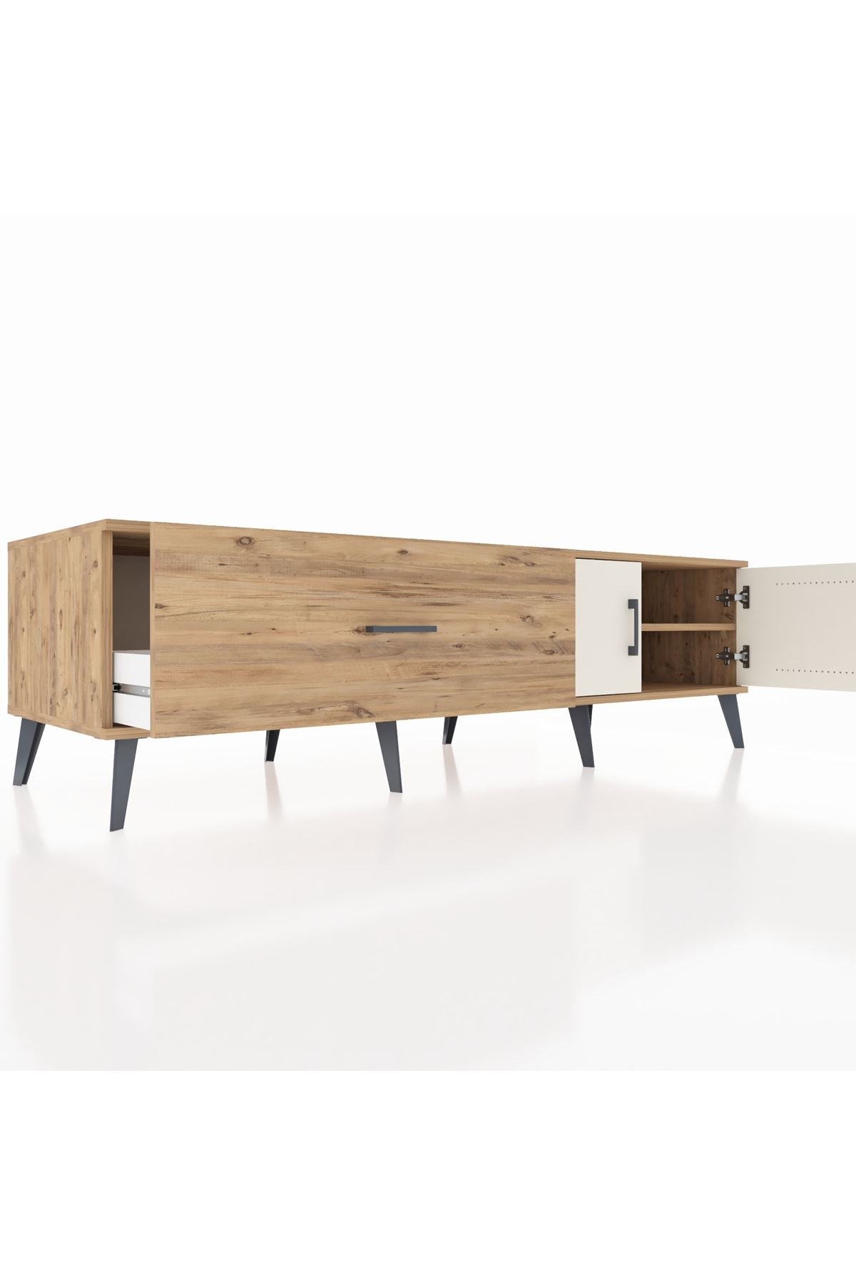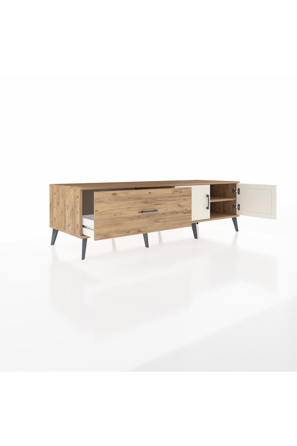 Kronos TV Ünitesi Tek Raflı Tek Çekmeceli 2 Kapaklı 176x59x51 Çam-Aytaşı/Çam