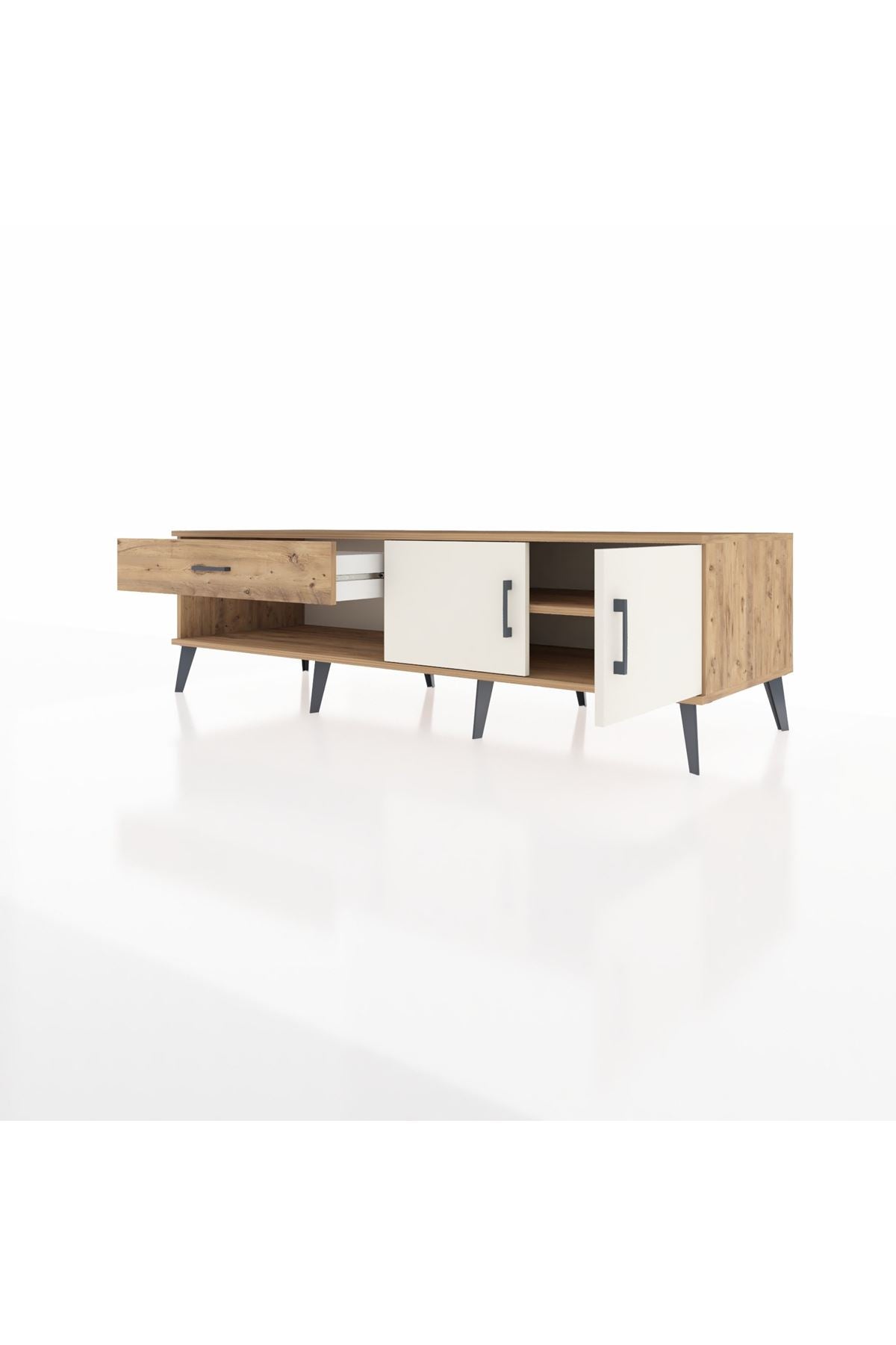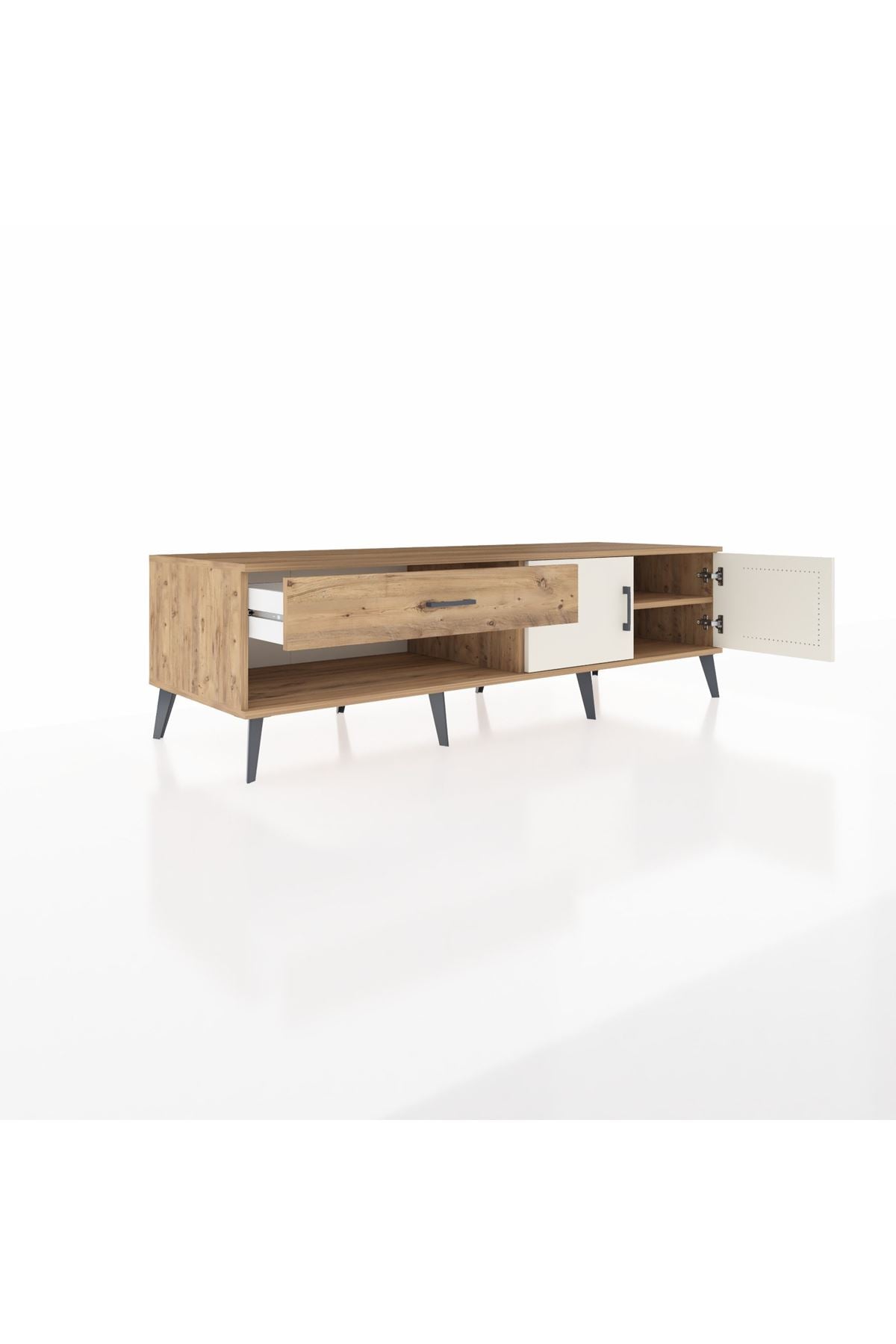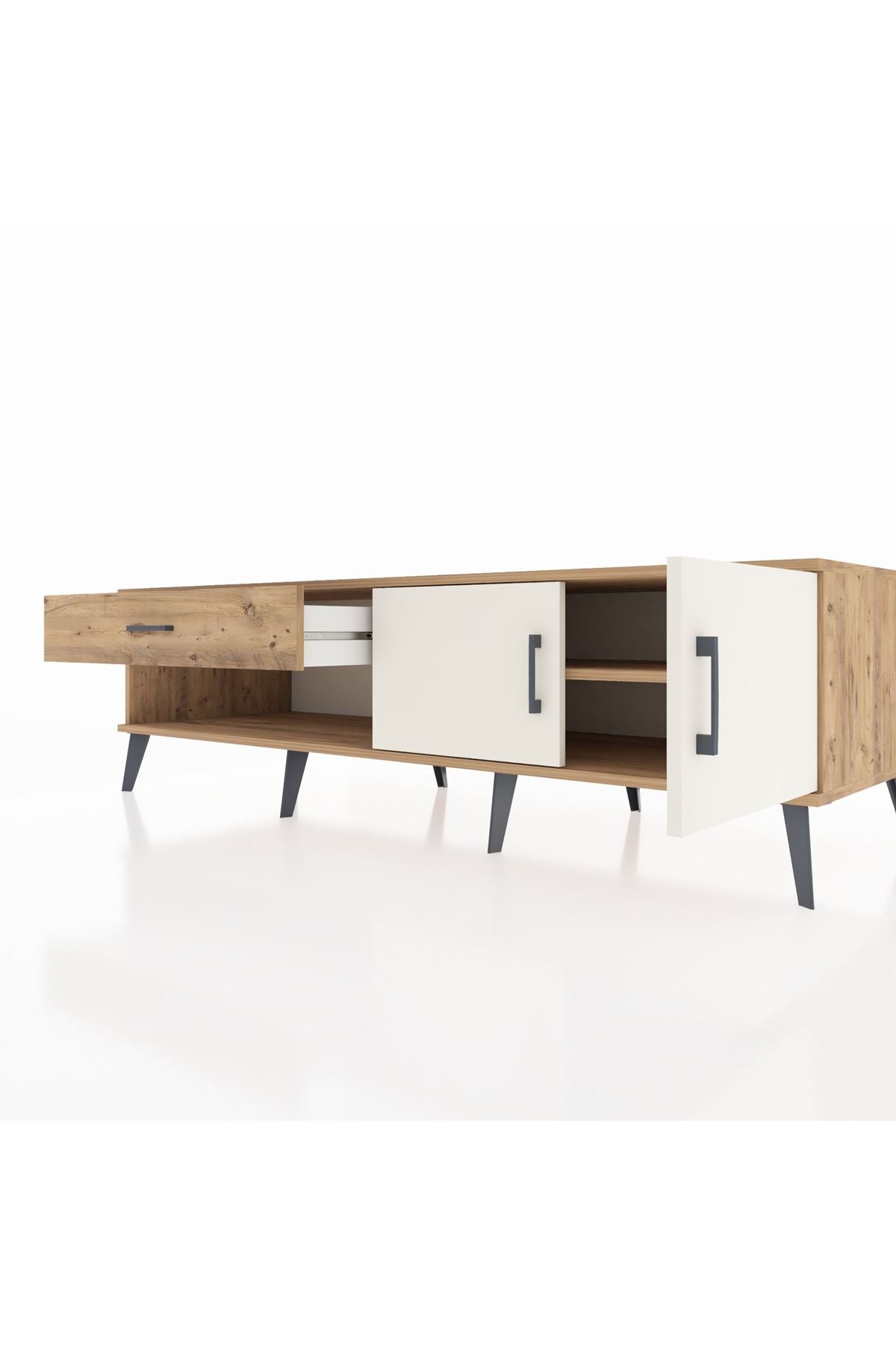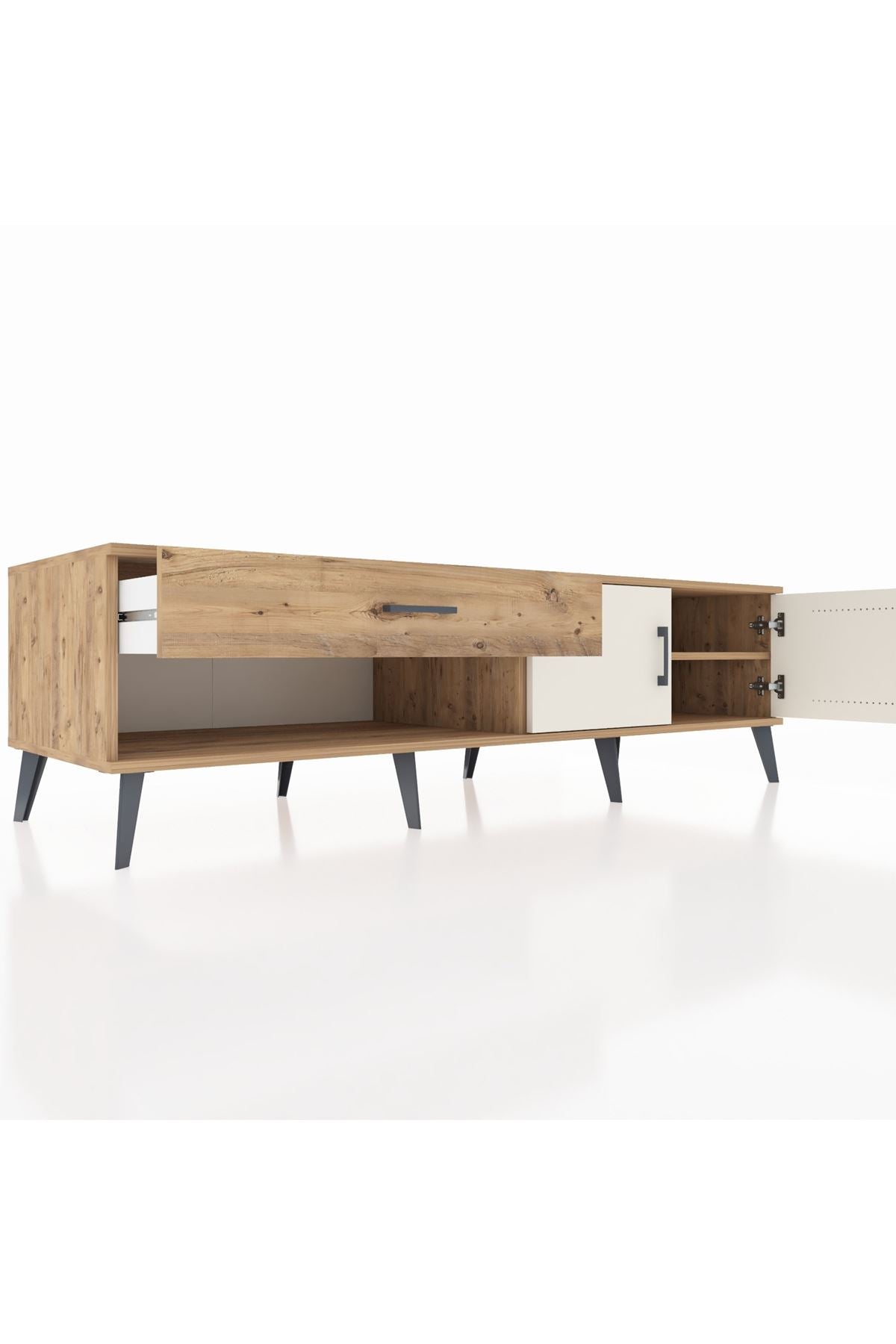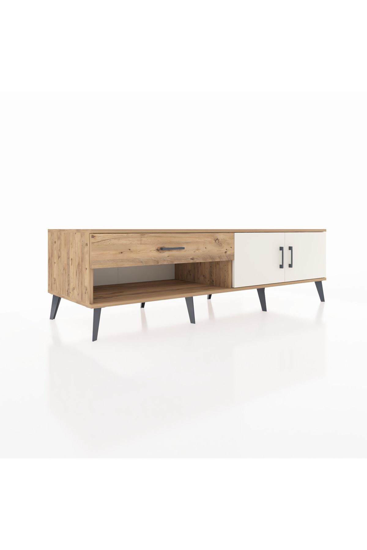 Kronos TV Ünitesi Tek Raflı Tek Çekmeceli 2 Kapaklı 176x59x51 Çam-Aytaşı/Çam