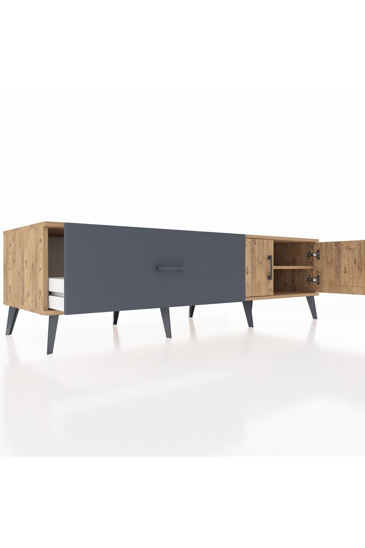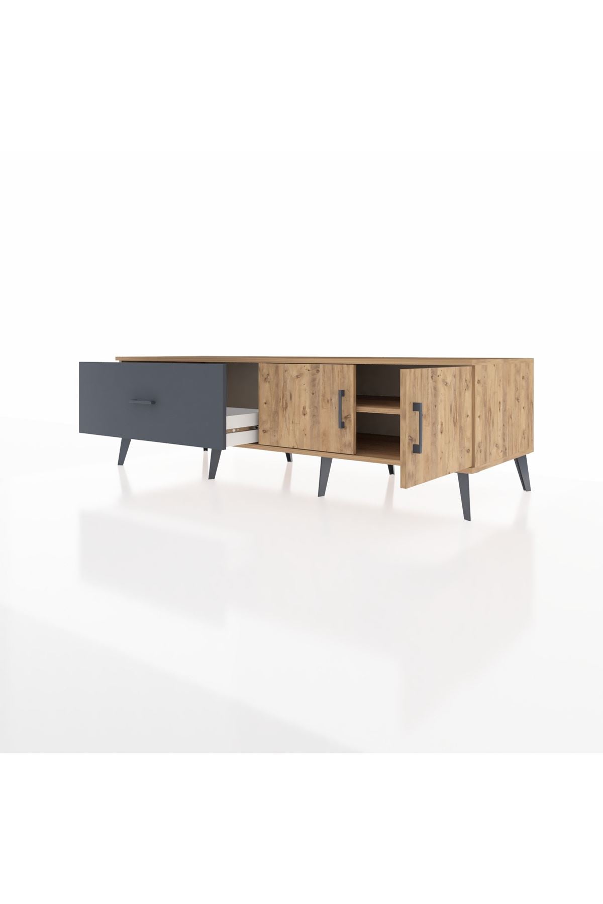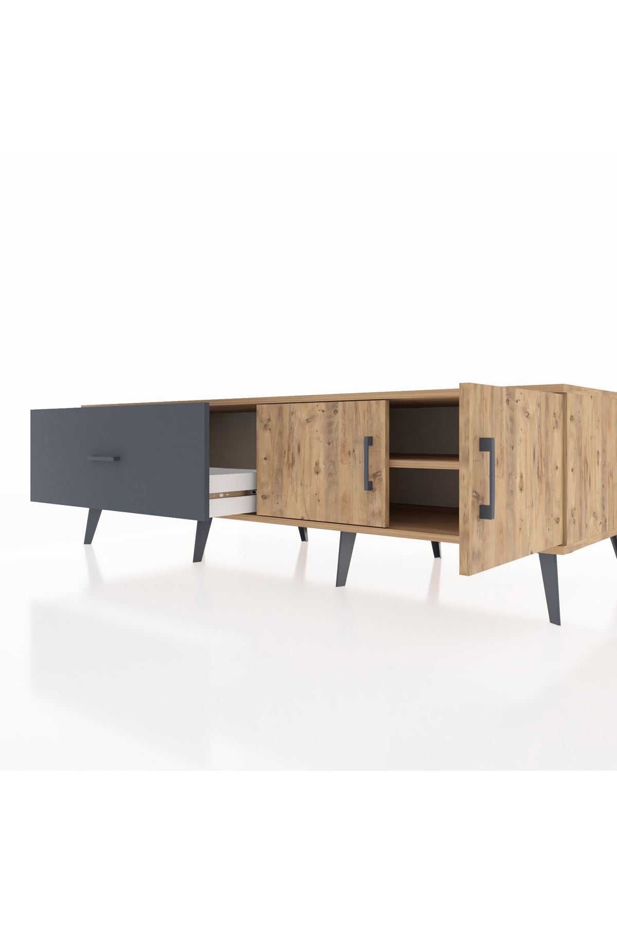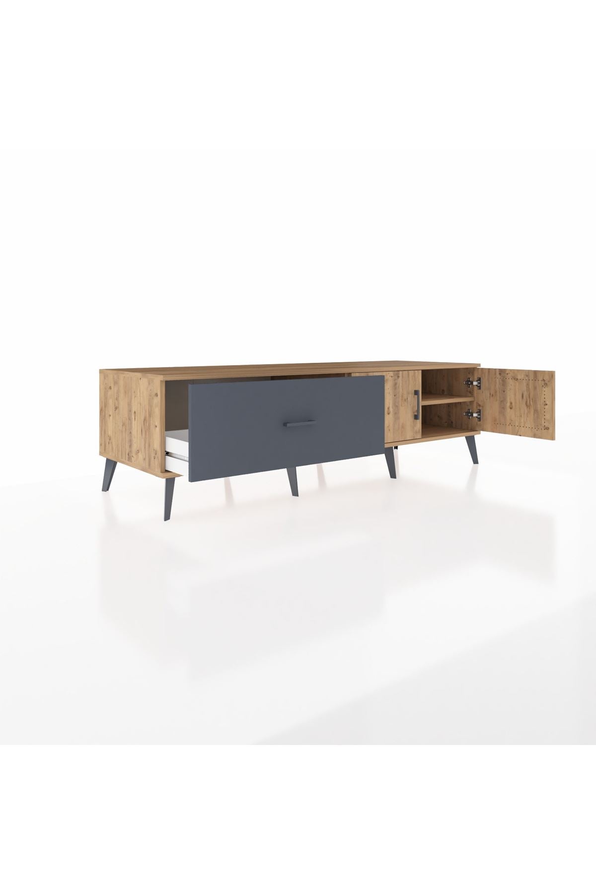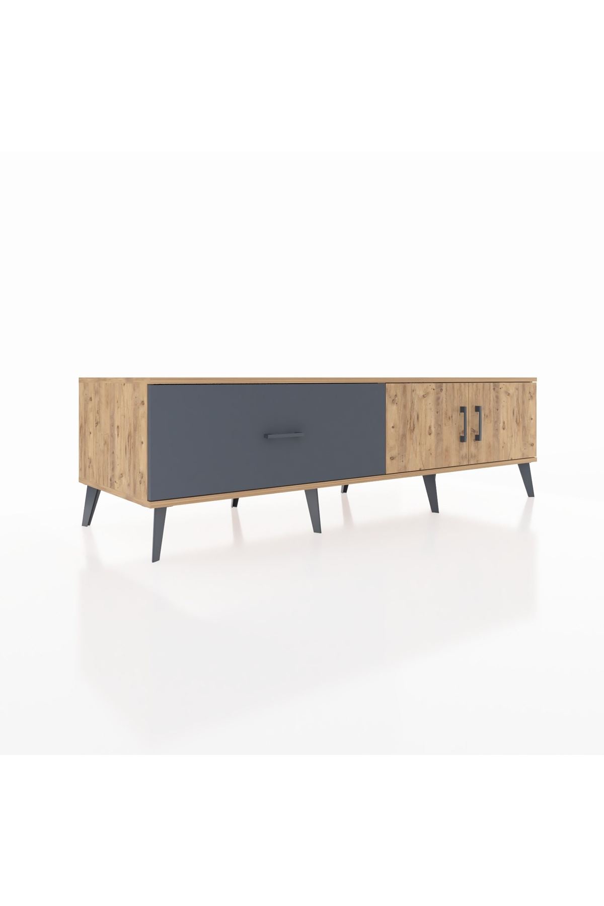 Kronos TV Ünitesi Tek Raflı Tek Çekmeceli 2 Kapaklı 176x59x51 Çam-Çam/Antrasit