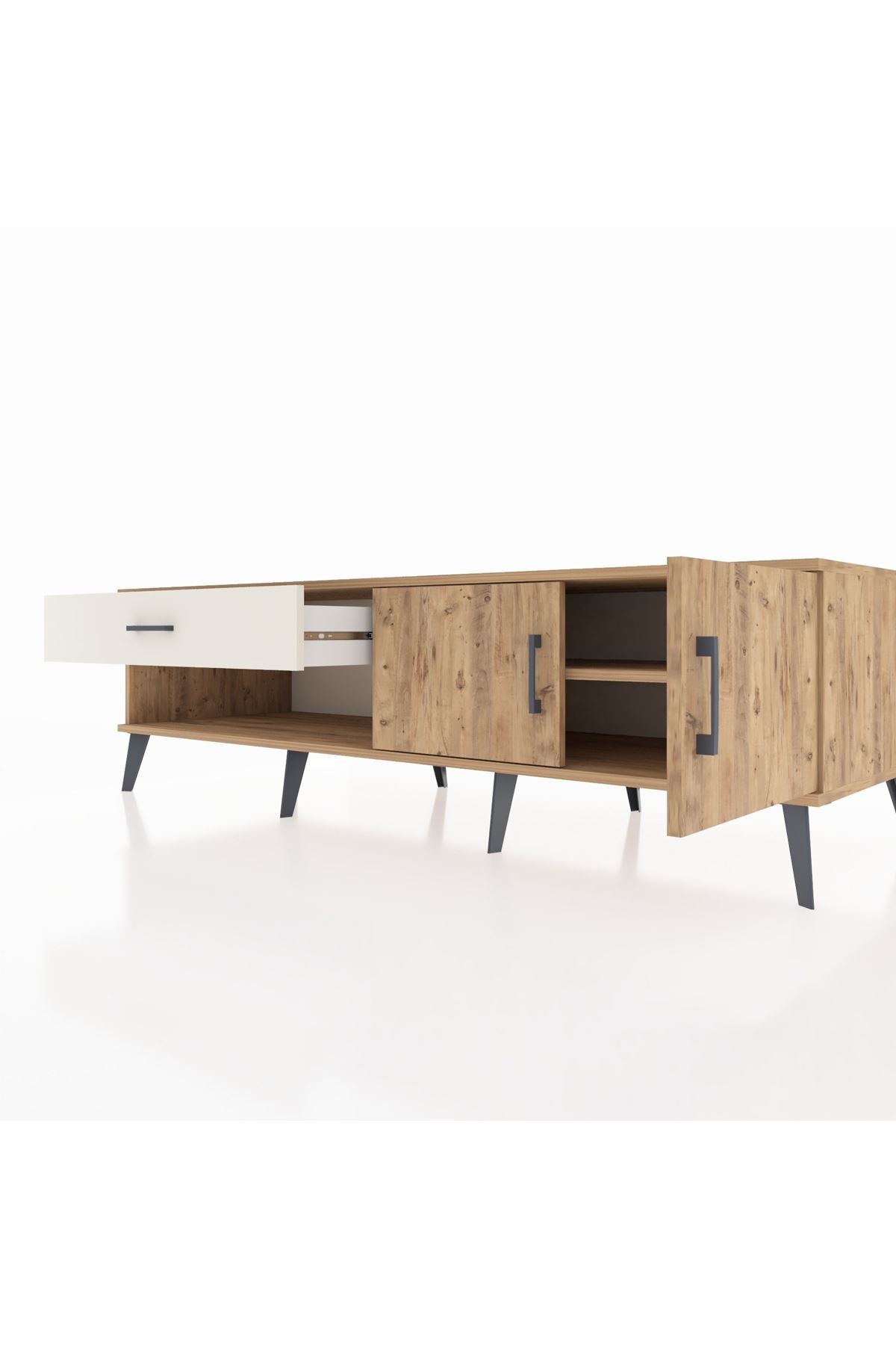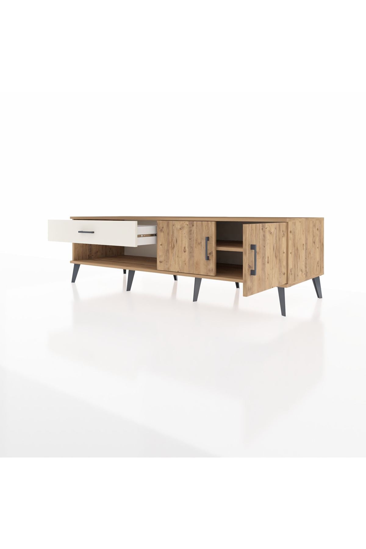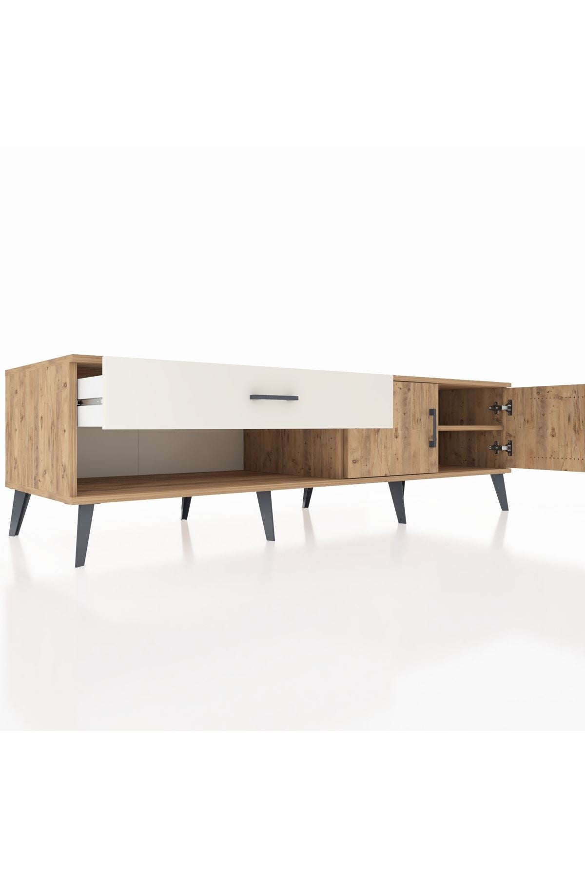 Kronos TV Ünitesi Tek Raflı Tek Çekmeceli 2 Kapaklı 176x59x51 Çam-Çam/Aytaşı