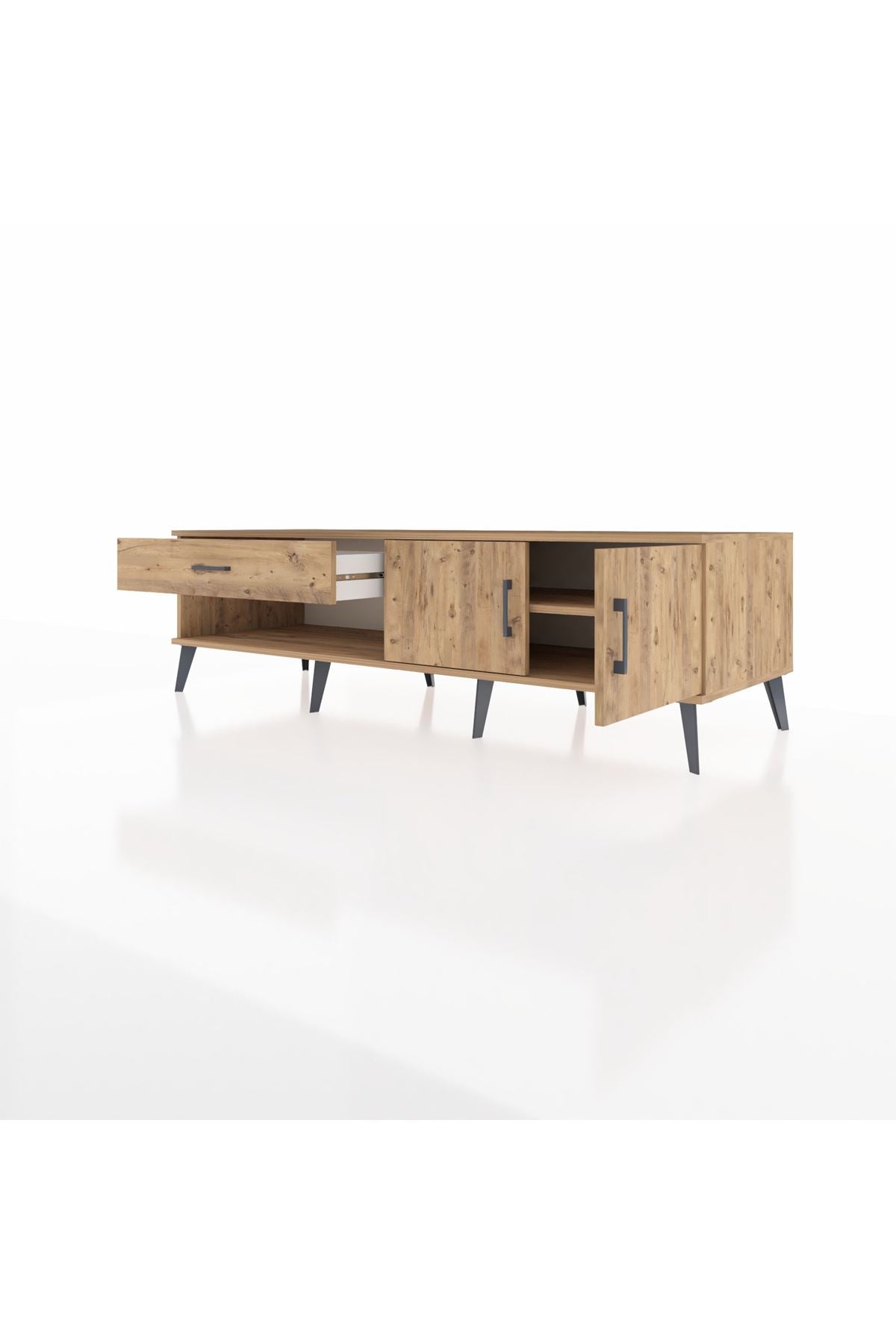 Kronos TV Ünitesi Tek Raflı Tek Çekmeceli 2 Kapaklı 176x59x51 Çam-Çam/Çam