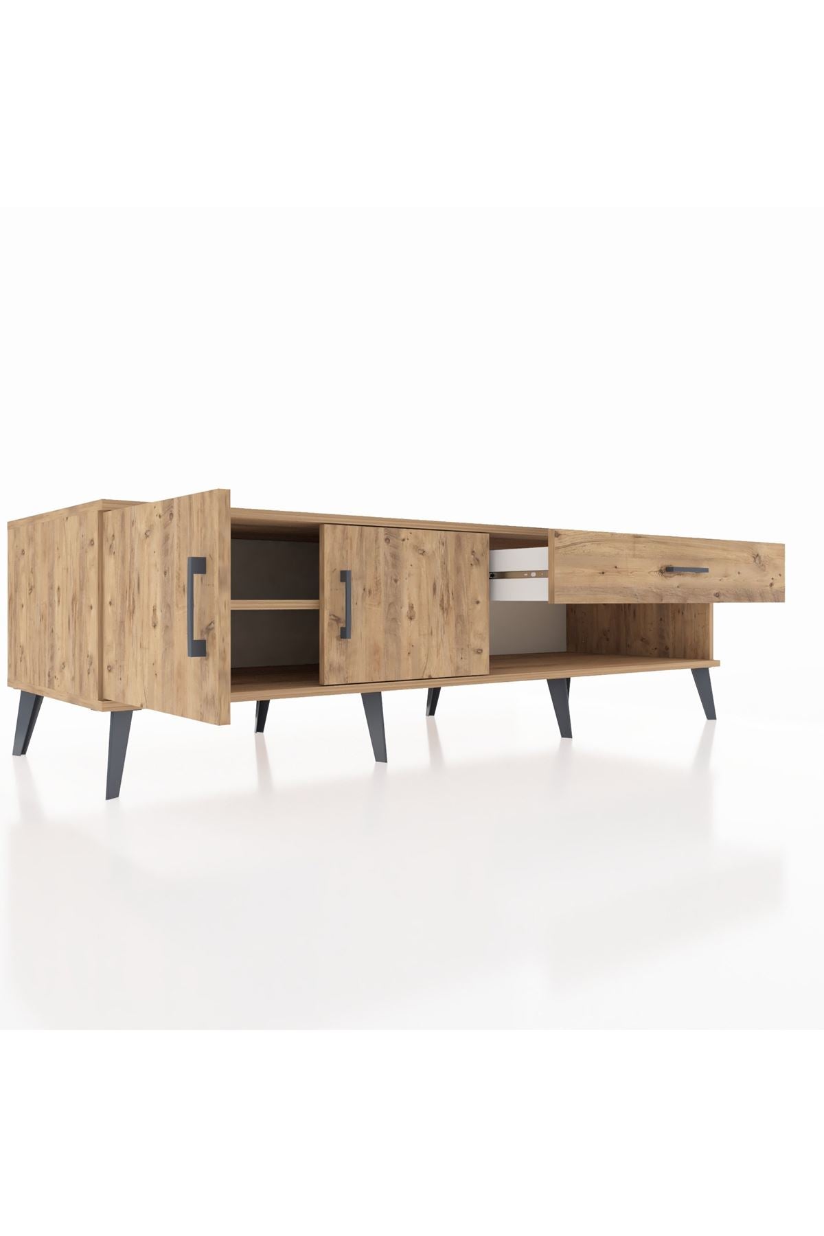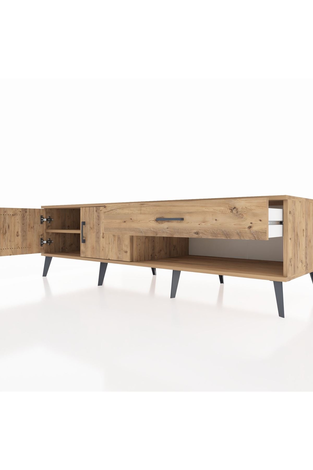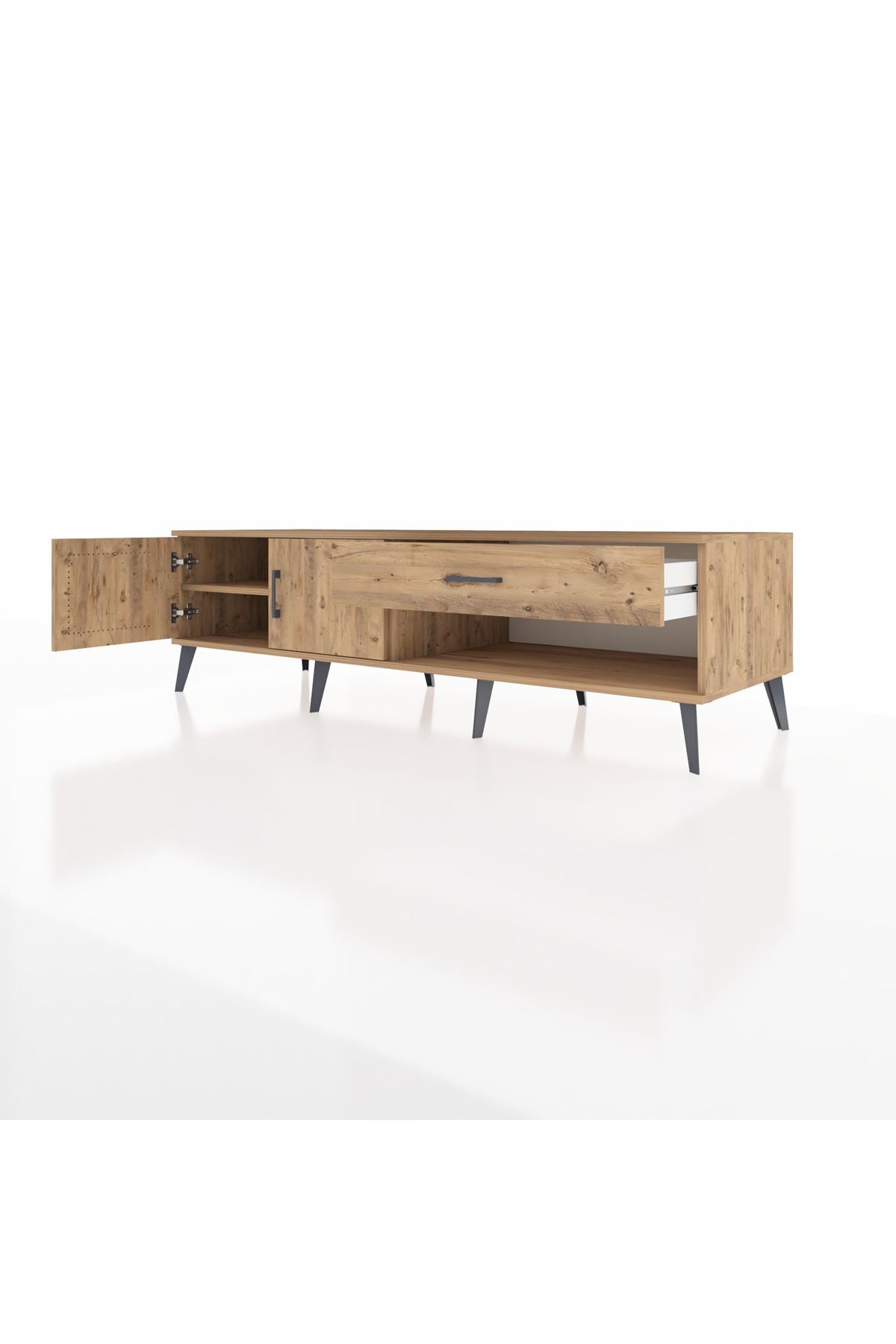 Kronos TV Ünitesi Tek Raflı Tek Çekmeceli 2 Kapaklı 176x59x51 Çam-Çam/Çam