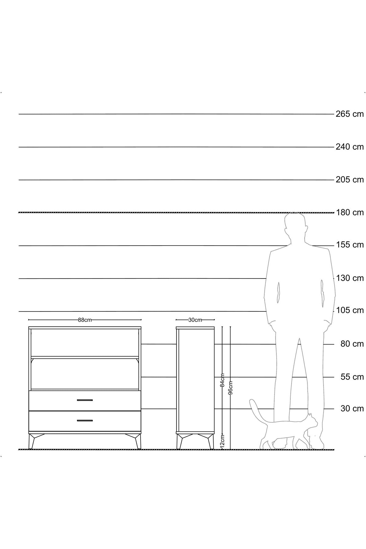 Arges Şifonyer 2 Raflı 2 Çekmeceli 88x30x96 Antrasit-Çam