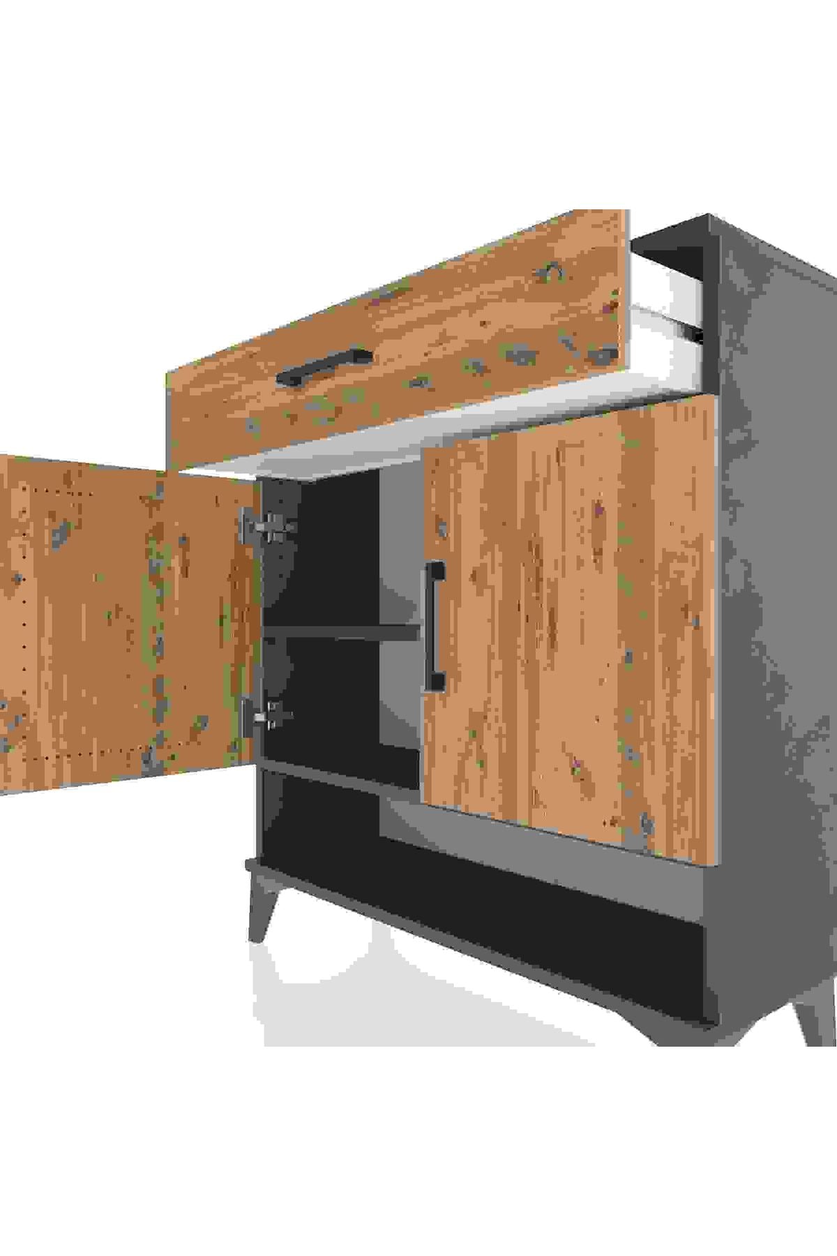 Arges Şifonyer 2 Raflı Tek Çekmeceli 2 Kapaklı 88x30x96 Antrasit-Çam