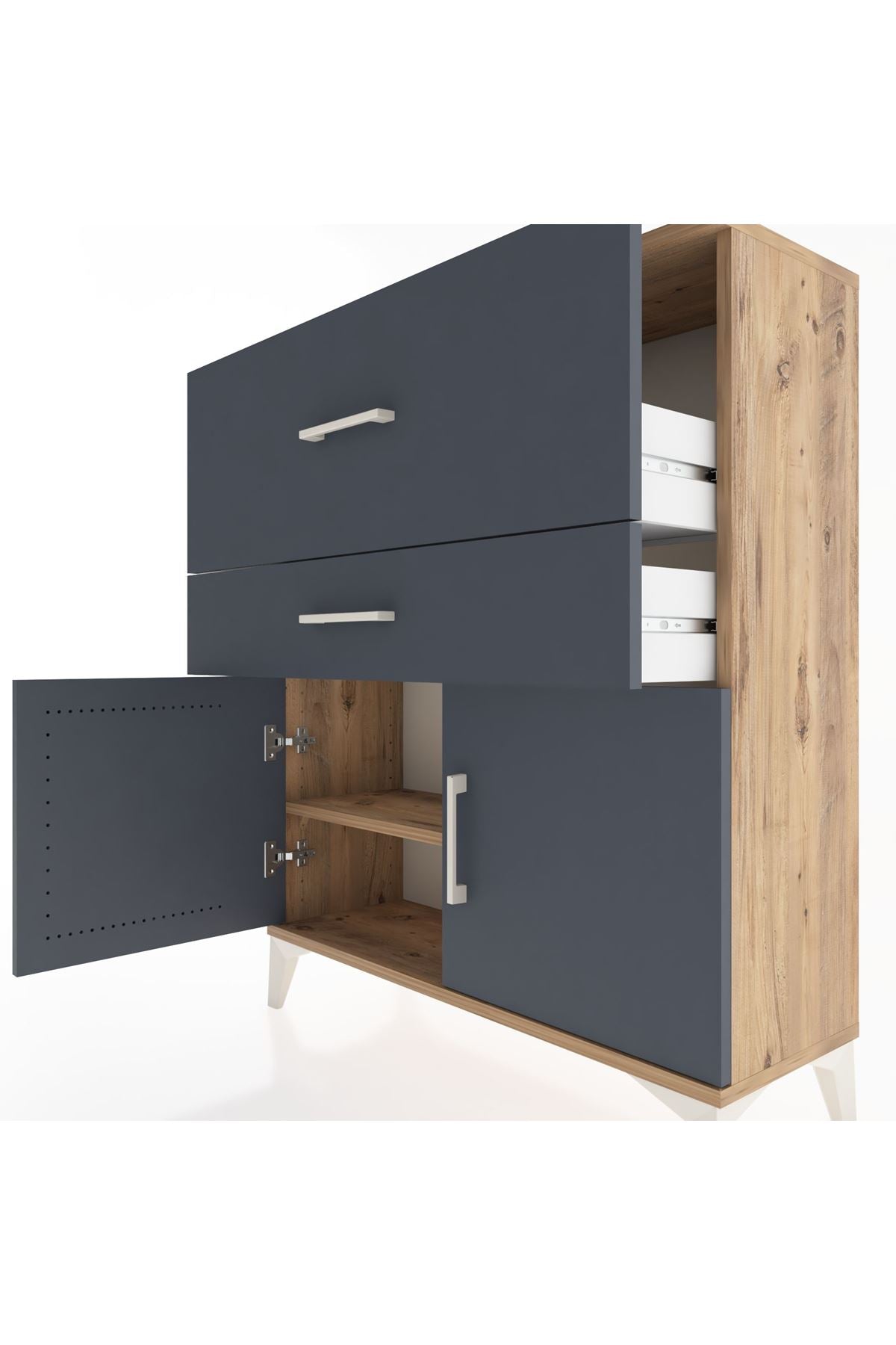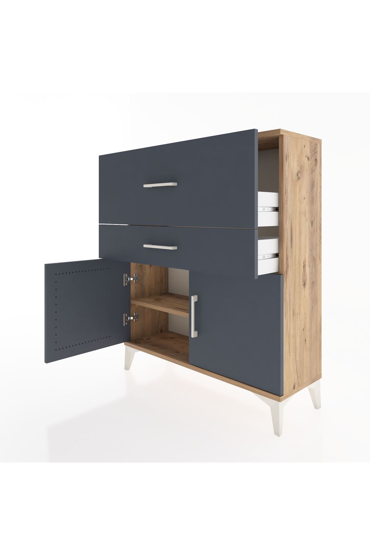 Arges Şifonyer Tek Raflı 2 Çekmeceli 2 Kapaklı 88x30x106 Çam-Antrasit