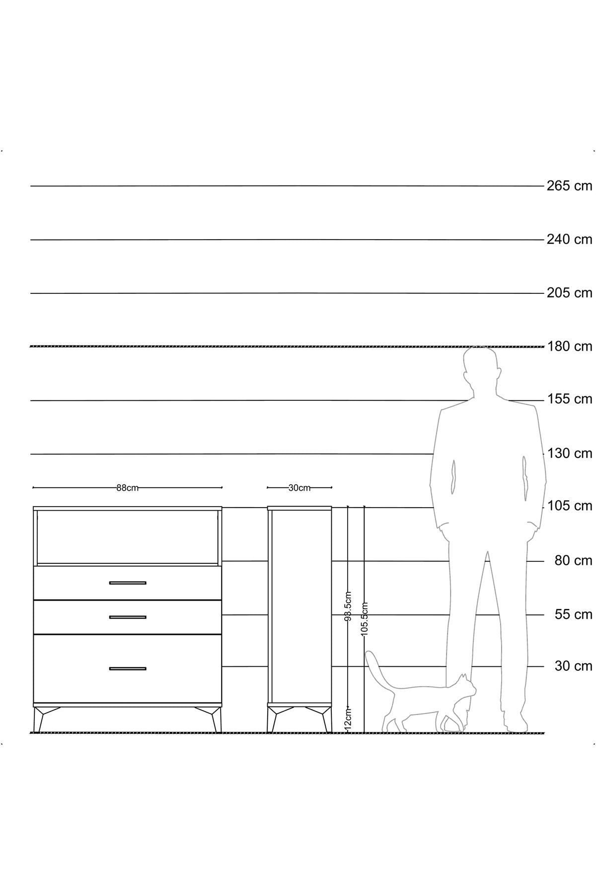 Arges Şifonyer Tek Raflı 3 Çekmeceli 88x30x106 Çam-Aytaşı