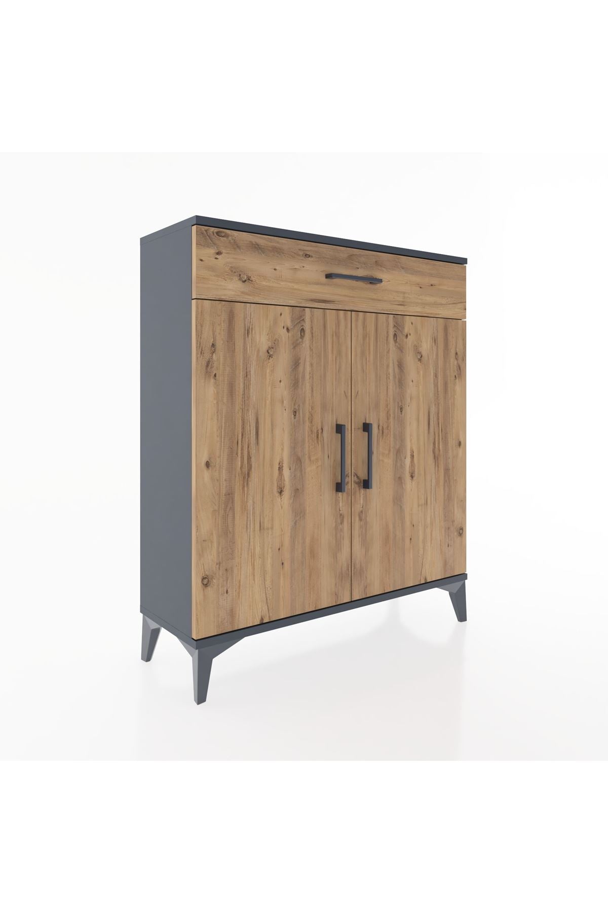 Arges Şifonyer Tek Raflı Tek Çekmeceli 2 Kapaklı 88x30x106 Antrasit-Çam