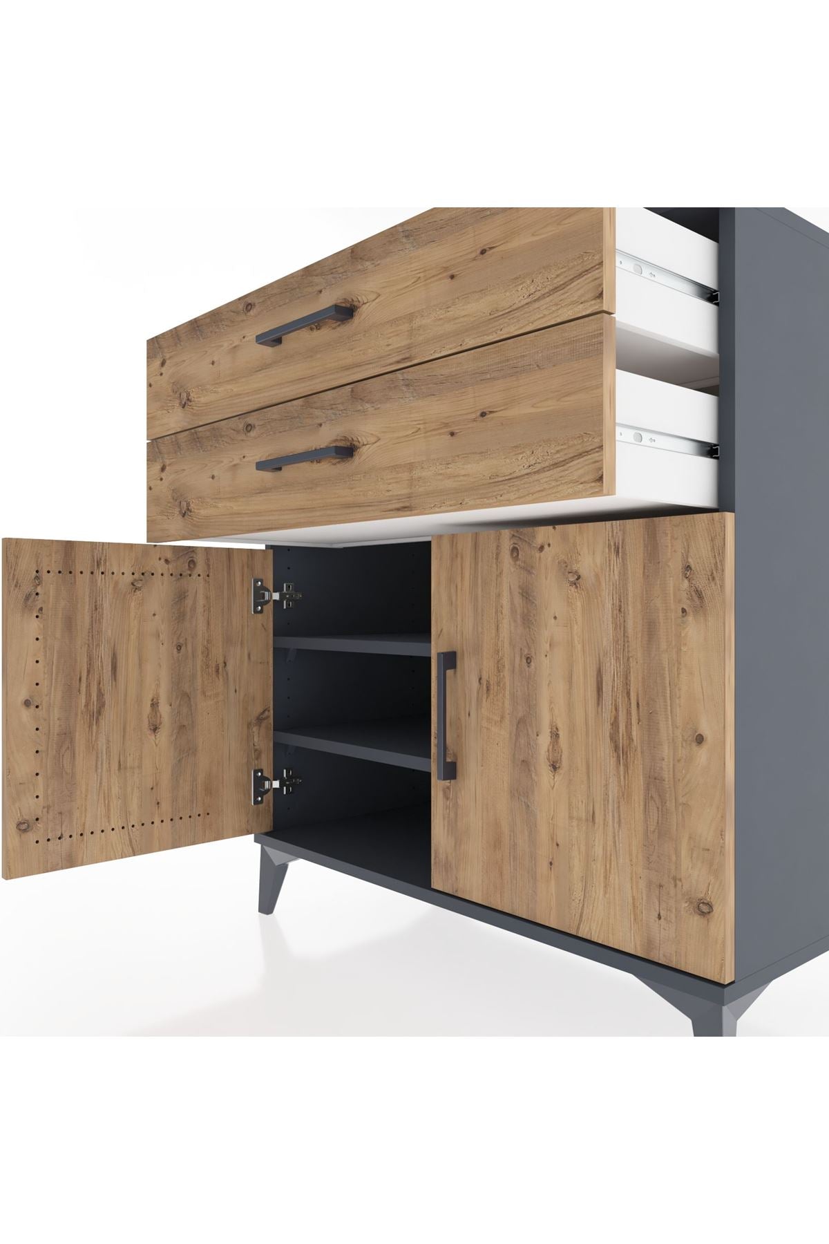 Hyperion Şifonyer 2 Raflı 2 Çekmeceli 2 Kapaklı 88x44x96 Antrasit-Çam