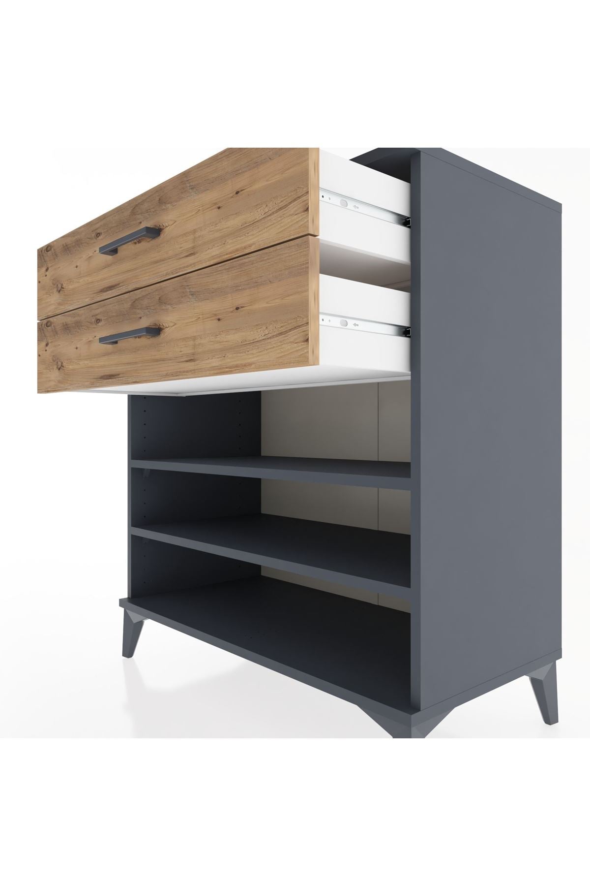 Hyperion Şifonyer 2 Raflı 2 Çekmeceli 88x44x96 Antrasit-Çam