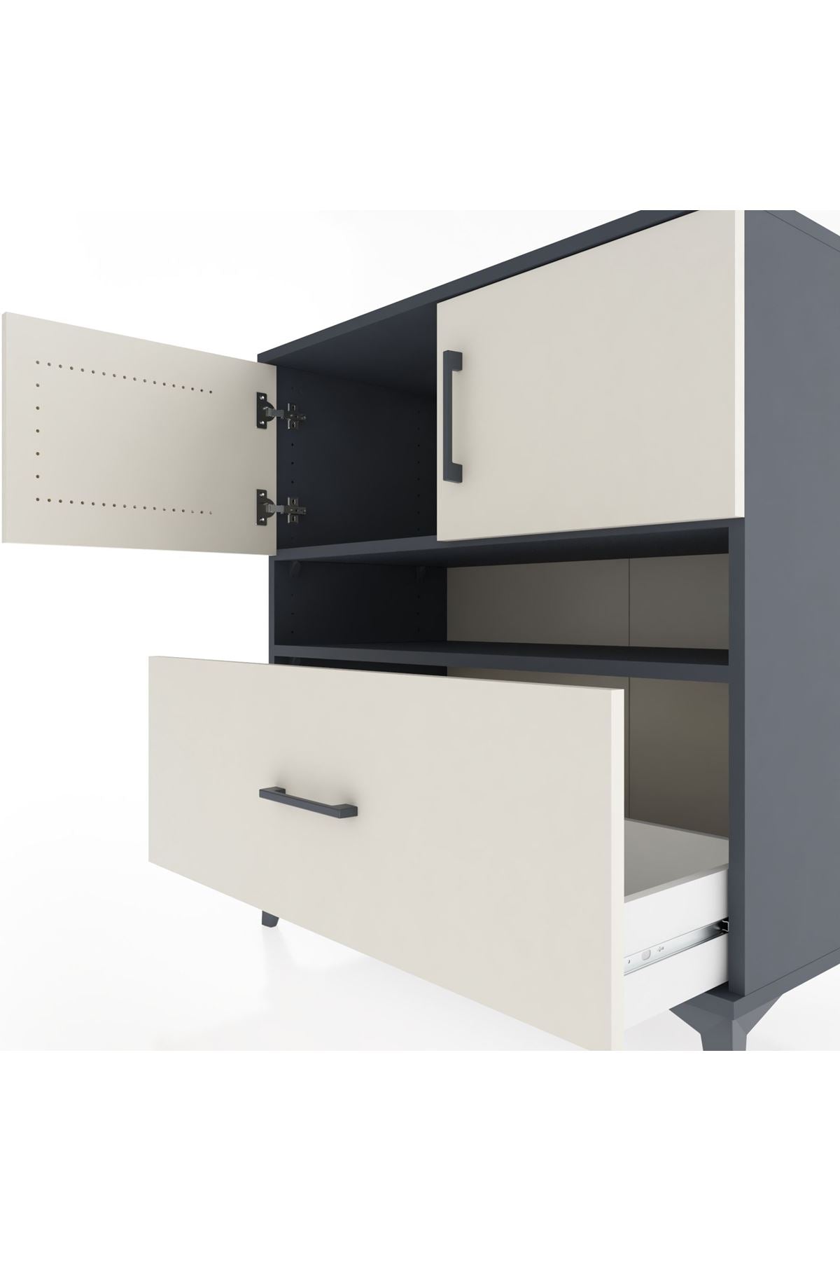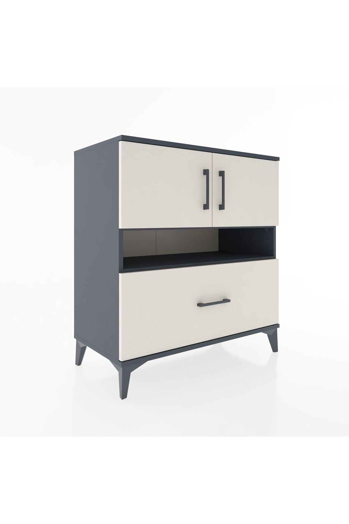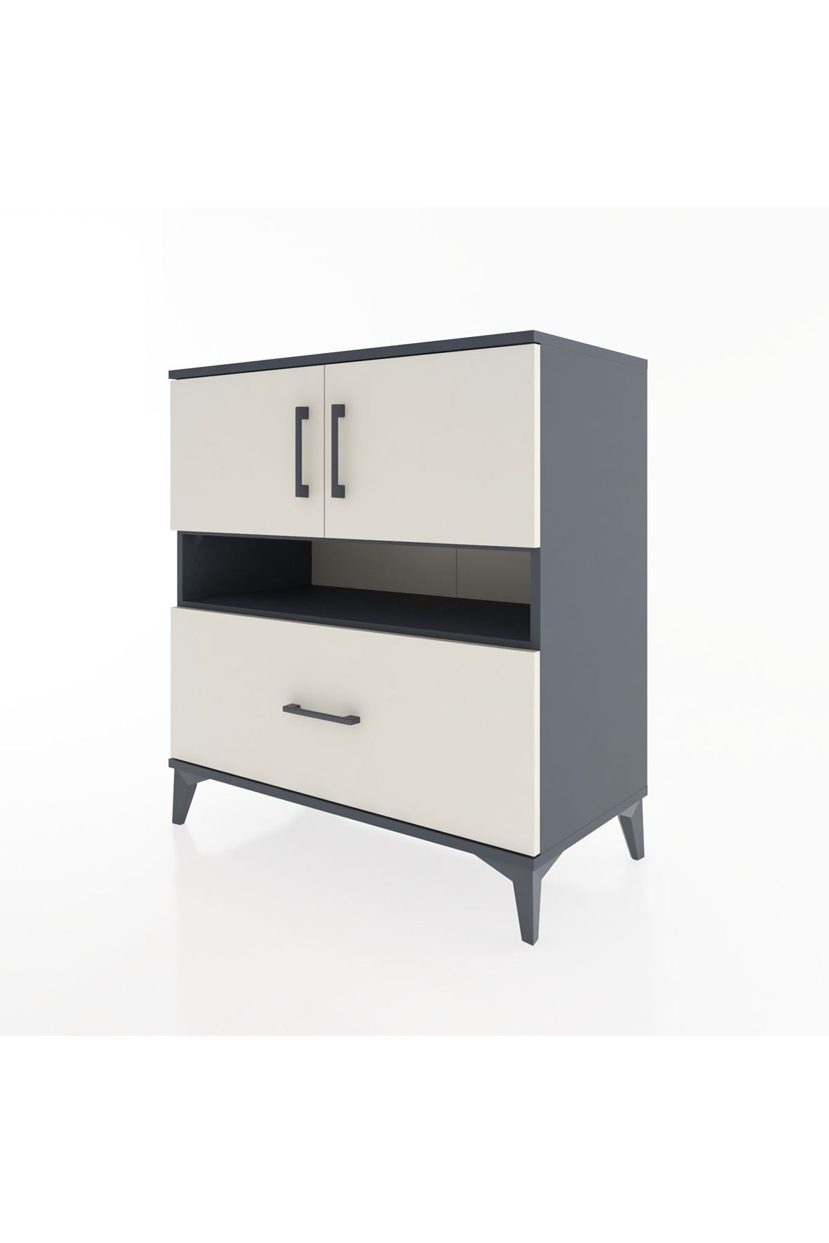 Hyperion Şifonyer 2 Raflı Tek Çekmeceli 2 Kapaklı 88x44x96 Antrasit-Aytaşı
