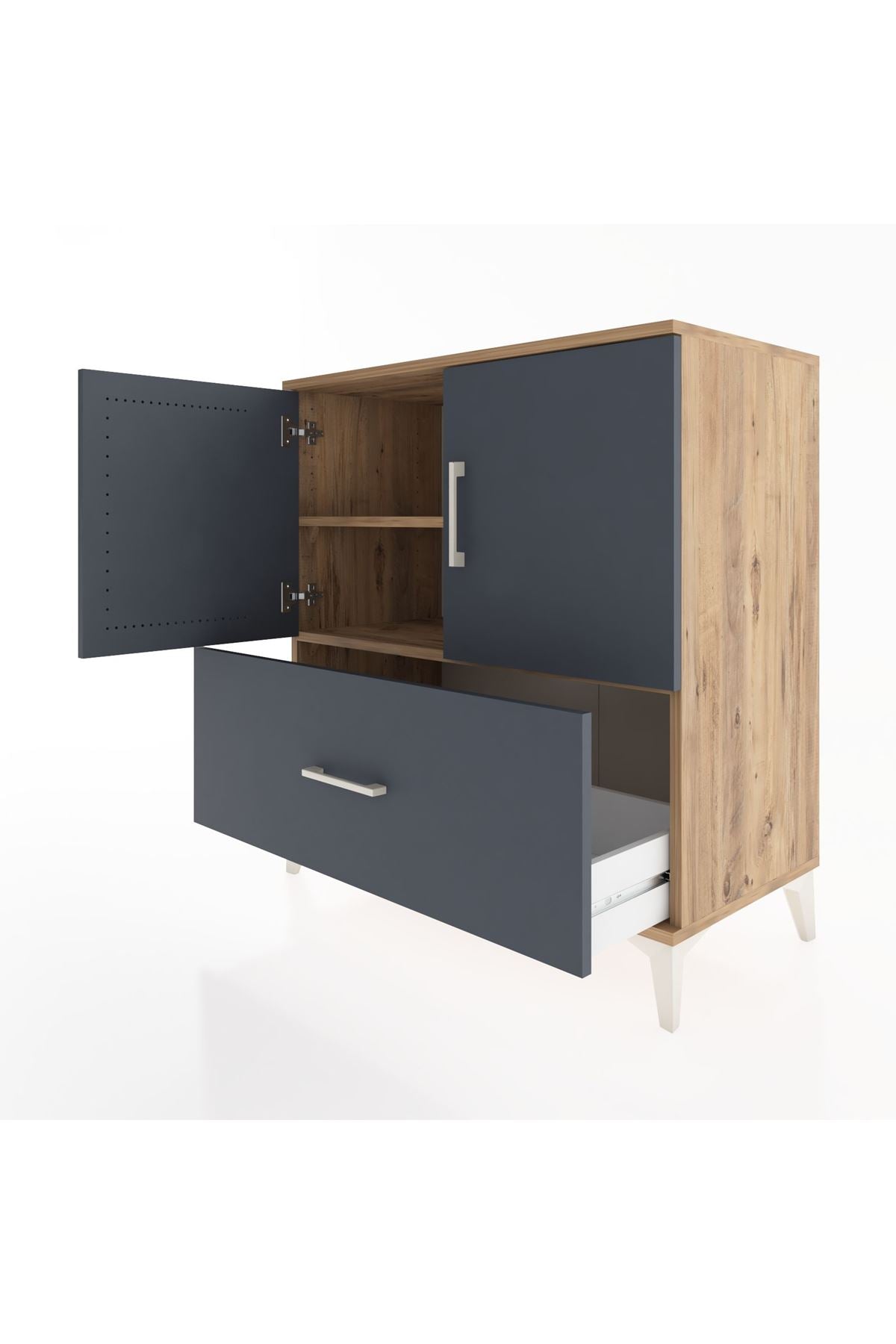 Hyperion Şifonyer 2 Raflı Tek Çekmeceli 2 Kapaklı 88x44x96 Çam-Antrasit
